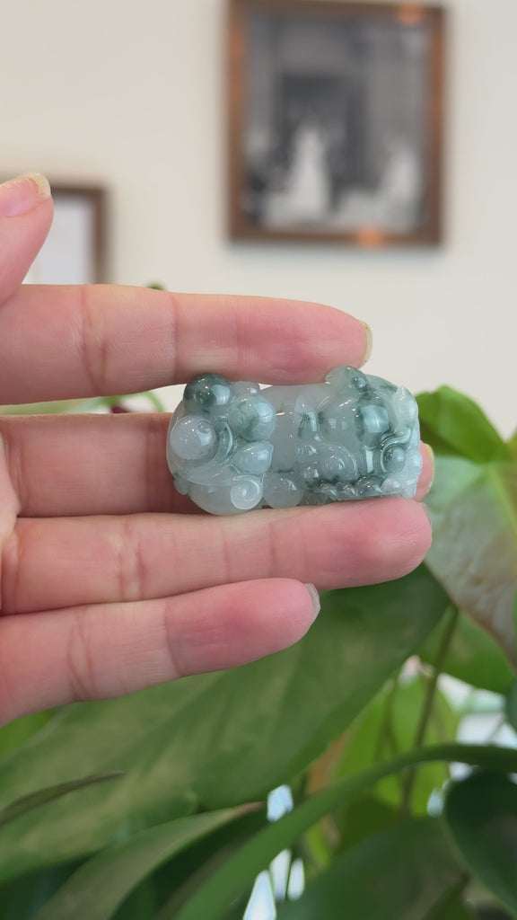 Genuine Burmese Ice Blue-Green Jadeite Jade PiXiu Pendant Necklace