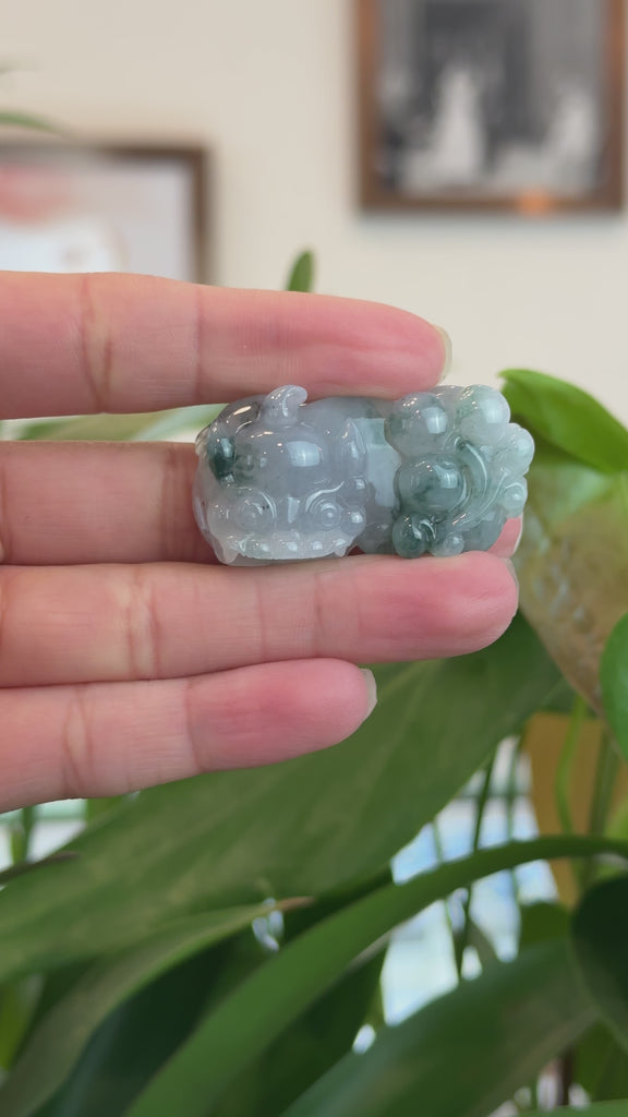 * DESIGN CONCEPT--- Genuine Jadeite Jade PiXiu Pendant Necklace. This pendant is made with genuine ice blue-green jadeite, The jadeite texture is so smooth and transparent. The handcraft is spiritual, And the main PiXiu looks very exquisite with patches of green. About PiXiu. they say PiXiu is a lucky animal, it's the dragon's ninth son, it's good for money. So lots of people believe that it is "Zhao Cai Pi Xiu"(招财貔貅). This PiXiu is carving so nice, every detail and angle is perfect. The whole piece is completely beautiful with perfect texture jadeite. It's a unique collectible.