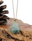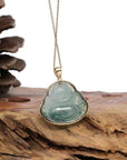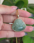 Natural Burmese Jadeite Jade Happy Buddha With 14k Yellow Bail