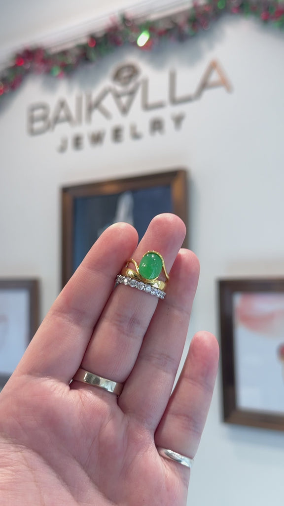 Custom 18ky Gold Natural Green Jadeite Jade Engagement Ring & Custom Fit Contour Band