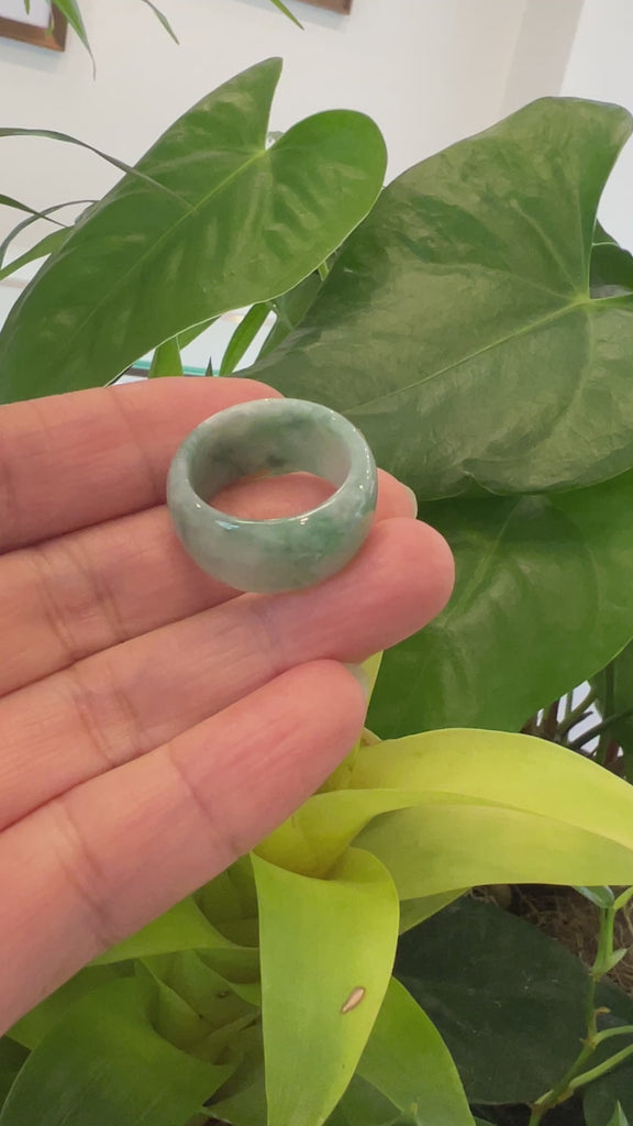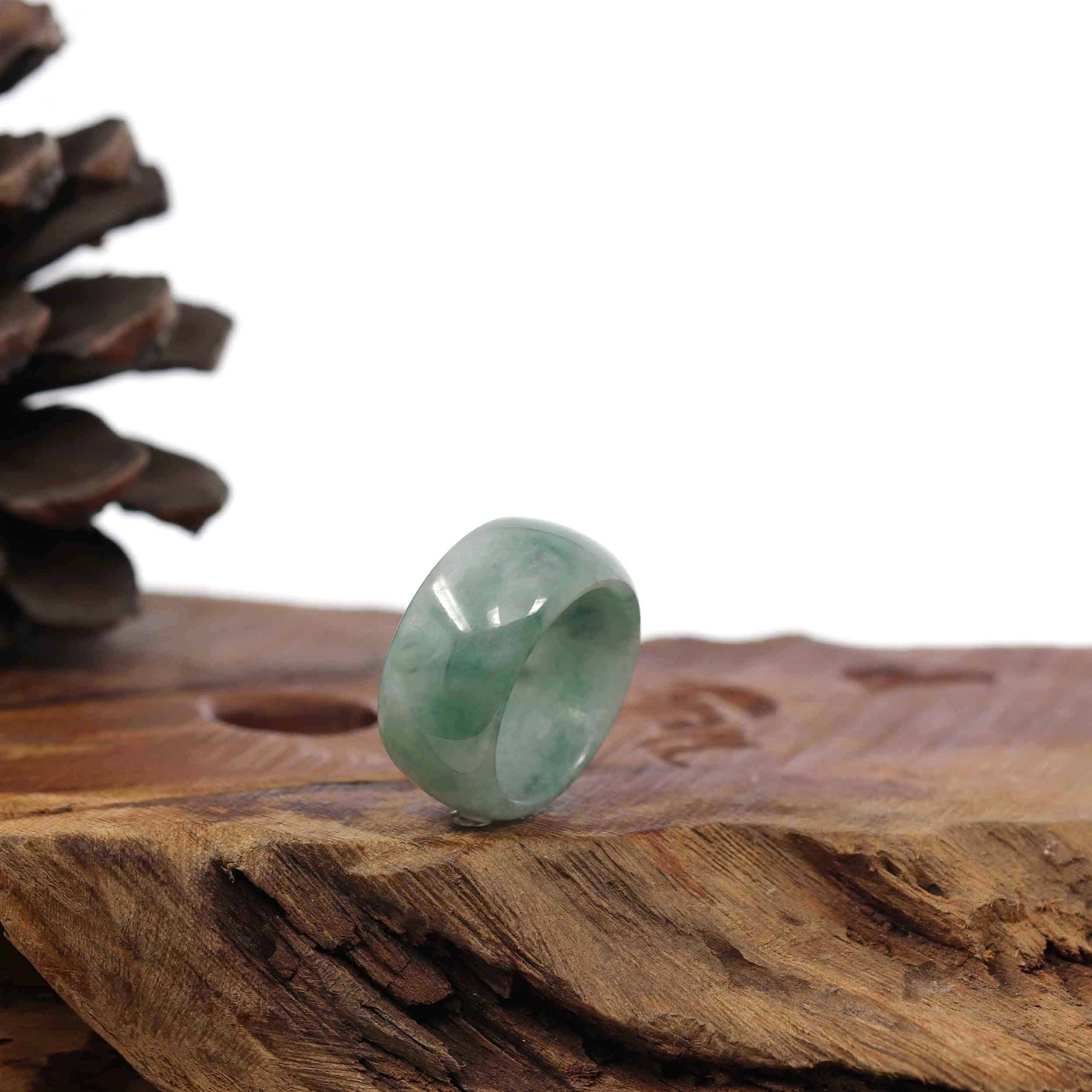 * DETAILS--- Genuine Burmese Jadeite Jade Solid men's band. This ring is made with very high-quality genuine Burmese blue green jadeite jade, The jade texture is smooth, clean, and transparent. The green color and translucent white texture, truly a mesmerizing combination. The Classic half-round style solid jade band. The ring is characterized by beautiful blue green patches. It looks completely beautiful and perfect with high-quality. It's a special gift for men.