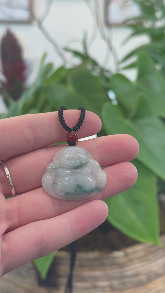 *Design concept--- This pendant is made from genuine Burmese blue-green jadeite jade with a smooth, translucent texture. Expertly crafted, it features a Happy Buddha with a big belly, symbolizing joy and prosperity. A meaningful and special gift for yourself or a loved one.