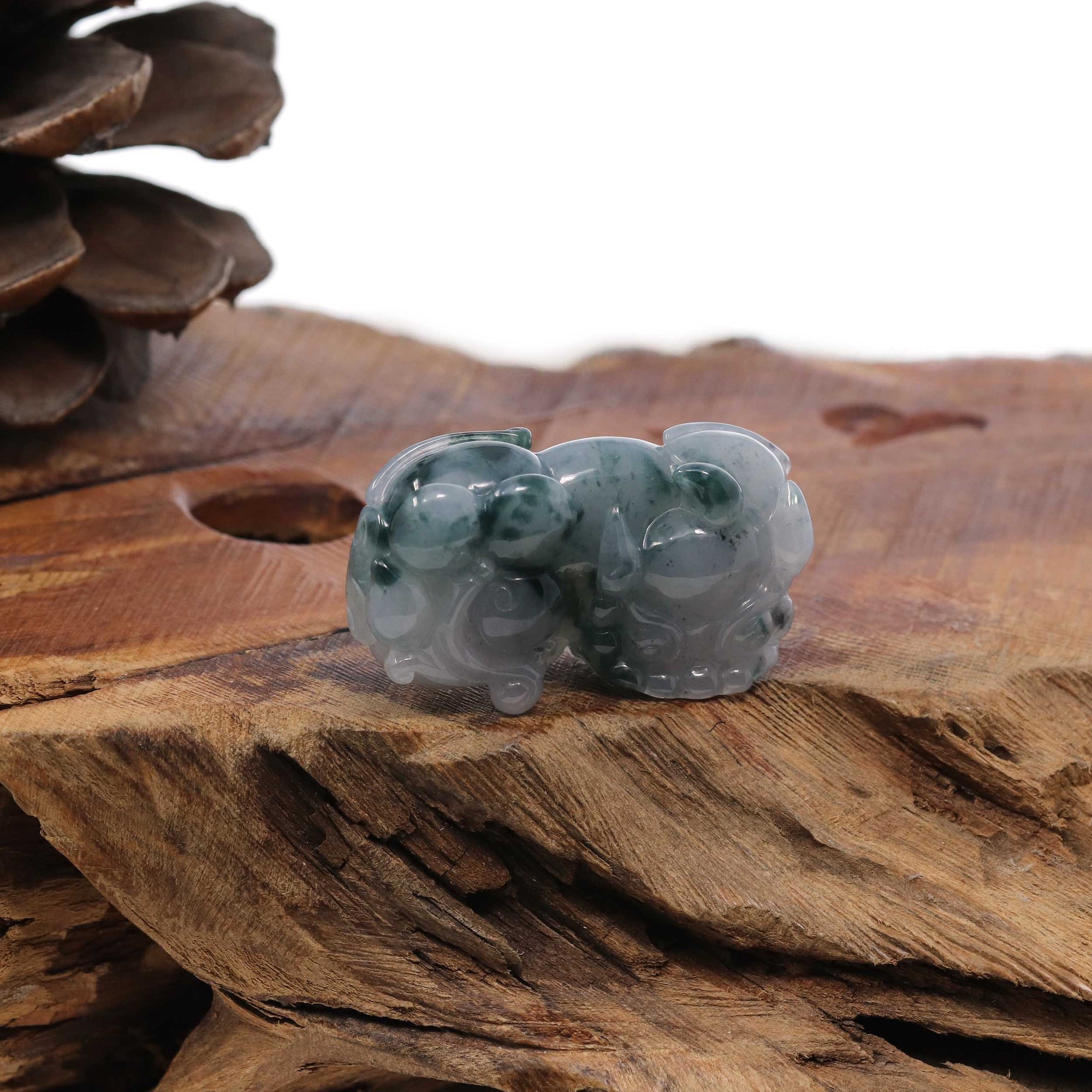 Genuine Burmese Ice Blue-Green Jadeite Jade PiXiu Pendant Necklace