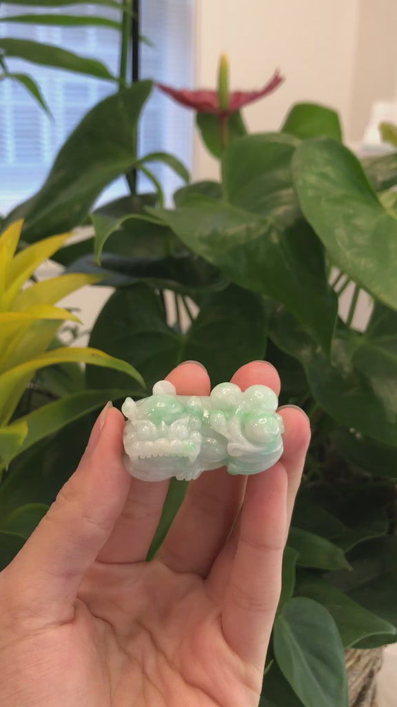 * DESIGN CONCEPT--- Genuine Jadeite Jade PiXiu Pendant Necklace. This pendant is made with very high-quality genuine apple green jadeite, The jadeite texture is so smooth and transparent. It's very perfect with little clouds. The handcraft is spiritual, And the main PiXiu looks very exquisite with patches of apple green color. About PiXiu. they say PiXiu is a lucky animal, it's the dragon's ninth son, it's good for money. So lots of people believe that it is "Zhao Cai Pi Xiu"(招财貔貅). This PiXiu is carving so nice, every detail and angle is perfect. The whole piece is completely beautiful with perfect texture jadeite.