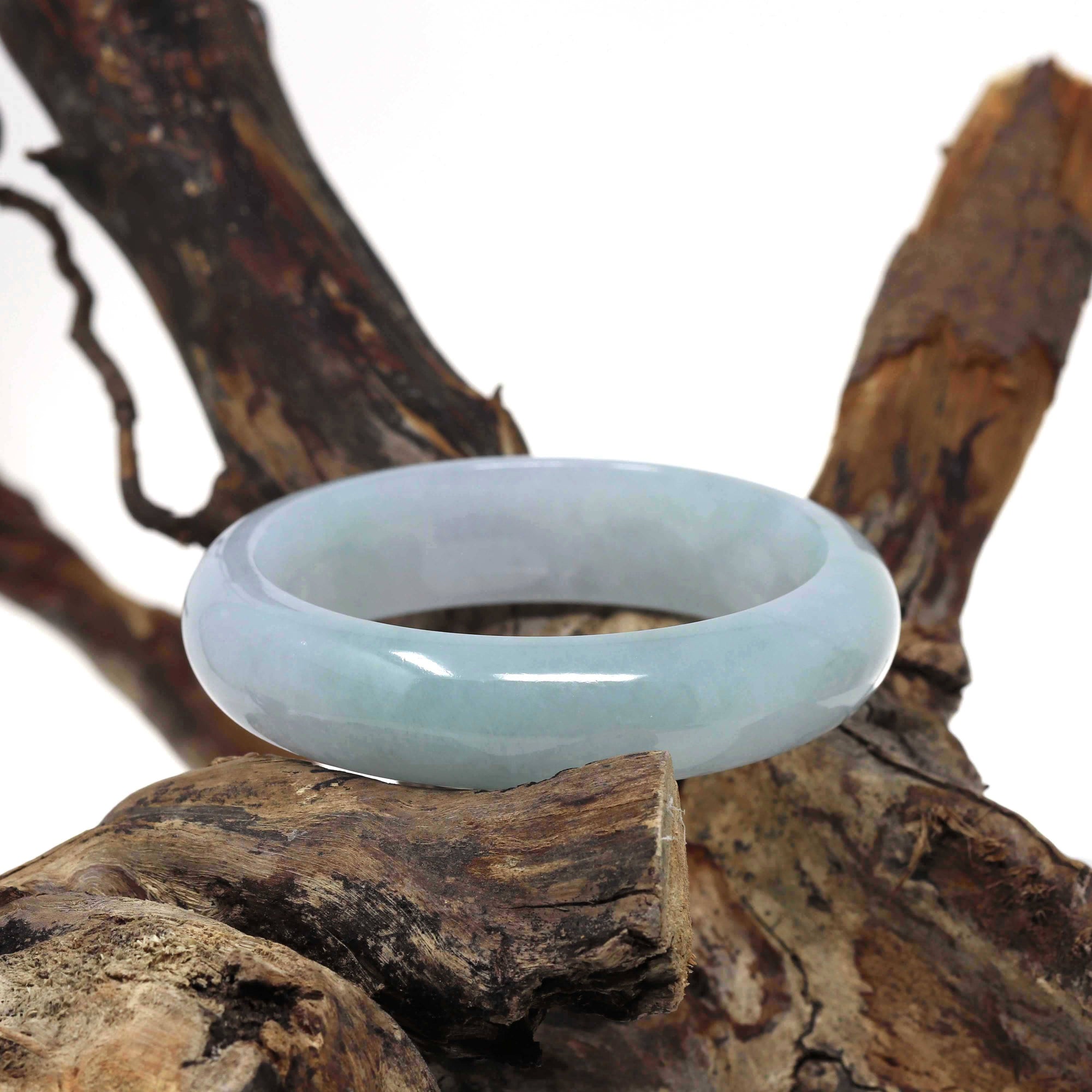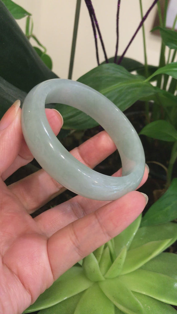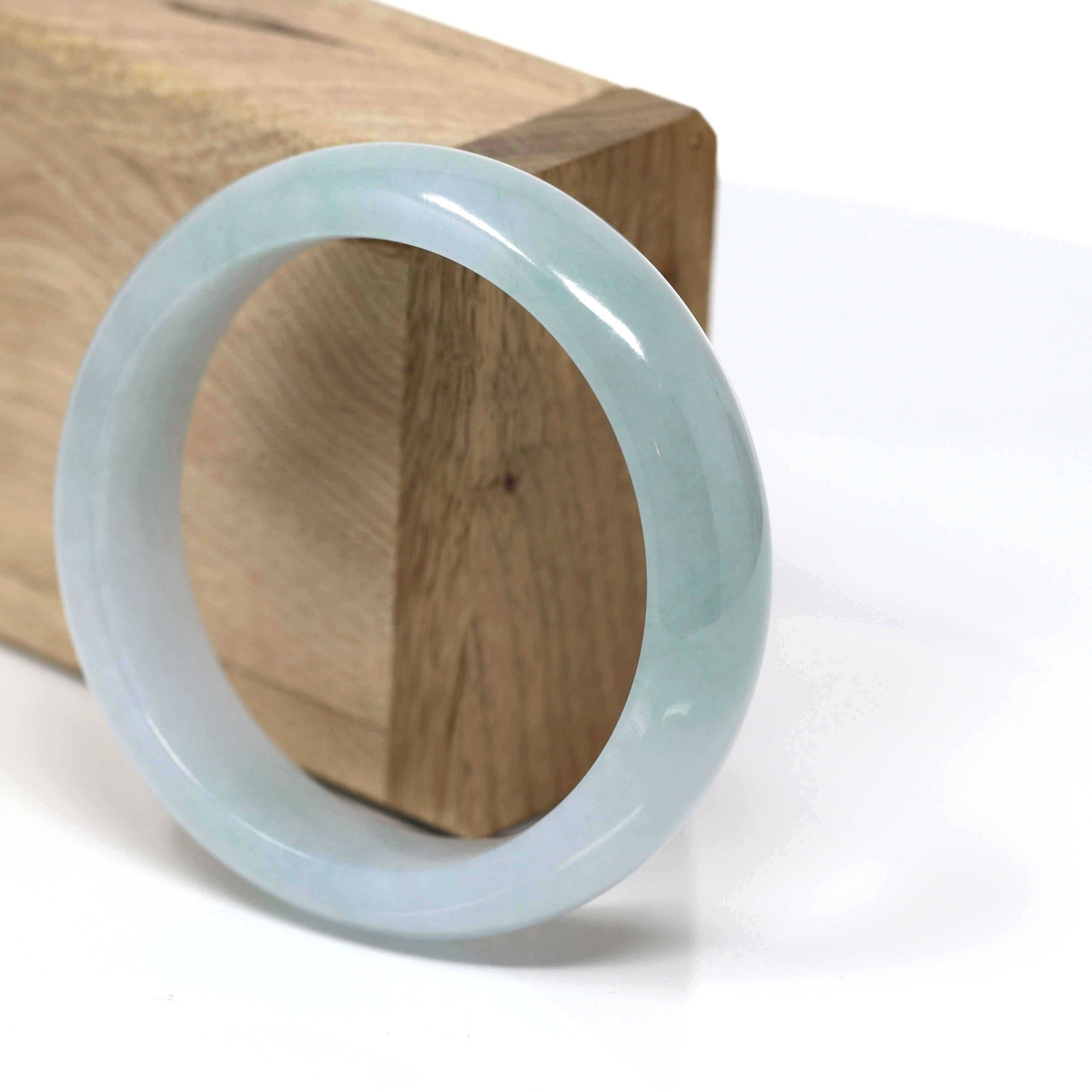 * DETAILS--- Genuine Burmese Jadeite Jade Bangle Bracelet. This bangle is made with high-quality genuine Burmese ice Jadeite jade, The jade texture is smooth, clean and transparent. A little light green color and transparency white texture, truly a mesmerizing combination. The Classic half-round style bracelet. The whole bangle is very clean without flaws as ice. it looks completely beautiful and perfect with high-quality. It's a high-quality gift for yourself or your love.