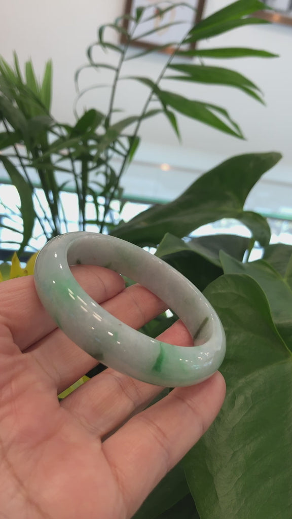 * INTRODUCTION---This bangle is made with very high-quality genuine Burmese Jadeite jade, The jade texture is very smooth and translucent with green and deep green colors inside. This whole bangle is a lovely natural green color throughout all pieces. The bangle looks very nice. It's a very high-end exquisite gift for yourself or your love.