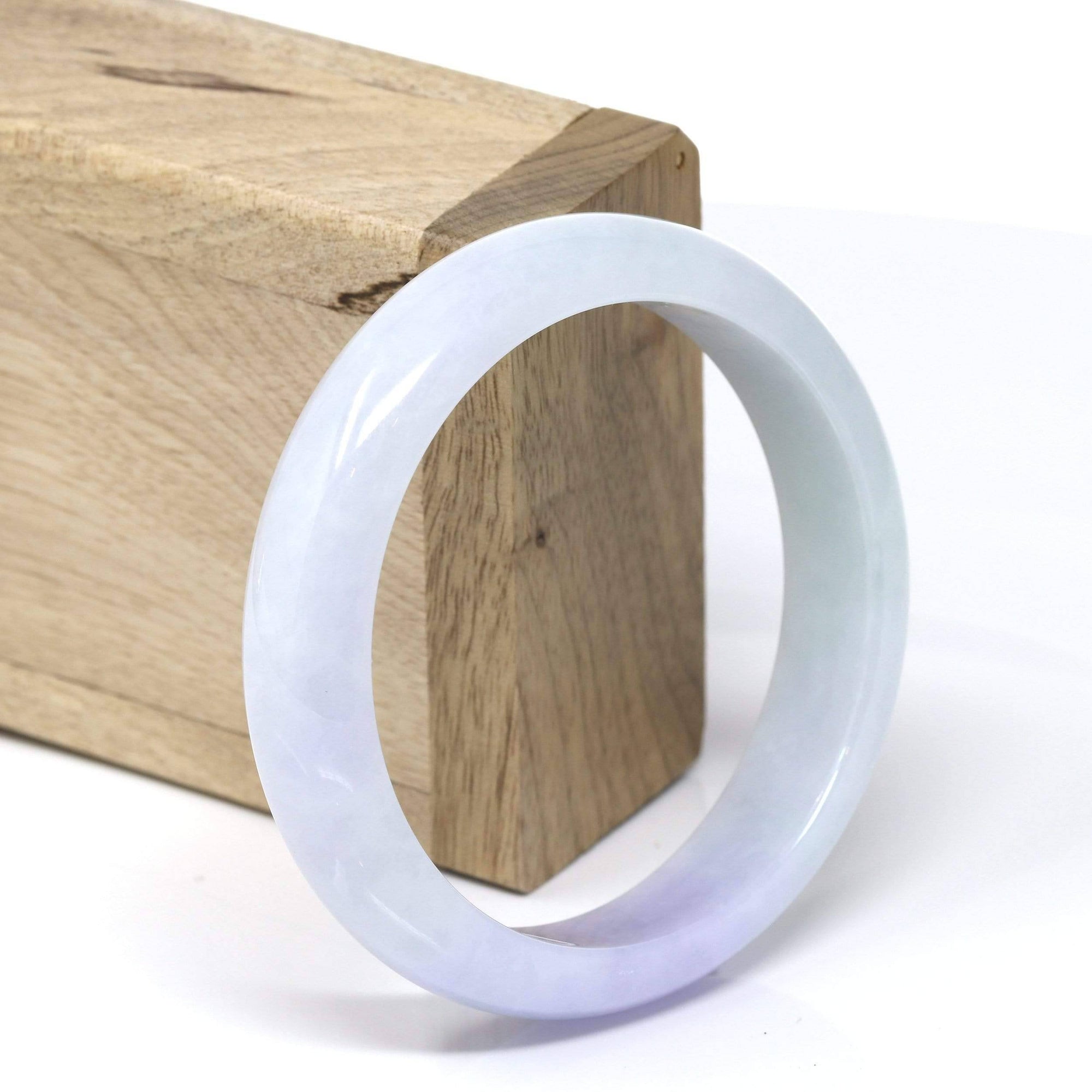 * DETAILS--- Genuine Burmese Jadeite Jade Bangle Bracelet. This bangle is made with high-quality genuine Burmese Jadeite jade. The jade texture is fine with lavender color. The texture is smooth and clean without any flaws. There is a faint patch of lavender on the bangle. Overall the bangle is beautiful even with color and texture throughout. The lavender color and fine texture, are truly a mesmerizing combination. The Classic half-round style bracelet is comfortable. It's very luxurious and affordable with high-quality. It's a high-quality gift for yourself or your love.