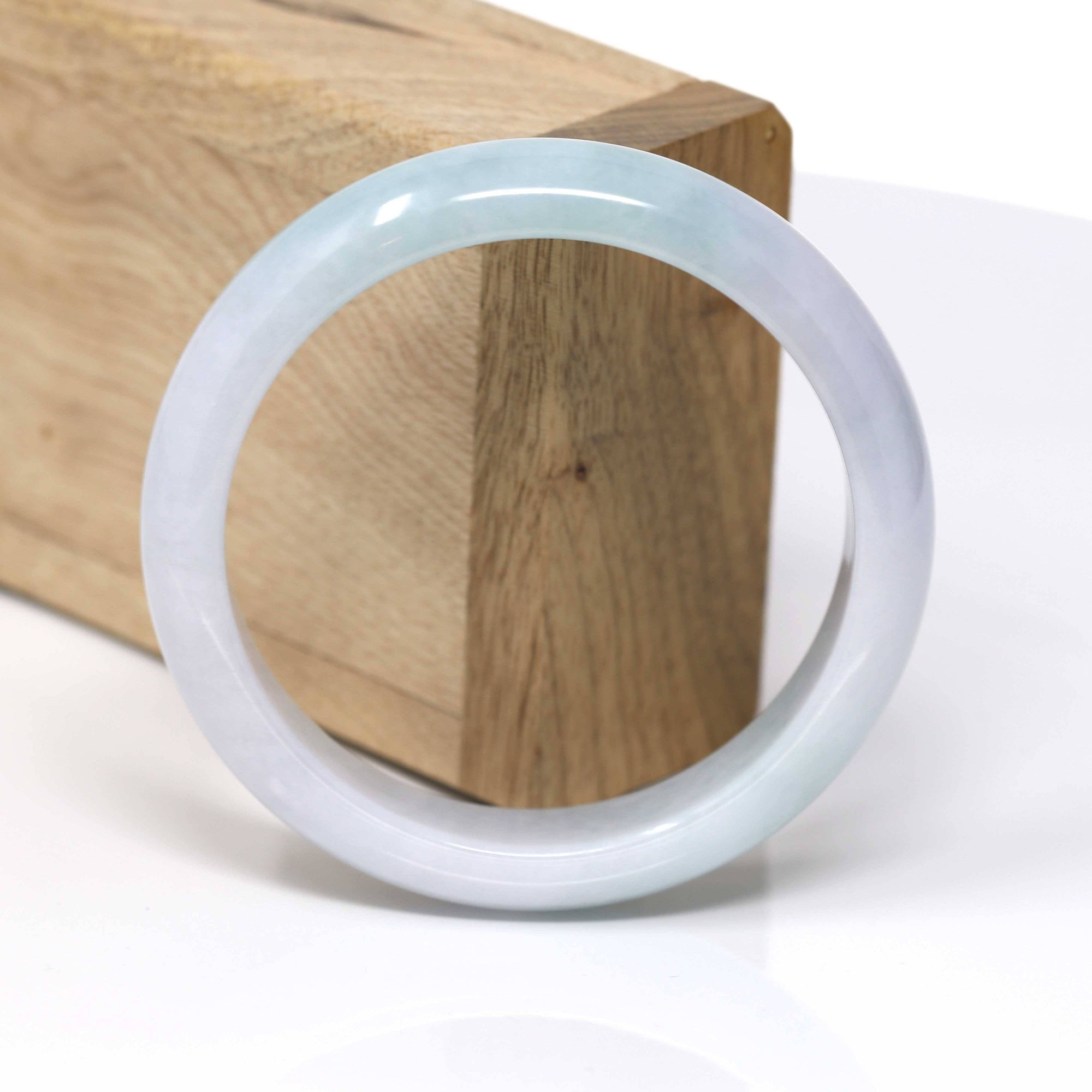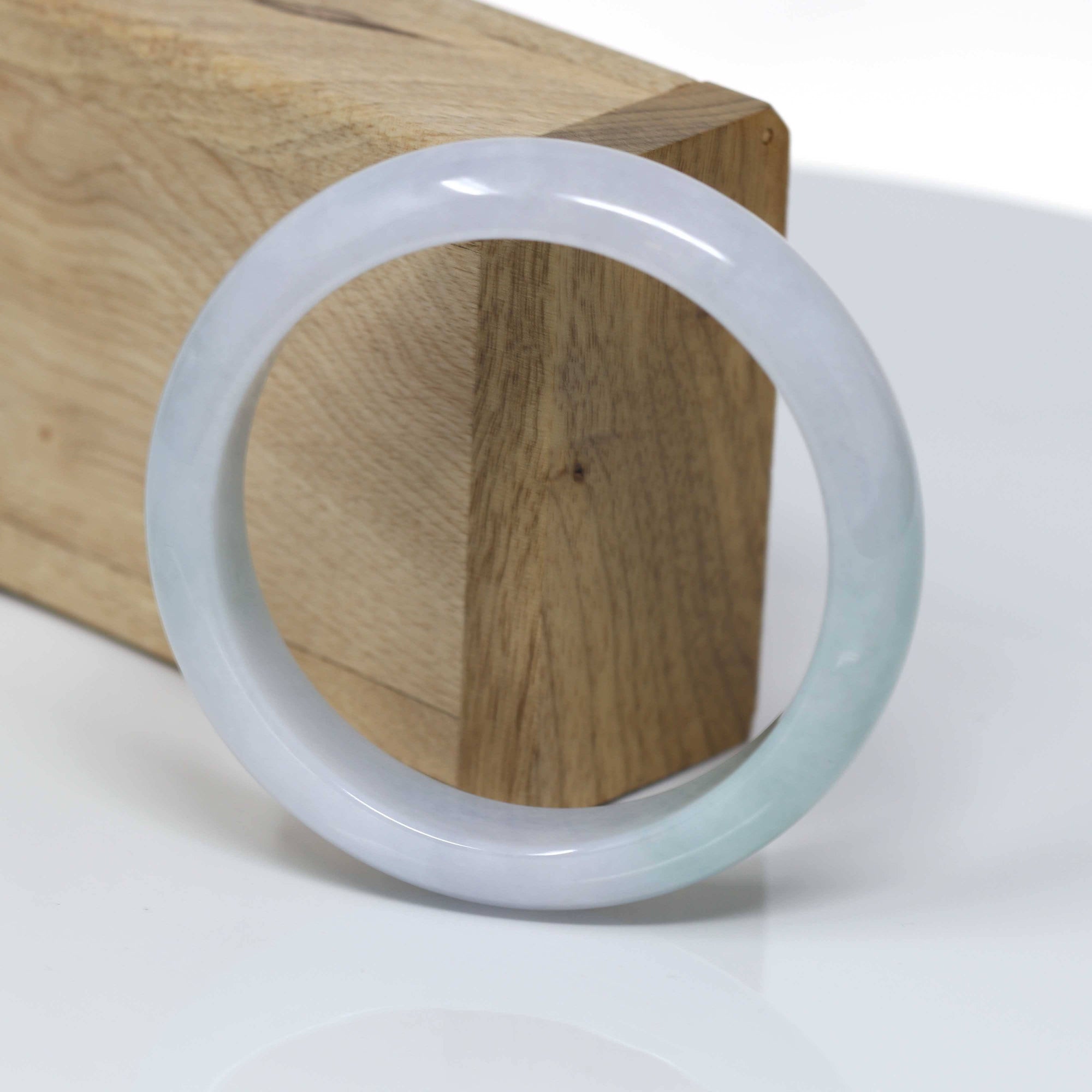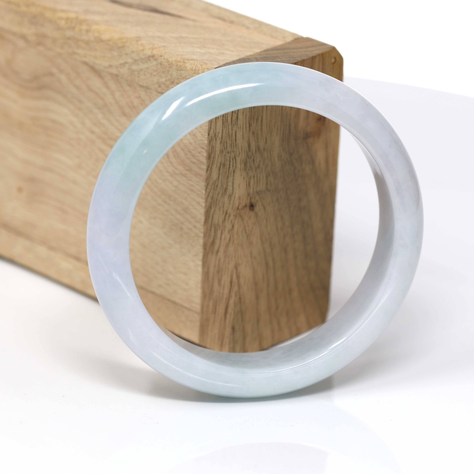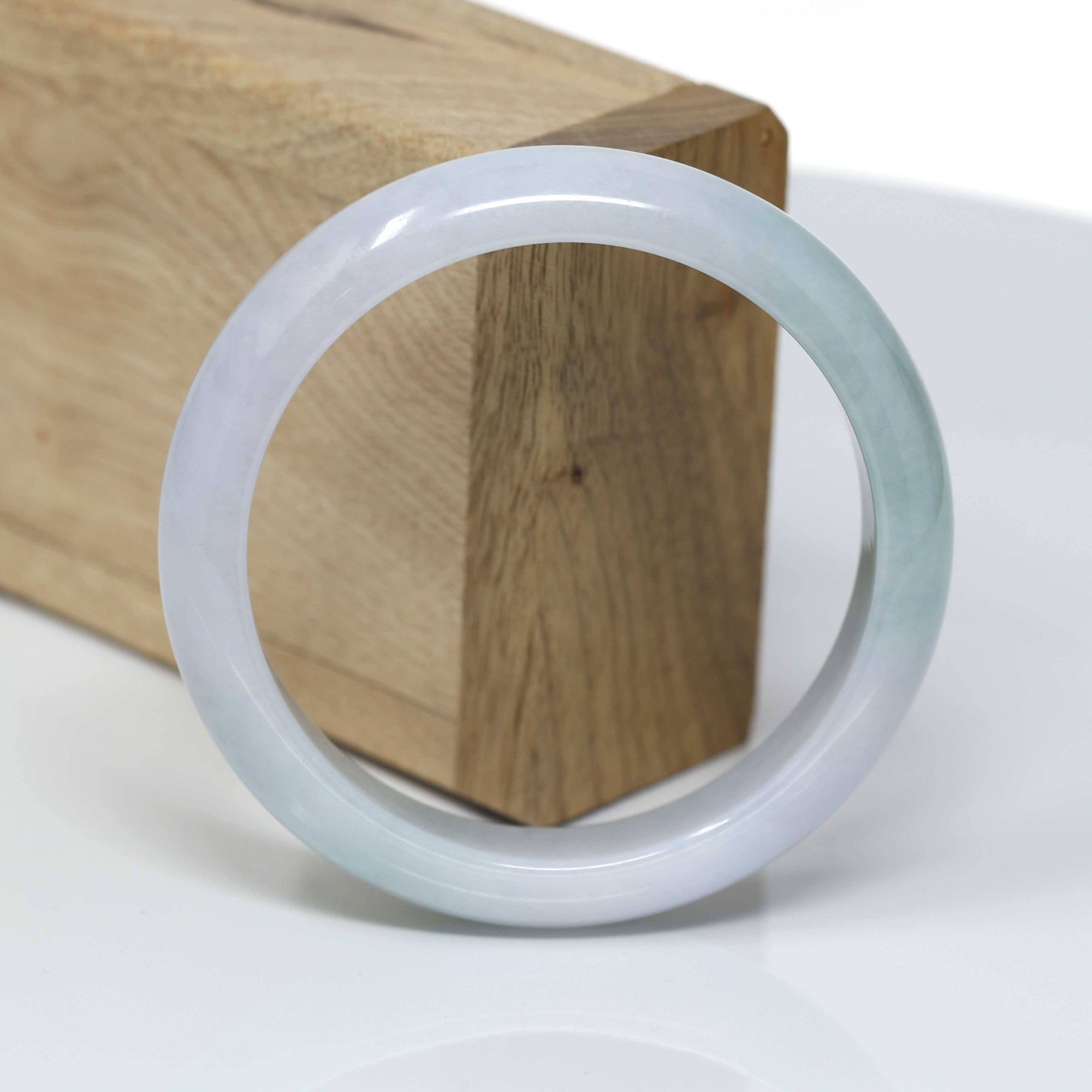 * DETAILS--- Genuine Burmese Jadeite Jade Bangle Bracelet. This bangle is made with high-quality genuine Burmese Jadeite jade, The jade texture is so smooth with blue-green colors inside. It looks perfect with blue-green and translucent. and lovely natural blue-green color throughout the piece. The bangle looks so clean and looks much better in person with lavender colors. It's a very perfect gift for yourself or your love.