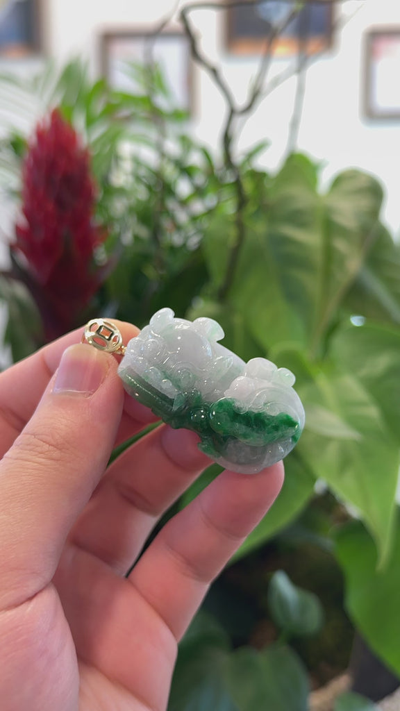 * DESIGN CONCEPT--- Genuine Jadeite Jade PiXiu Pendant Necklace. This pendant is made with genuine lavender-green jadeite, The jadeite texture is so smooth and transparent. The handcraft is spiritual, And the main PiXiu looks very exquisite with patches of blue. the intricately detailed with 18k yellow gold bail.  About PiXiu. they say PiXiu is a lucky animal, it's the dragon's ninth son, it's good for money. So lots of people believe that it is "Zhao Cai Pi Xiu"(招财貔貅). This PiXiu is carving so nice, every detail and angle is perfect. The whole piece is completely beautiful with perfect texture jadeite. It's a very special gift for men.
