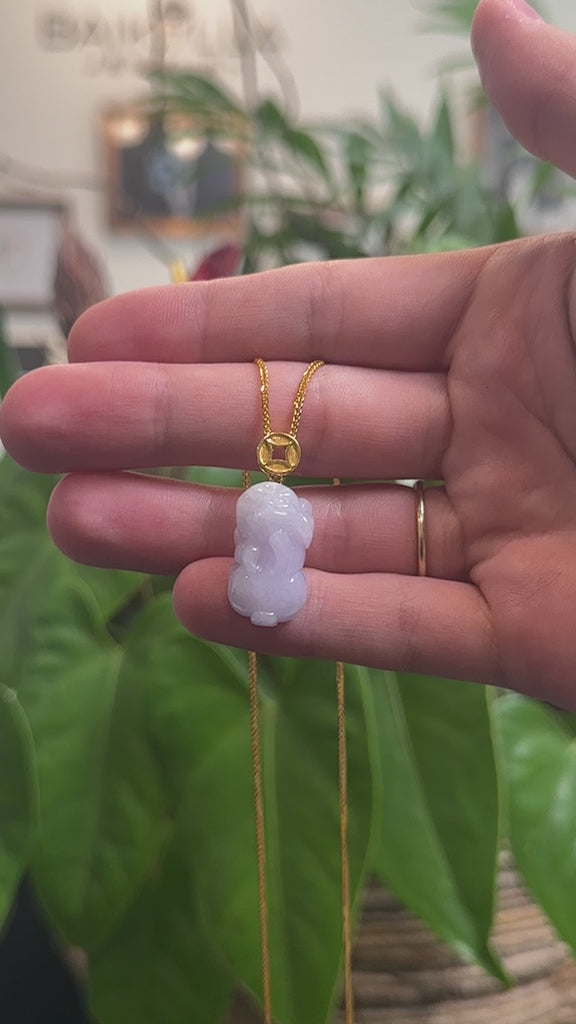 Genuine Burmese Lavender Jadeite Jade PiXiu Pendant With 18K Yellow Gold Bail