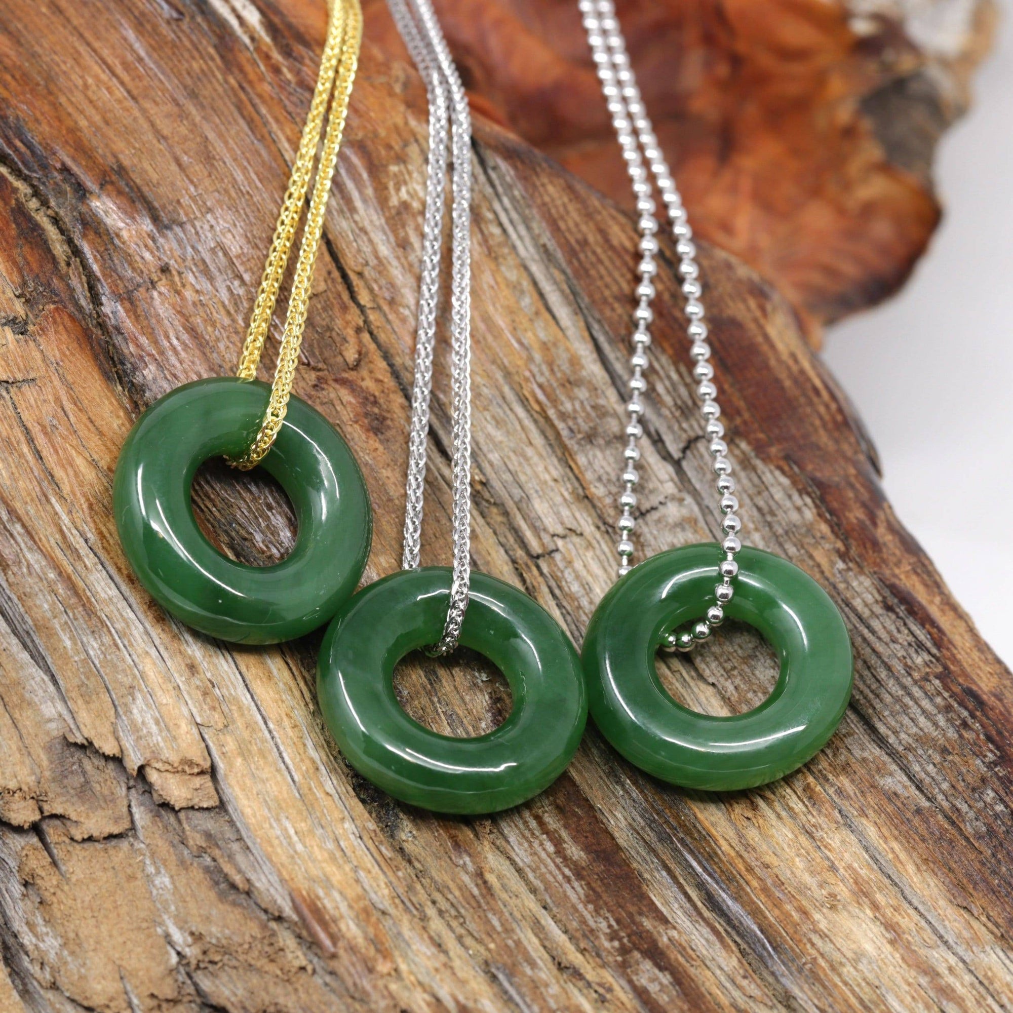 Baikalla Jewelry Jade Pendant Necklace Genuine HeTian Nephrite Green Jade Lucky KouKou Circle Pendant Necklace