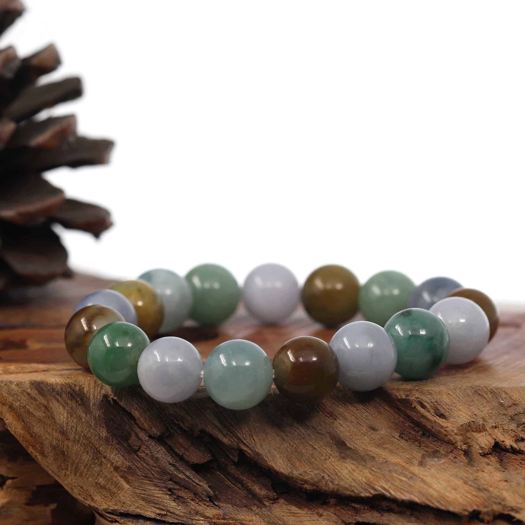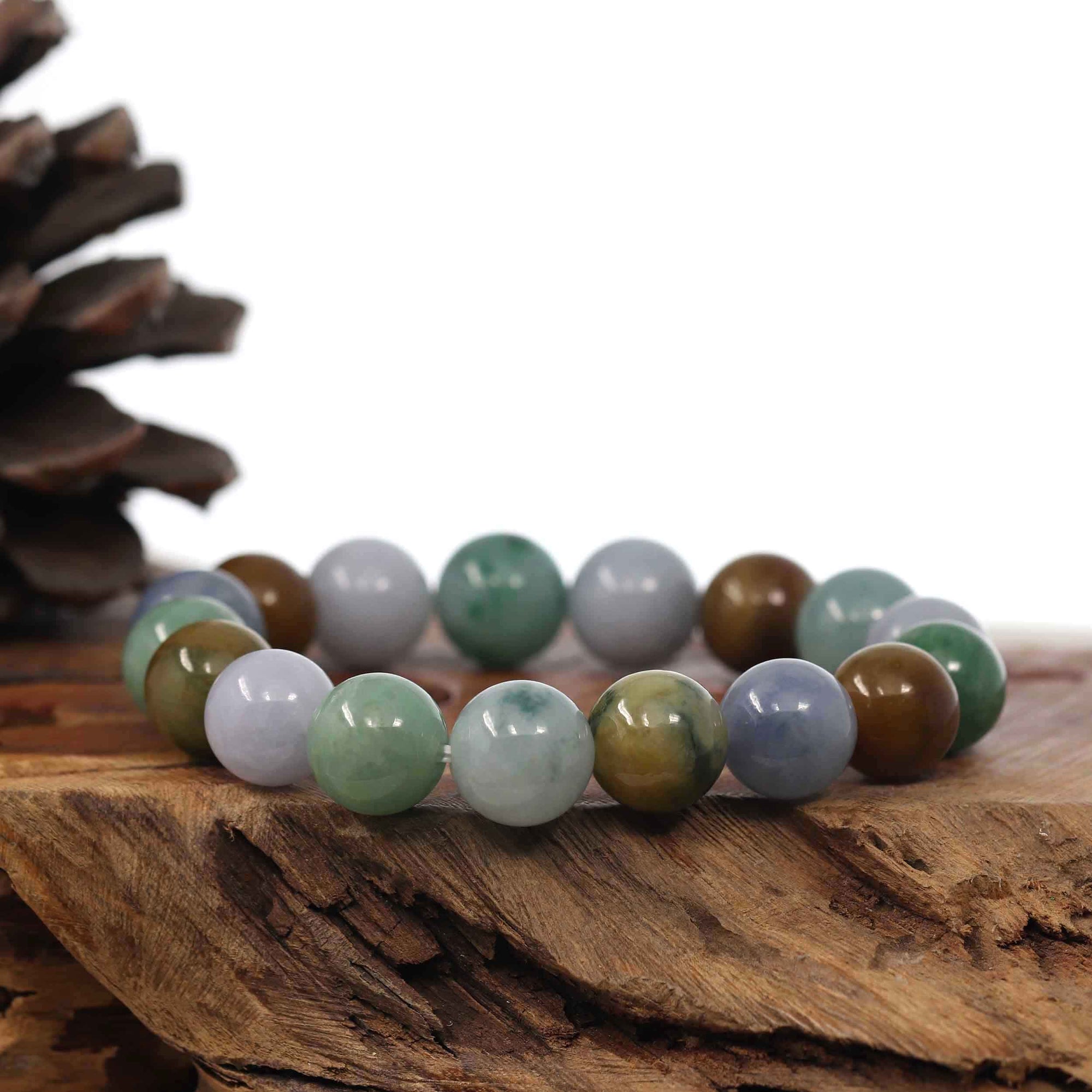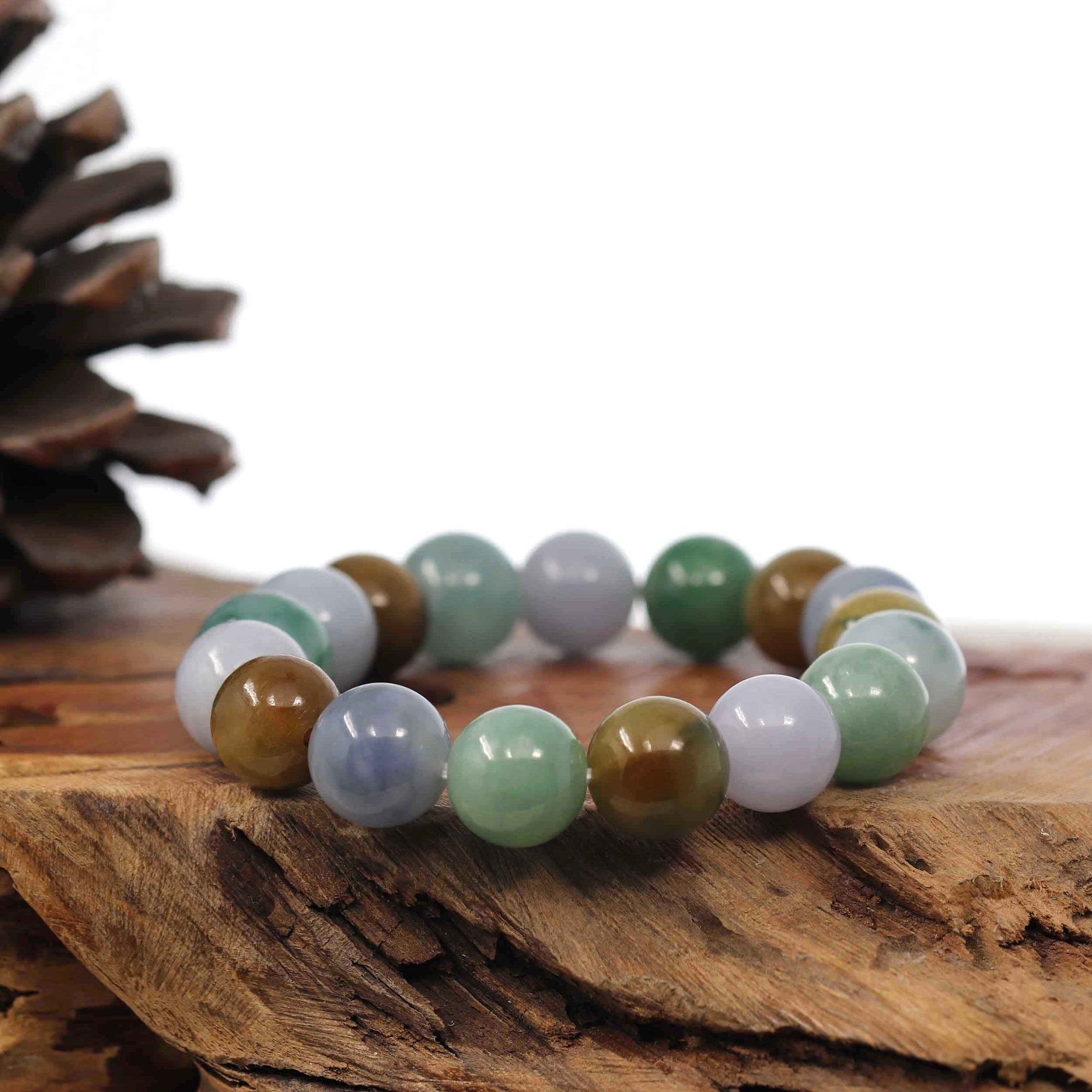 * DETAILS---Genuine Jadeite Jade Bigger Beads Bracelet. This bracelet is made with very high-quality genuine jadeite jade with lavender, green and vibrant colors. The bead's texture is so smooth and translucent. The classic round beads bracelet looks completely beautiful and affordable. It's a very unique gift for yourself or your love.