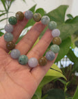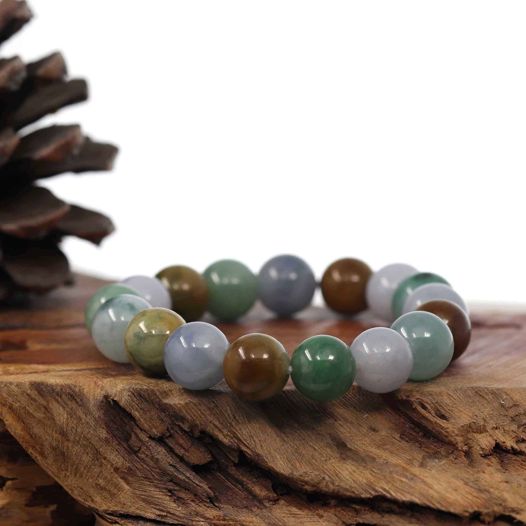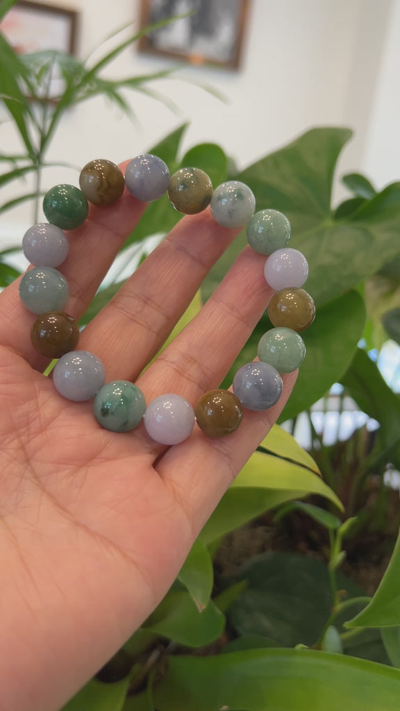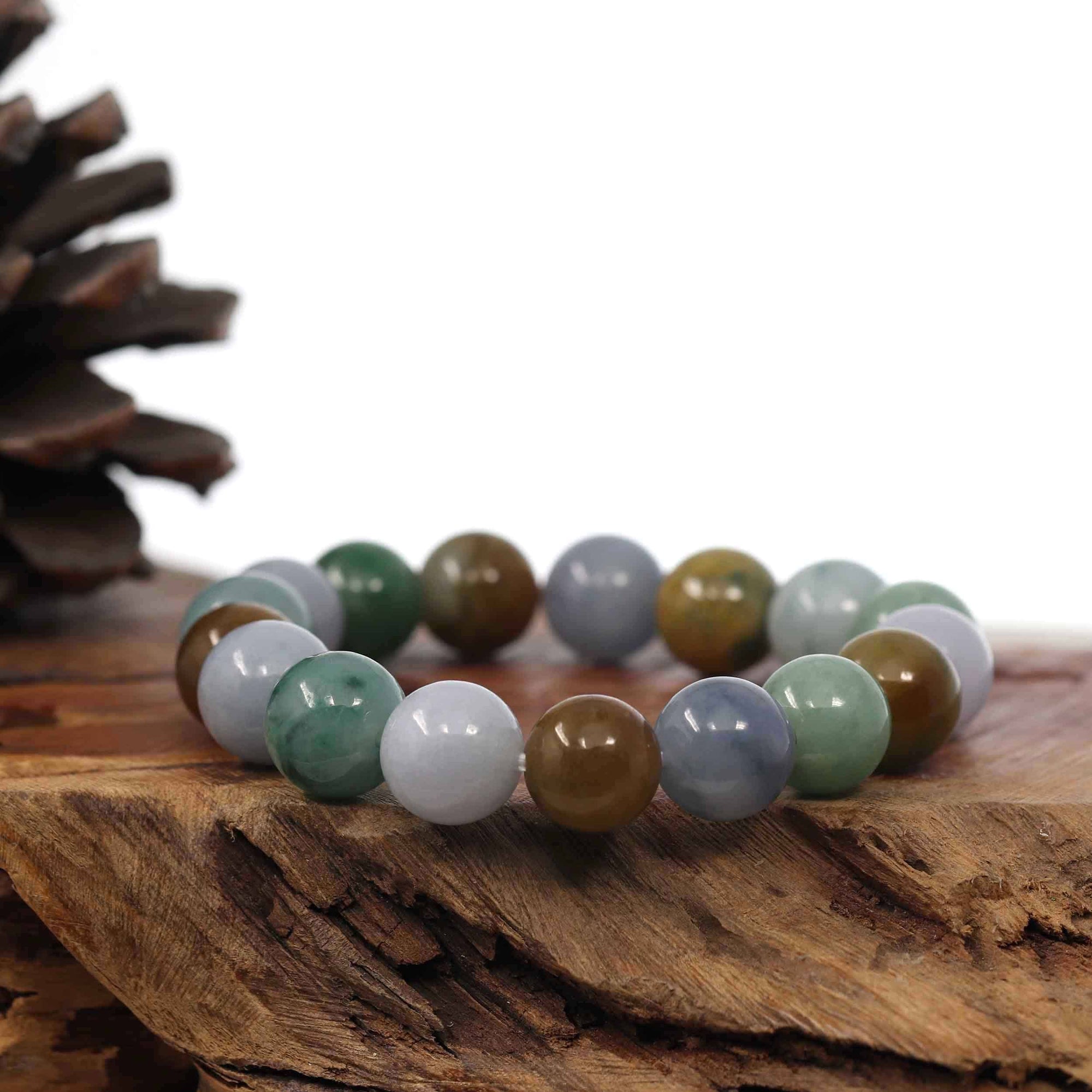 * DETAILS---Genuine Jadeite Jade Bigger Beads Bracelet. This bracelet is made with very high-quality genuine jadeite jade with lavender, green and vibrant colors. The bead's texture is so smooth and translucent. The classic round beads bracelet looks completely beautiful and affordable. It's a very unique gift for yourself or your love.