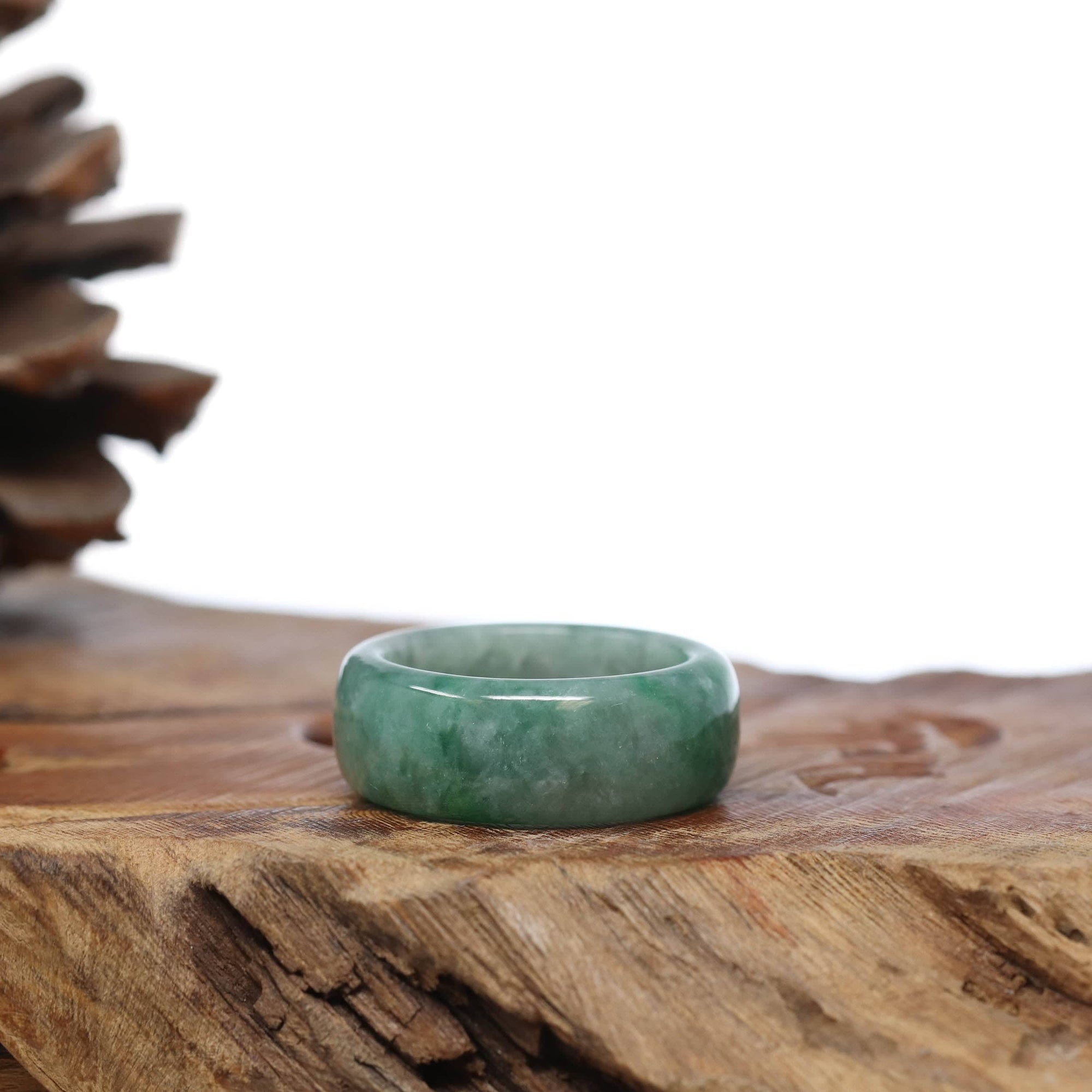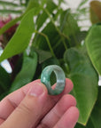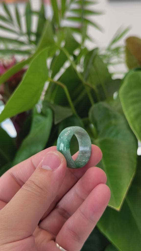 * DETAILS--- This ring is made with very high-quality genuine Burmese green jadeite jade. The jade texture is smooth, clean, and translucent. The dark forest green color with WuJi (乌鸡) "black chicken", a blackish grey tone, make for a unique and eye-catching combination. Known for its durability, jadeite is also believed to bring good luck. This ring makes a thoughtful and meaningful gift for yourself or someone special.