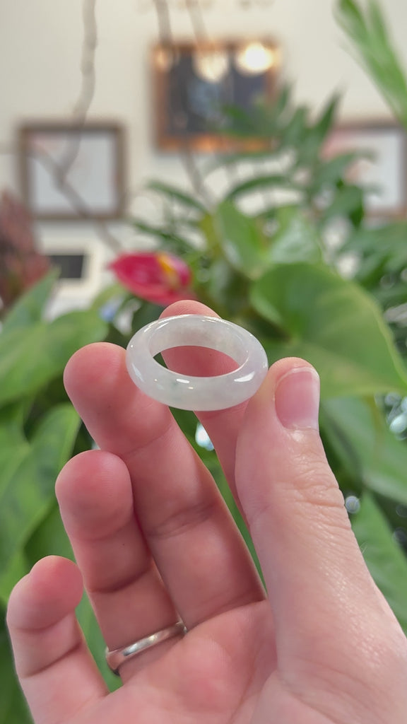 Natural Burmese Icy Light Green Solid Jadeite Jade Ring #8
