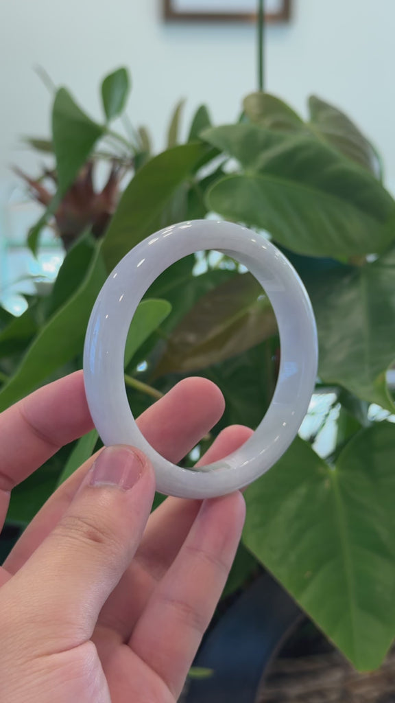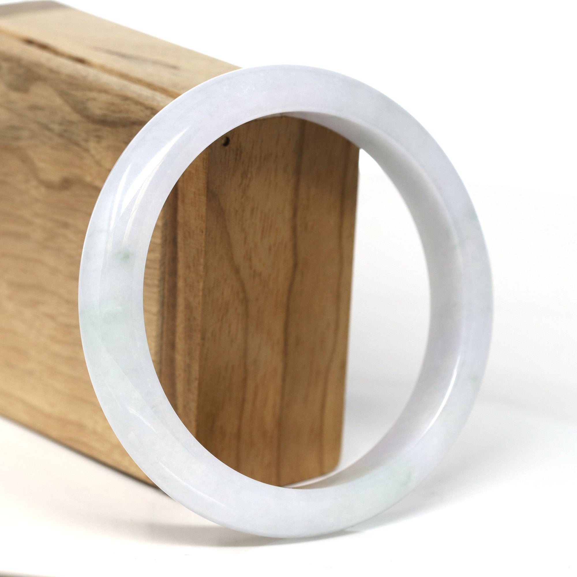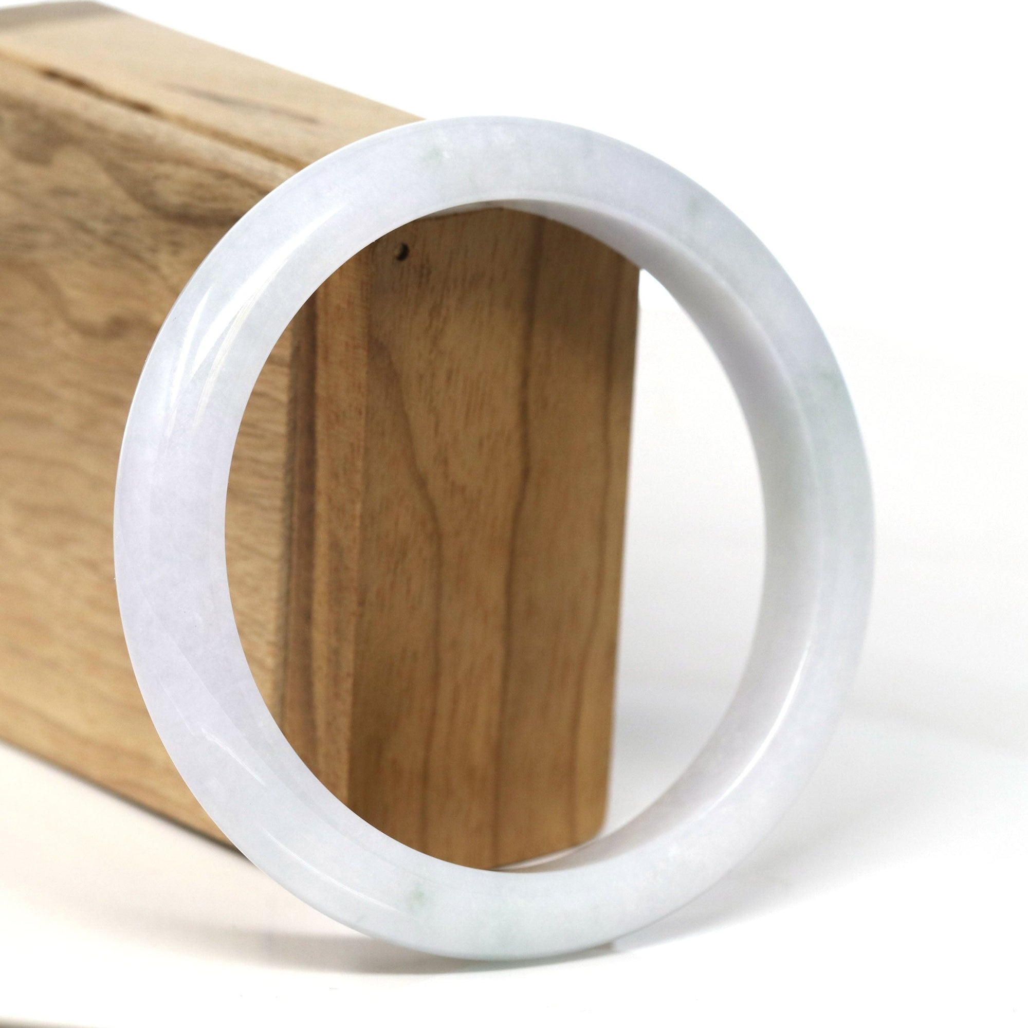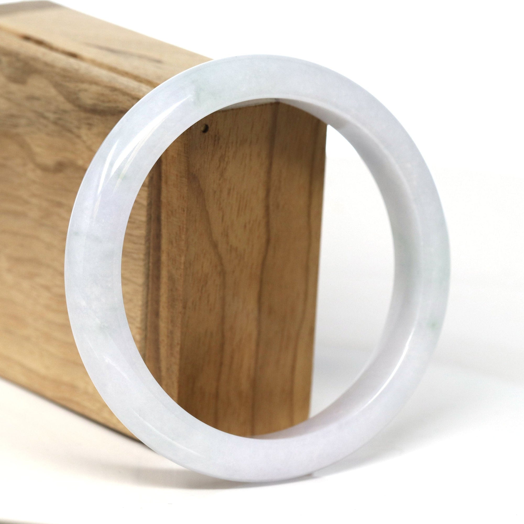 * DETAILS--- Genuine Burmese Jadeite Jade Bangle Bracelet. This bangle is made with high quality genuine Burmese light lavender Jadeite jade. The jade texture is fine and translucent. Even more beautiful in person. The bangle has some very beautiful light lavender color through out. The light lavender and smooth texture, truly a mesmerizing combination. The Classic half round style bracelet.