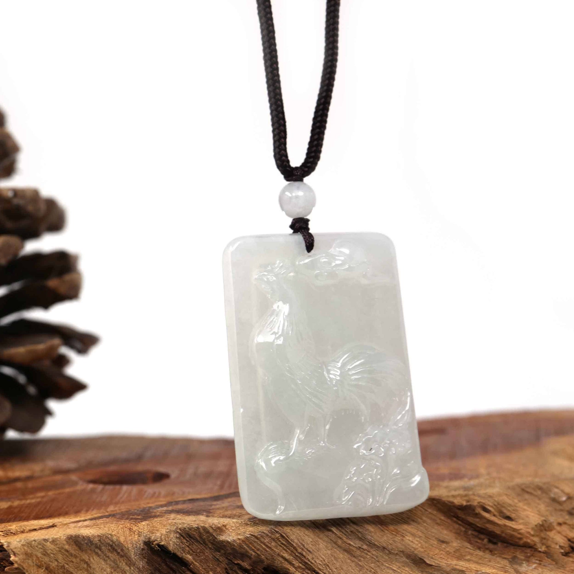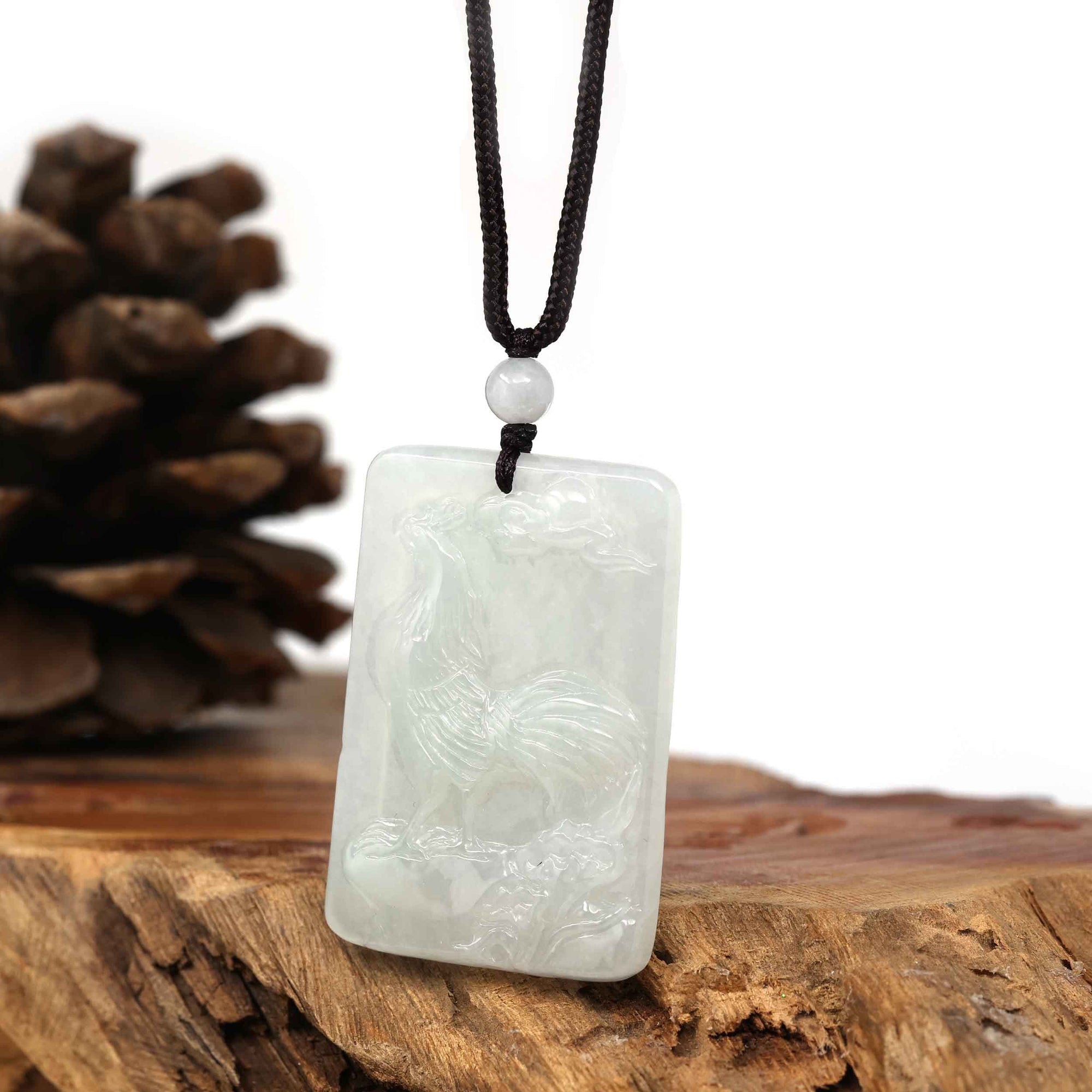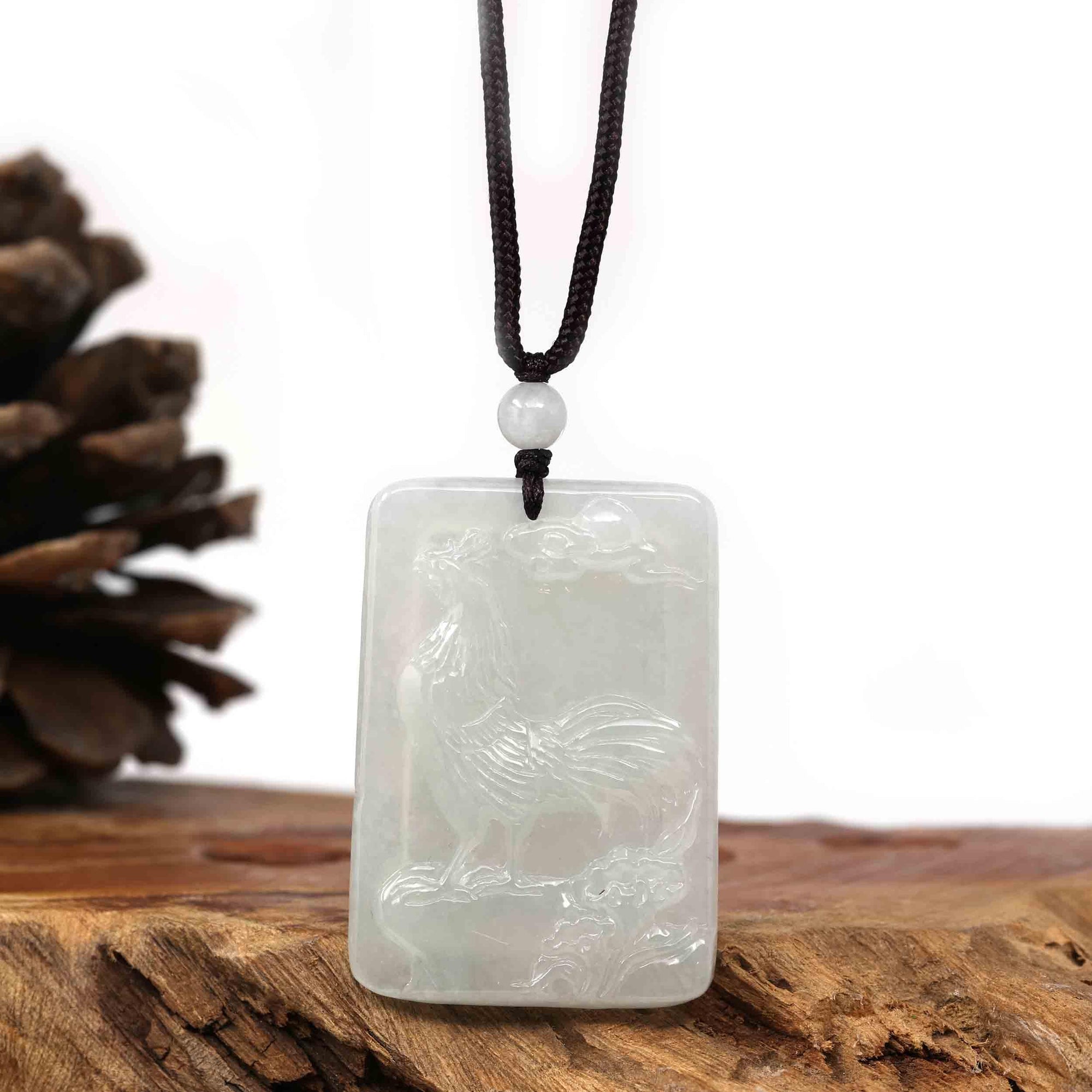 Natural Ice Jadeite Jade "Rooster" Pendant Necklace For Men, Collectibles.