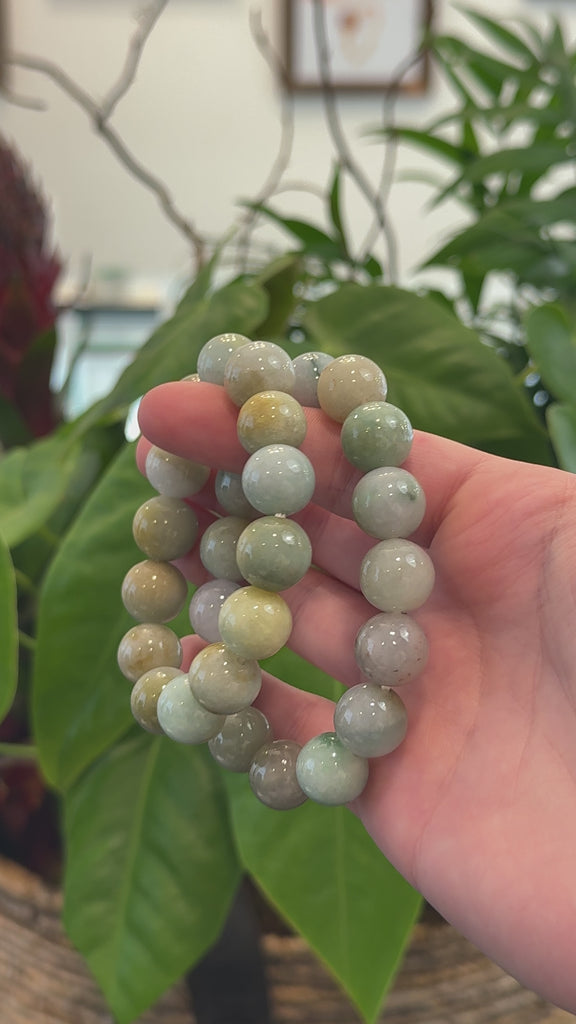 * DETAILS---Genuine Jadeite Jade Bigger Beads Bracelet. This bracelet is made with very high-quality genuine jadeite jade with lavender, green and vibrant colors. The bead's texture is so smooth and translucent. The classic round beads bracelet looks completely beautiful and affordable. It's a very unique gift for yourself or your love.