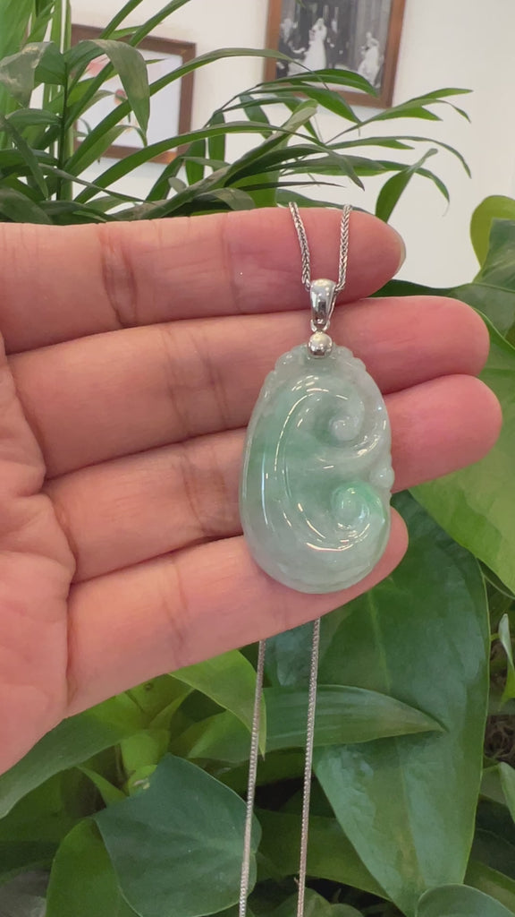 *Design concept-- "Ruyi" in Chinese literally means, "as you wish." This necklace portrays the timeless, good luck symbol in natural jadeite jade. This piece is one of a kind and you will not find another like it. It's worn as a good luck charm. Perfect for a gift for a friend who is venturing into a new chapter of life or a someone who is venturing into a new business.