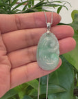 Baikalla Jewelry Jade Guanyin Pendant Necklace Copy of Natural Light Green Jadeite Jade Ru Yi Pendant Necklace With Sterling Silver Bail