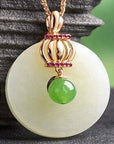 Rose gold Plated Sterling Silver Genuine White and Green Nephrite Jade Crown Necklace Pendant