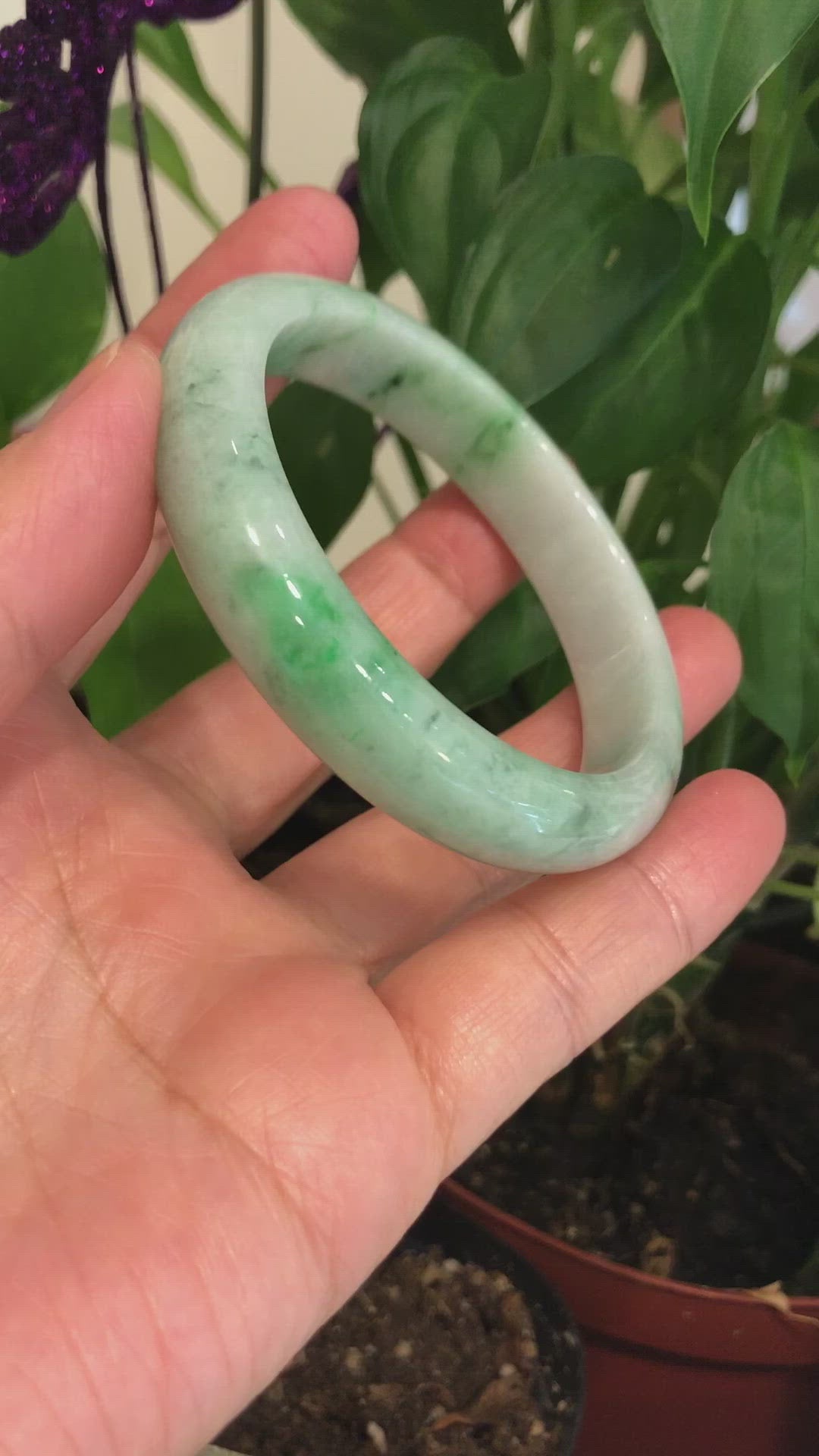 Genuine Burmese Lavender- Green Jadeite Jade Bracelet Bangle (58.3 mm) #73