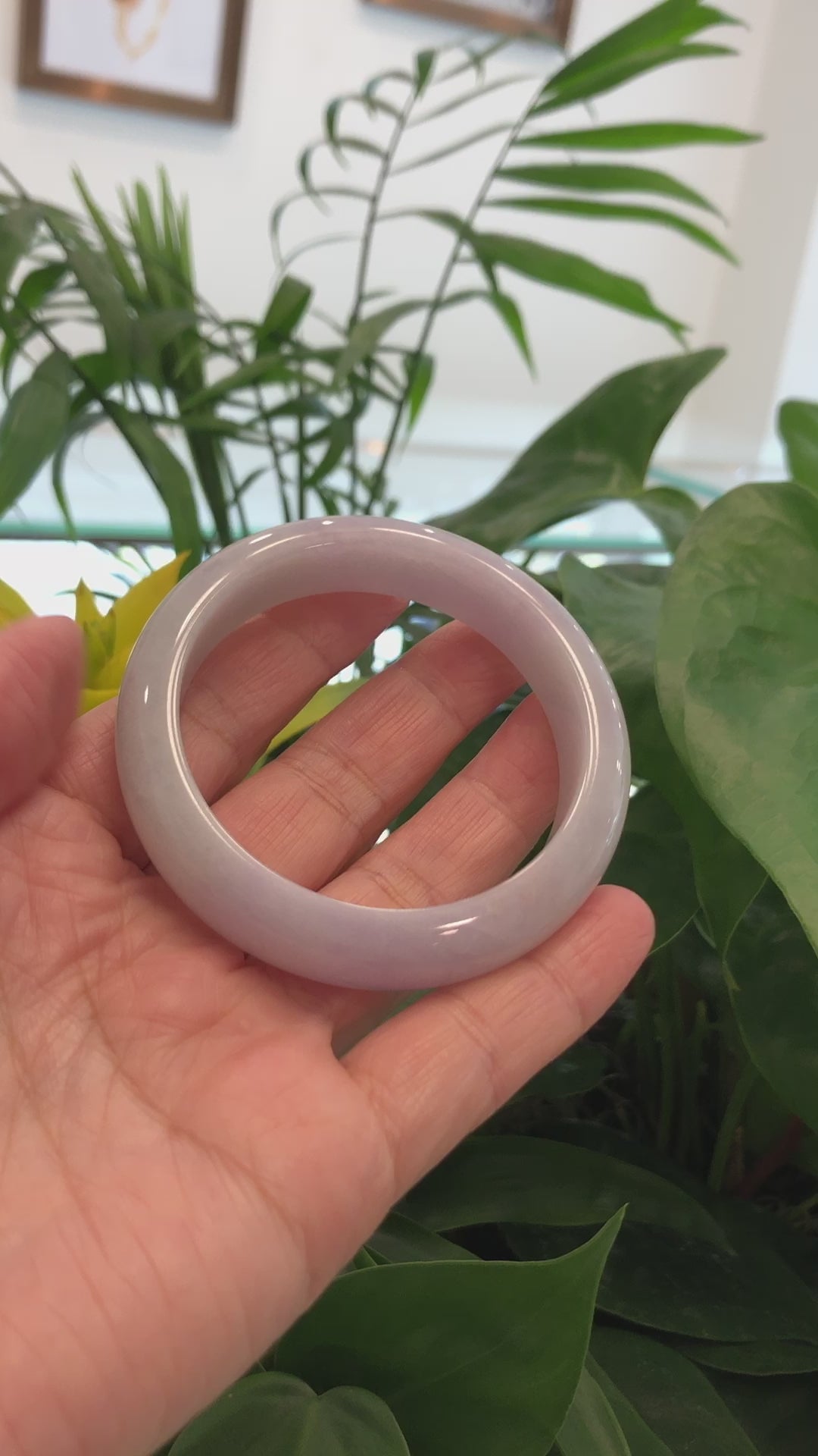 Genuine Burmese Light Lavender- Green Jadeite Jade Bangle Bracelet ( 59.44 mm) #914
