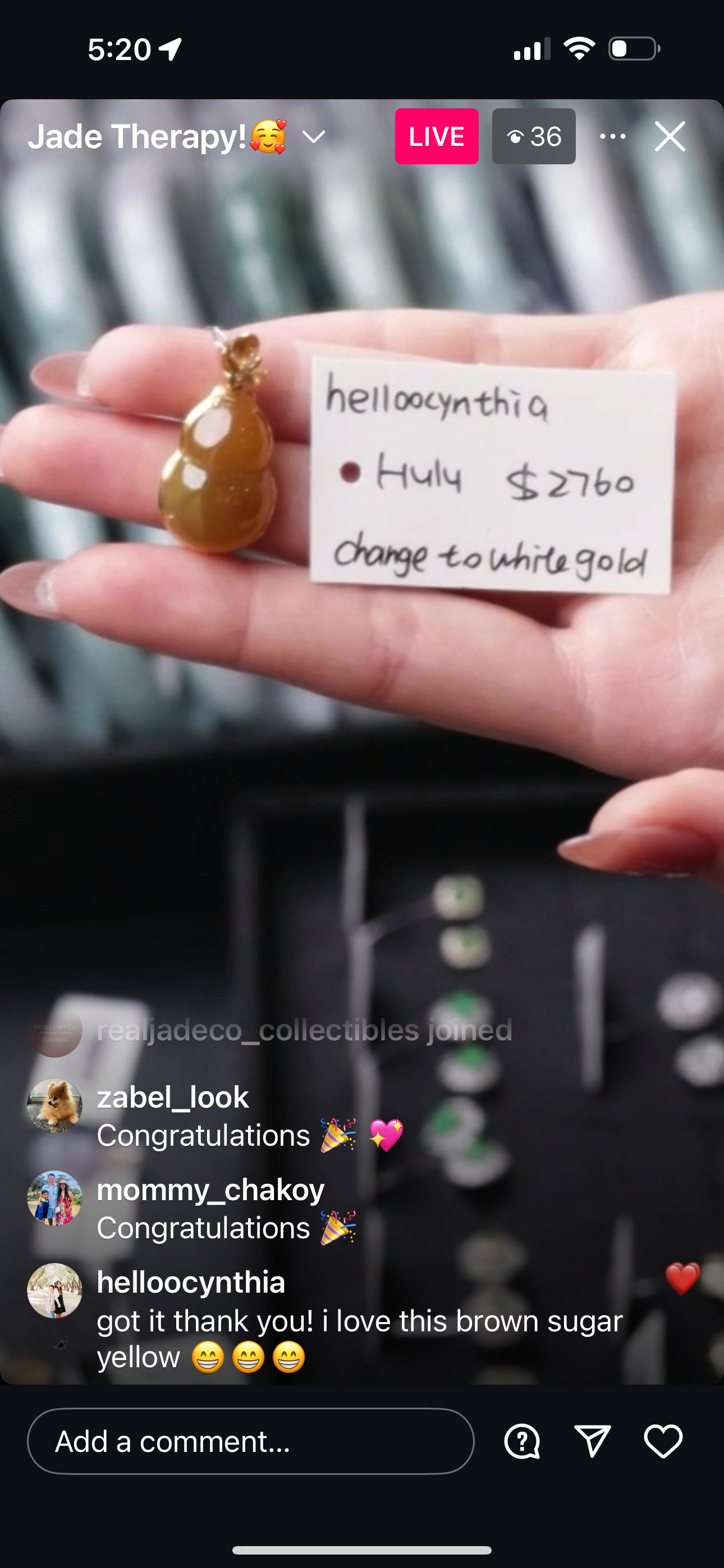 IG Live "Natural 18k Brown Sugar Yellow Jadeite Jade Pendant (Swap to white gold)" (Live Pick) (02/10/25)