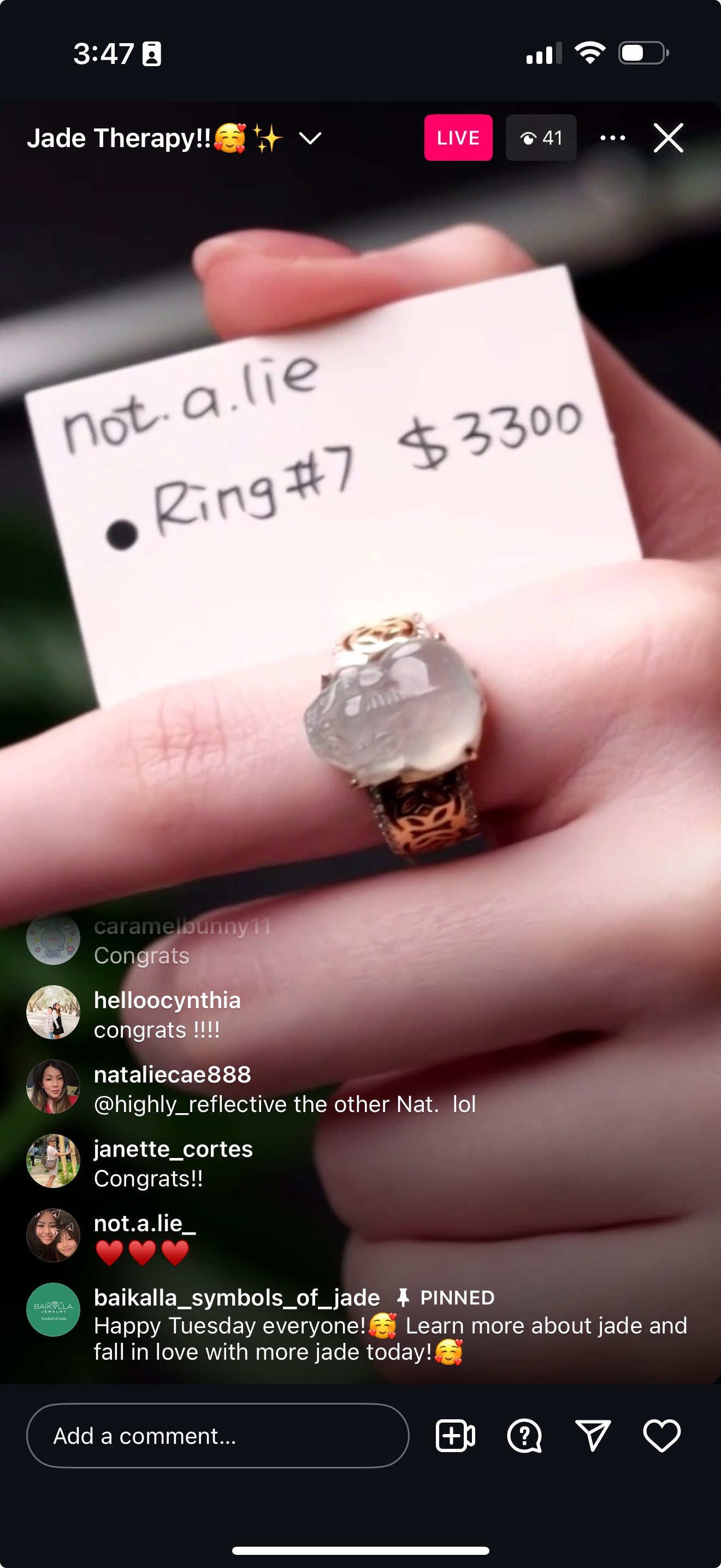 IG Live "Natural 18k Yellow High Icy Jadeite Jade PiXiu Ring #7 (Swap PiXiu as Discussed on live)" (Live Pick) (03/11/25)