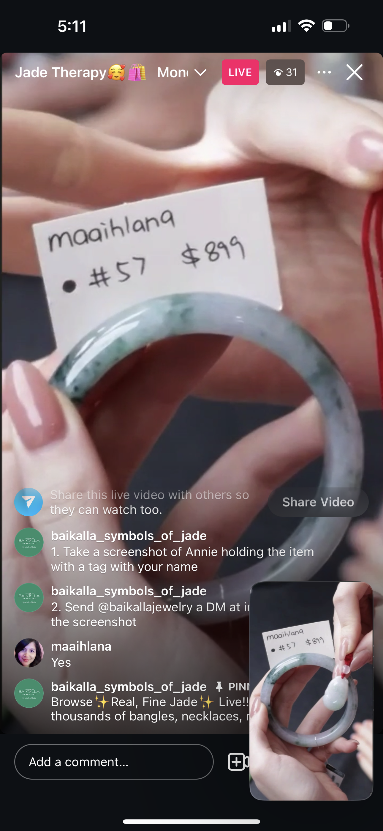 IG Live "Natural Blue Green Jadeite Jade Bangle" (Live Pick) (03/05/25)