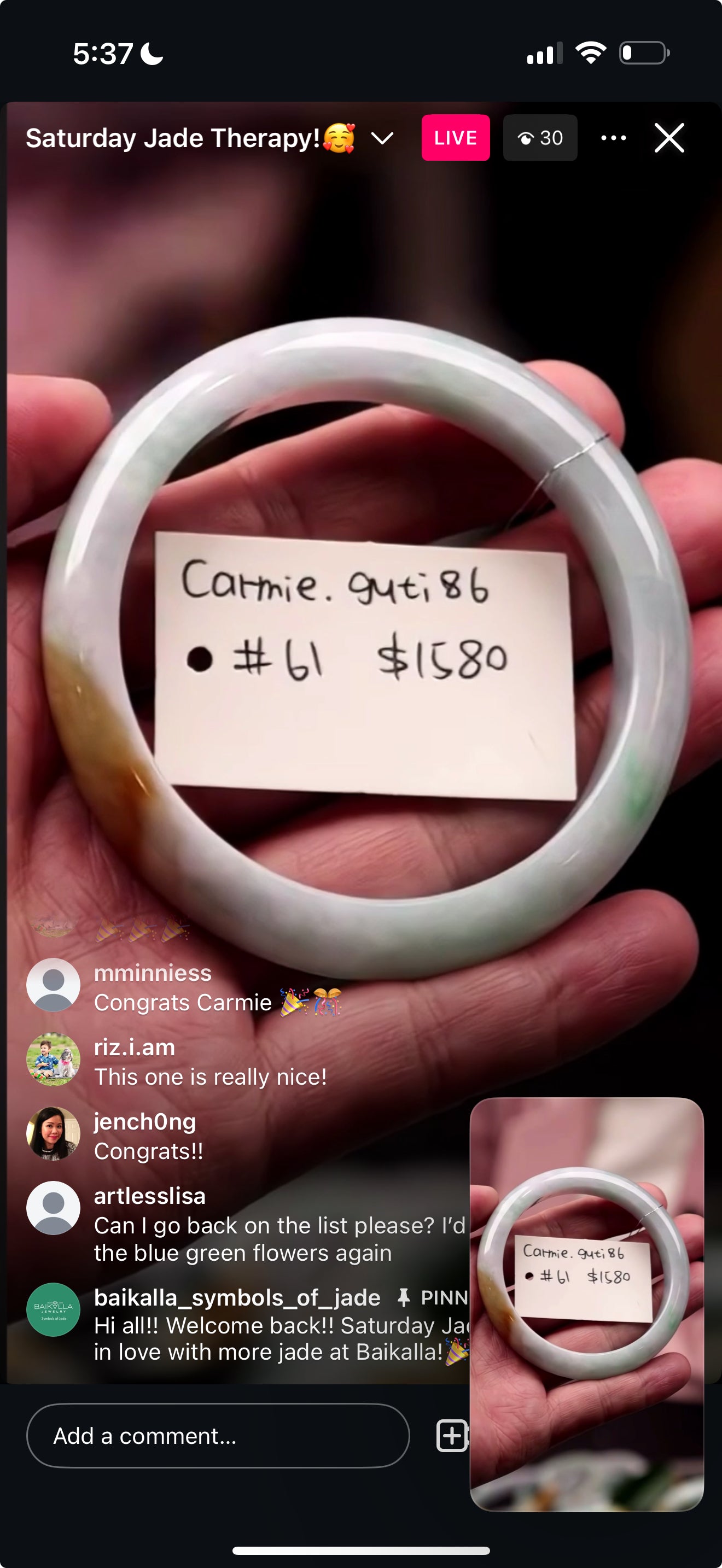IG Live "Natural Blue Green Jadeite Jade Bangle" (Live Pick) (12/21/24)