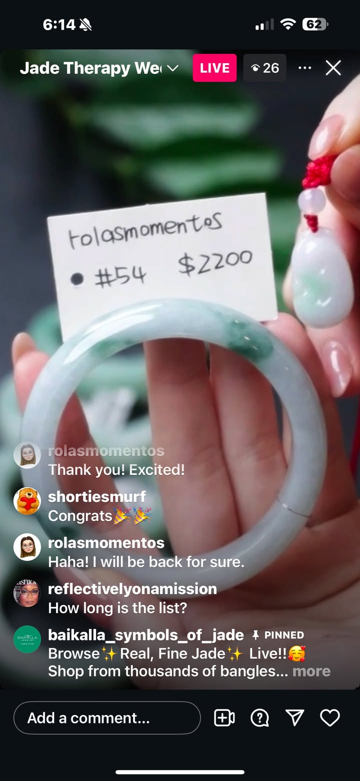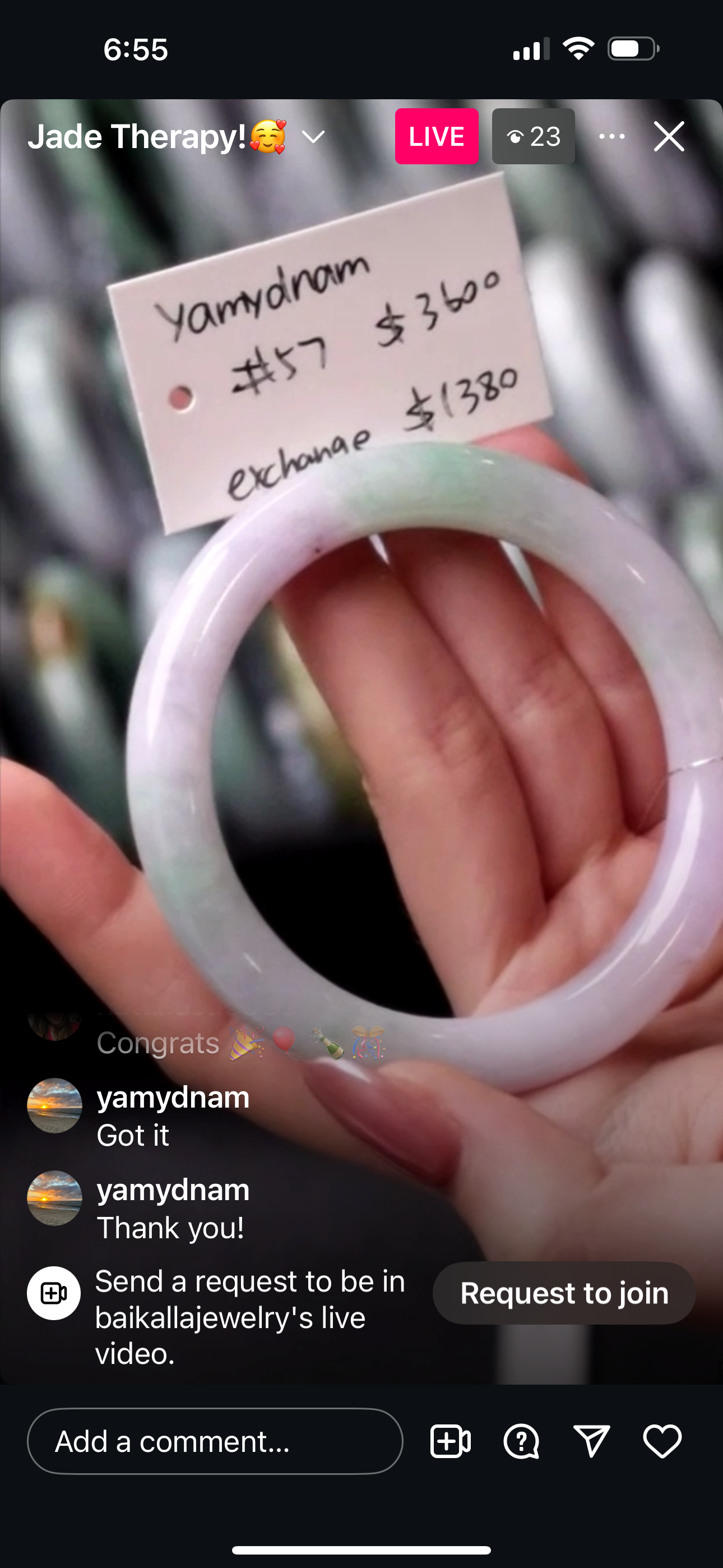 IG Live "Natural High End Bai Di Ching Jadeite Jade Bangle" (Live Pick) (03/15/25)