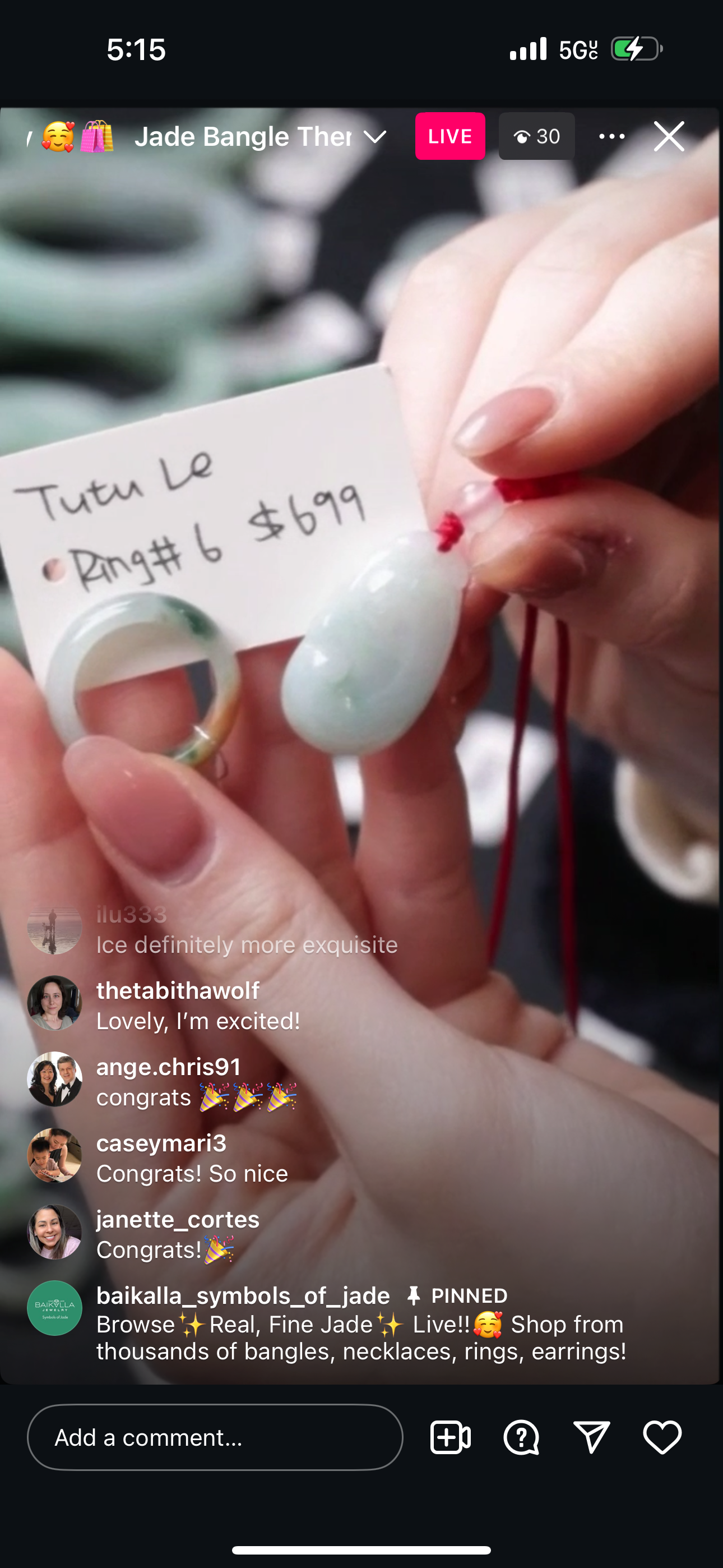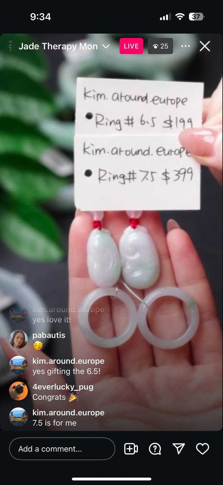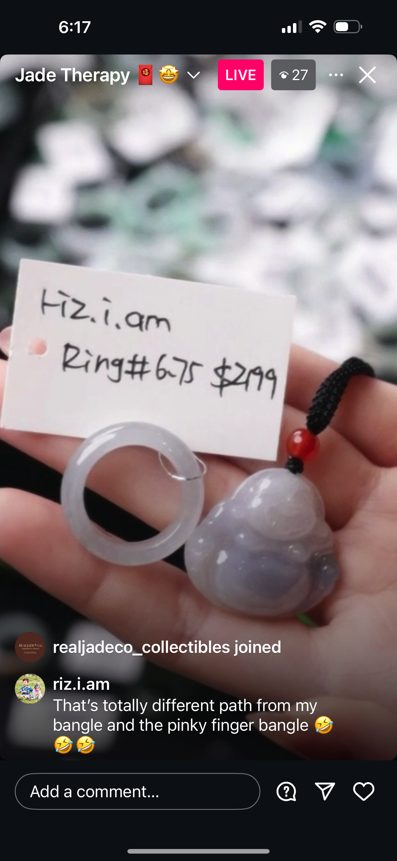 IG Live "Natural High Quality Icy Jadeite Jade Ring" (Live Pick) (02/01/25)