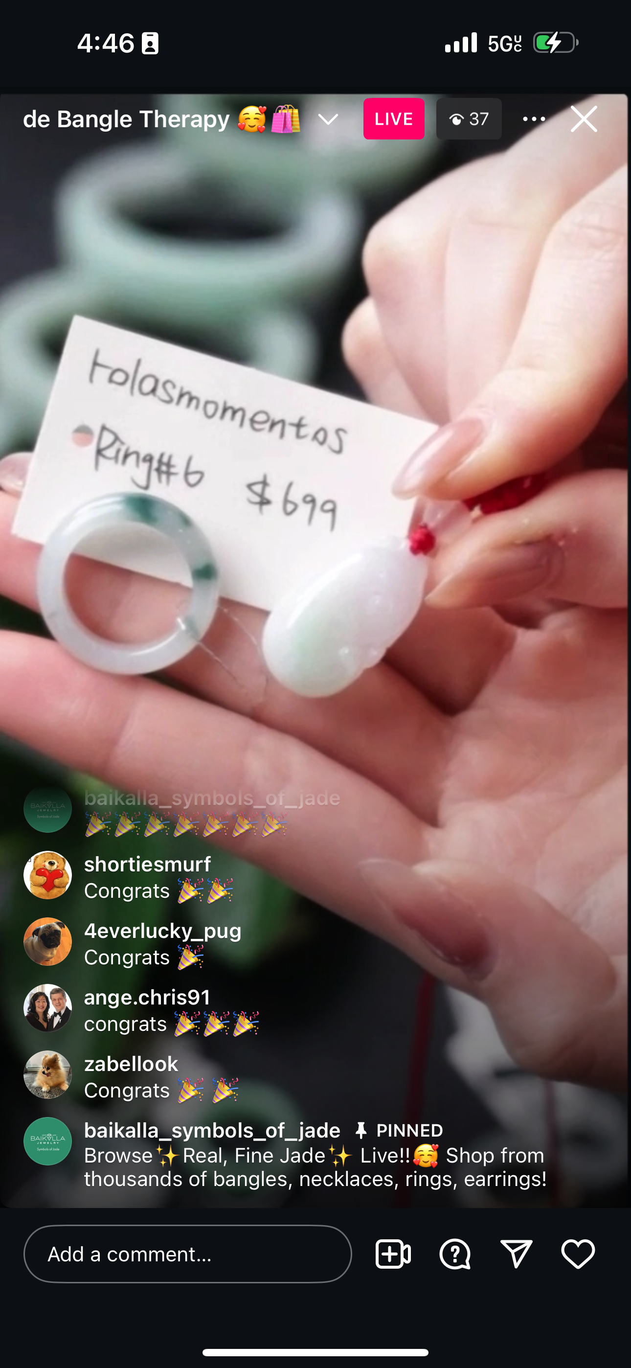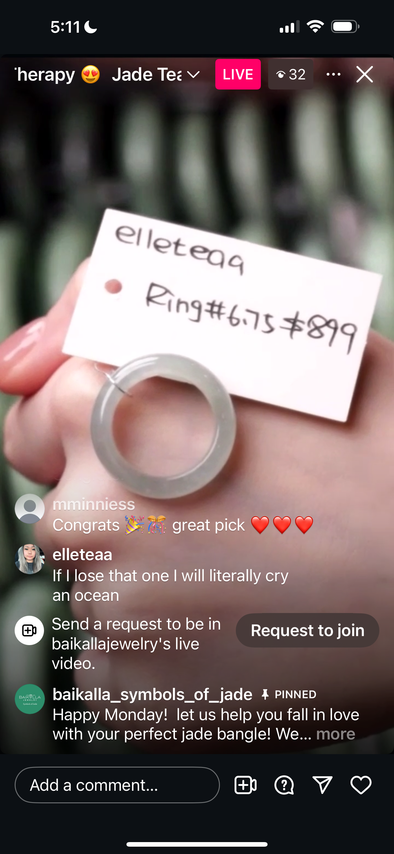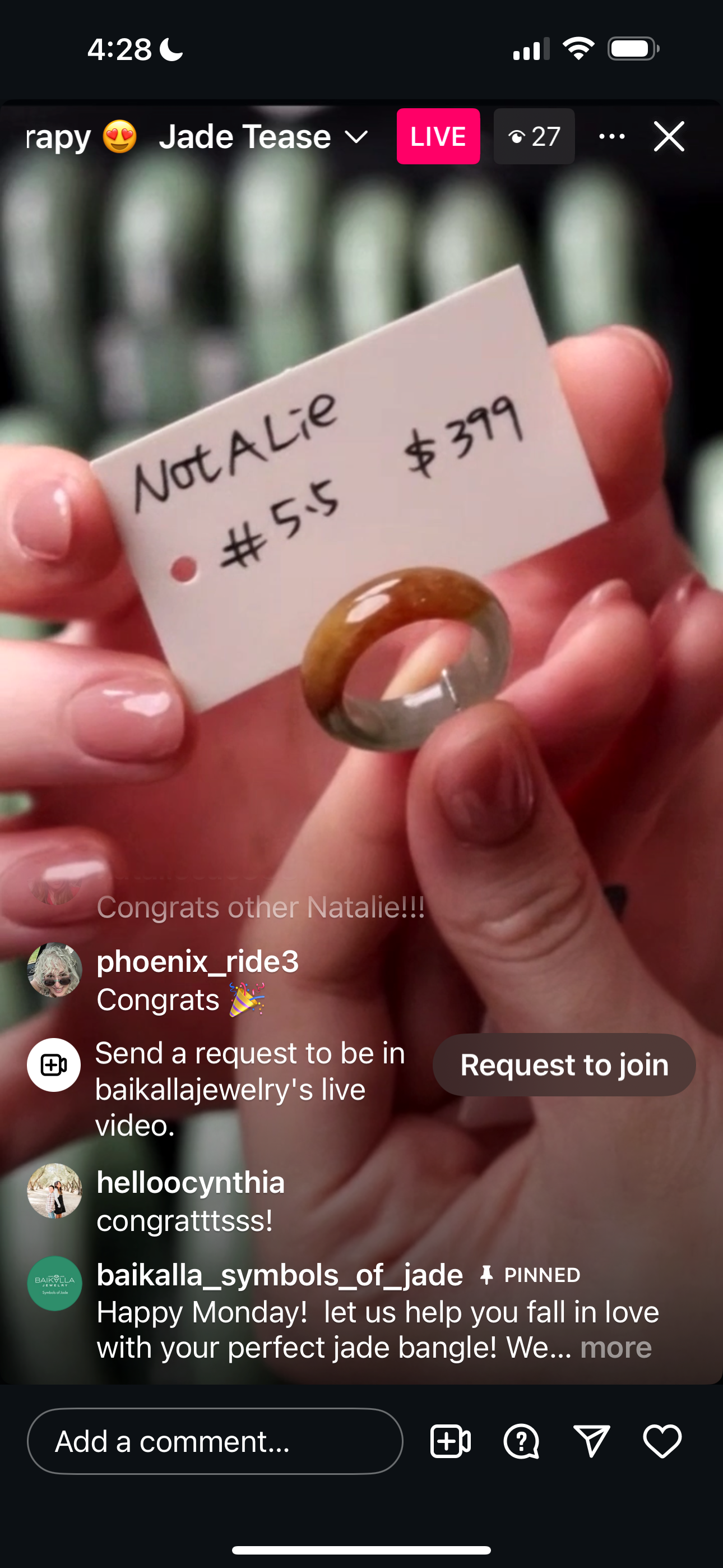 IG Live "Natural High Quality Icy Jadeite Jade Ring" (Live Pick) (02/01/25)