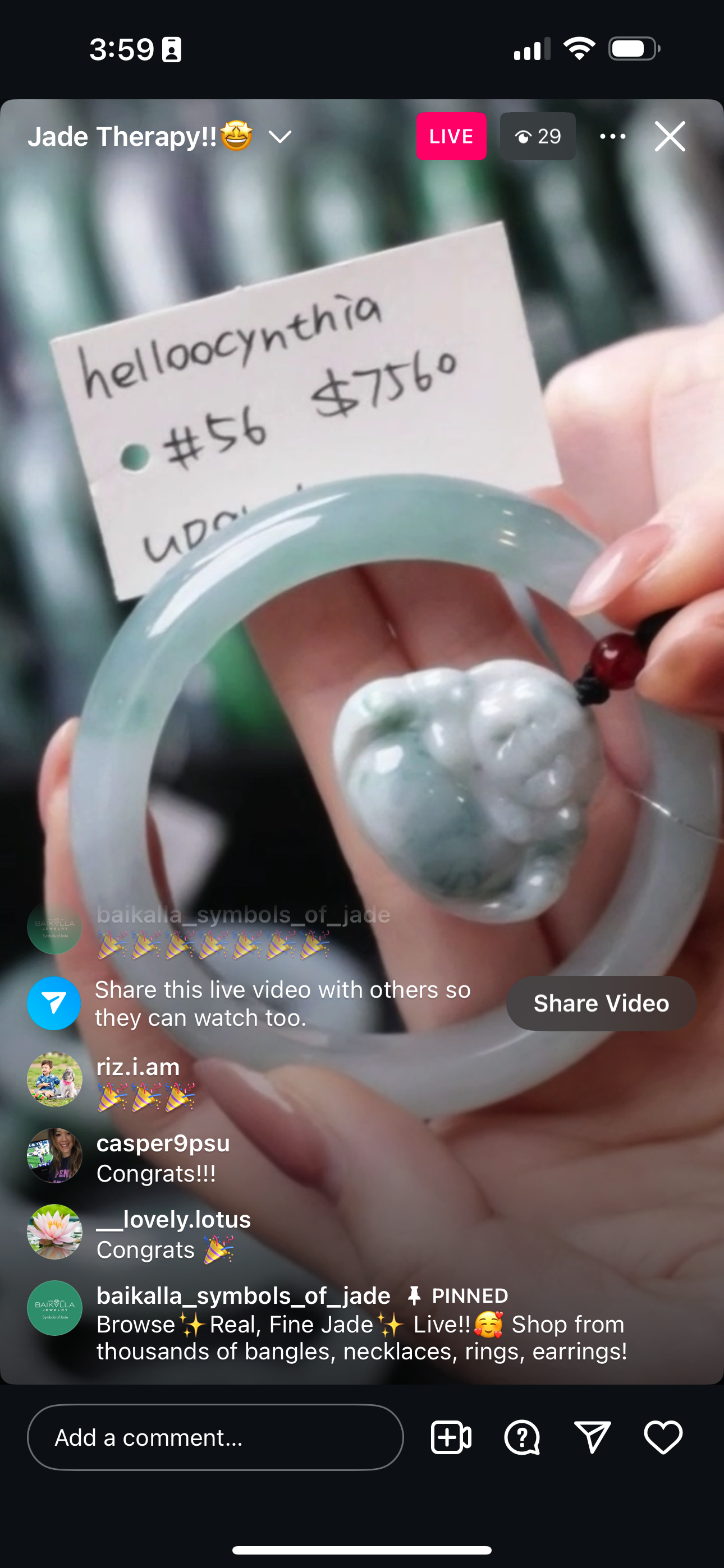 IG Live "Natural Icy Blue Green Flower Circle Jadeite Jade PiXiu Carving" (Live Pick) (03/18/25)