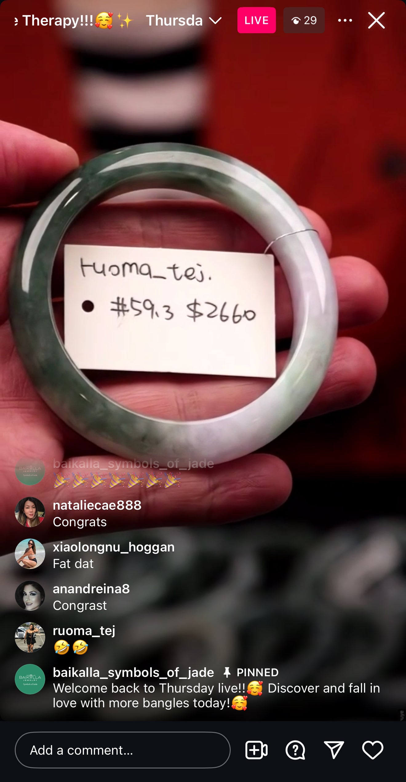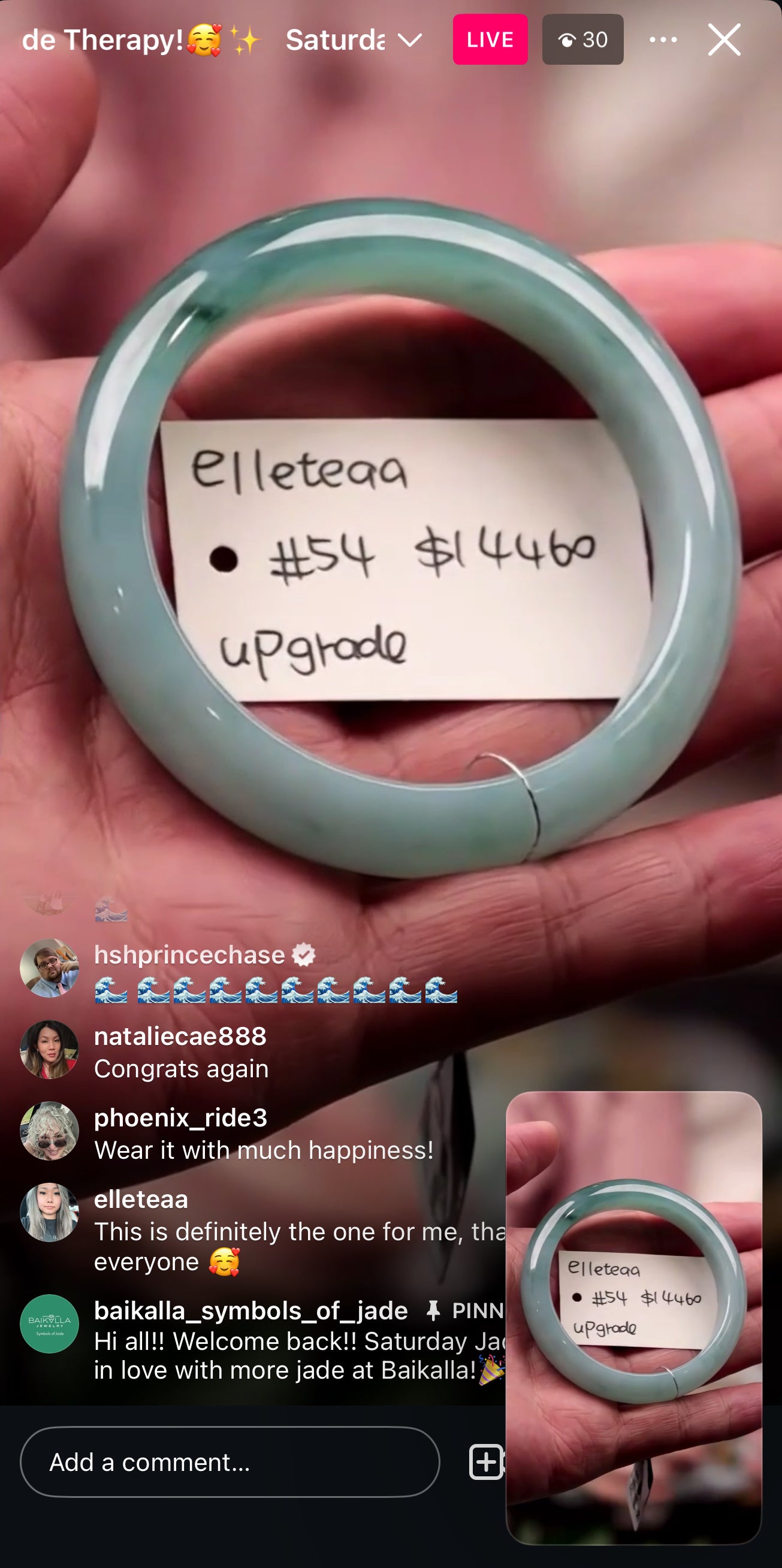 IG Live "Natural High End Icy Lake Green Jadeite Jade Bangle" (Live Pick) (01/22/25)