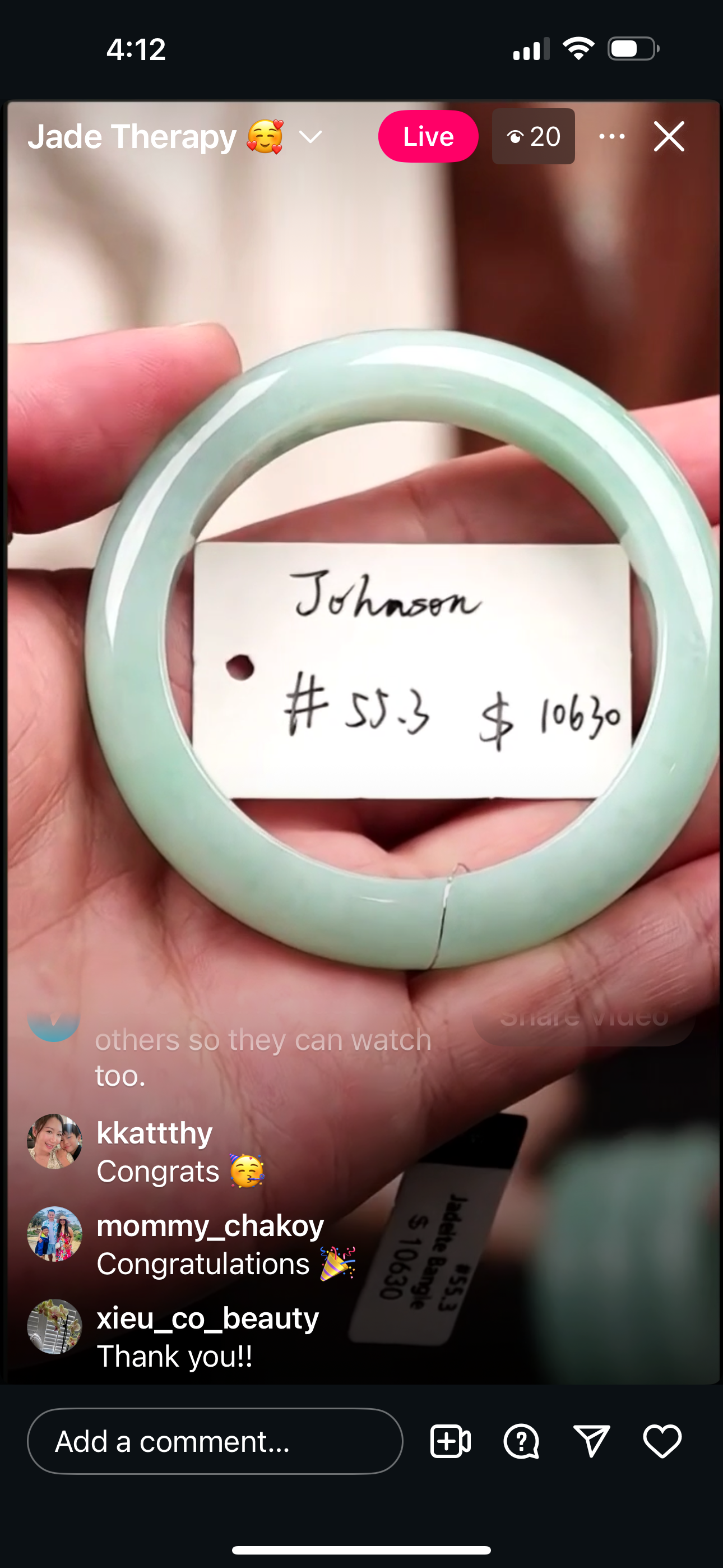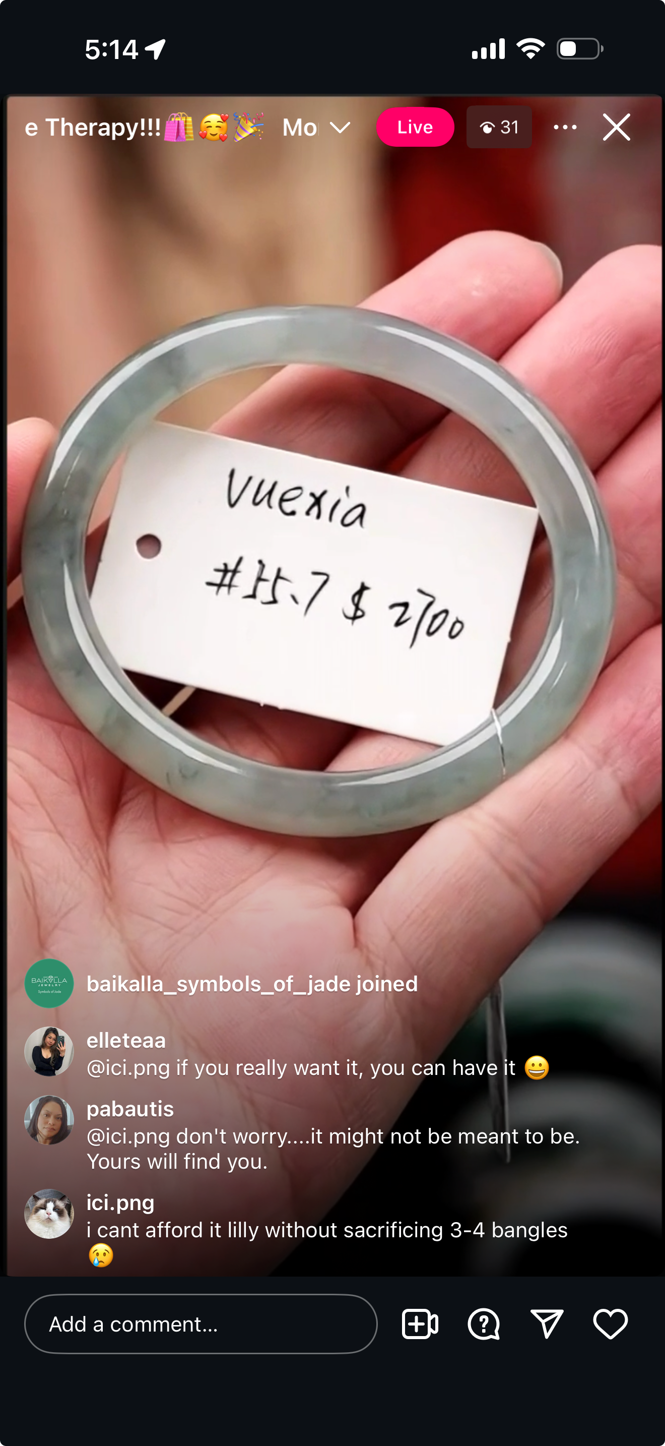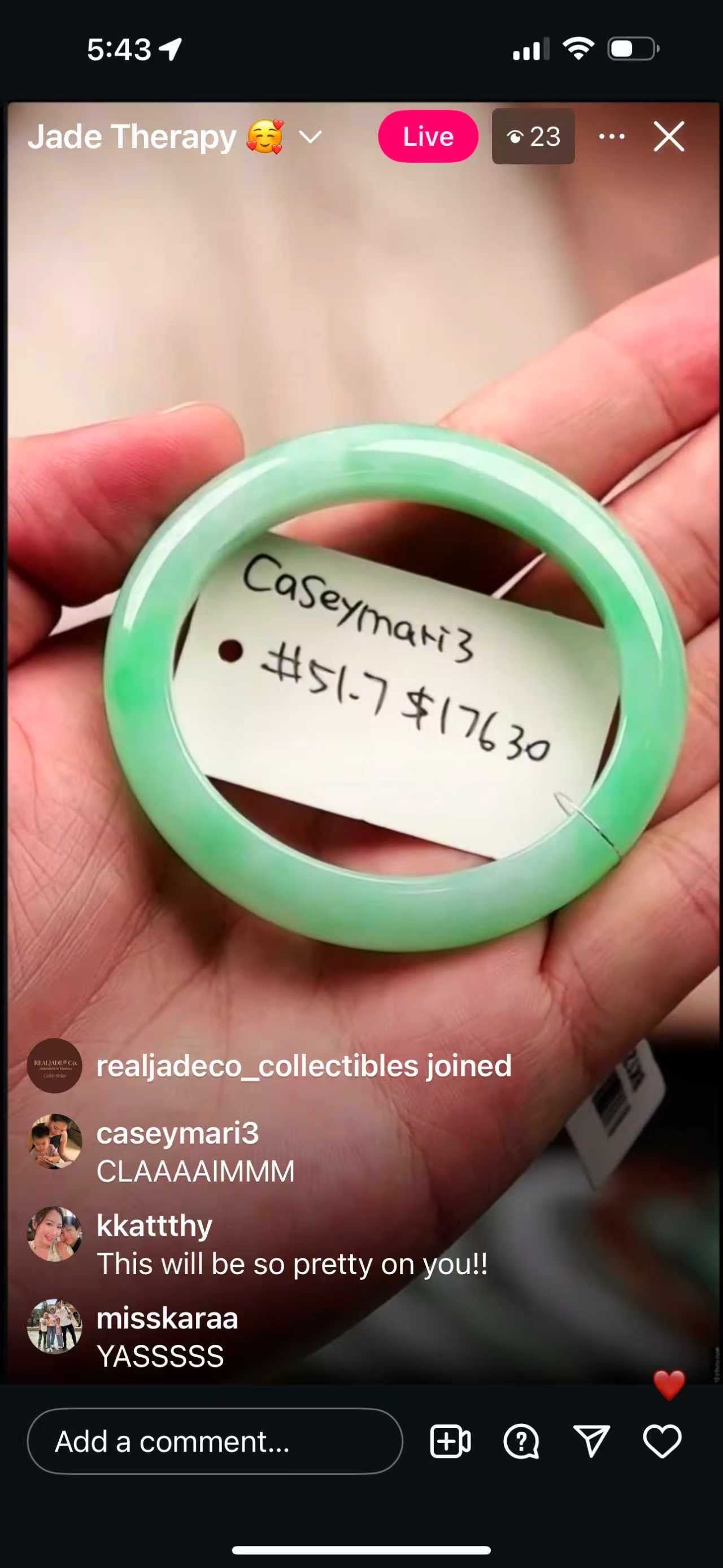"Live" Natural High-End Light Blue-Green Color Jadeite Jade Bangle (11/18/25)