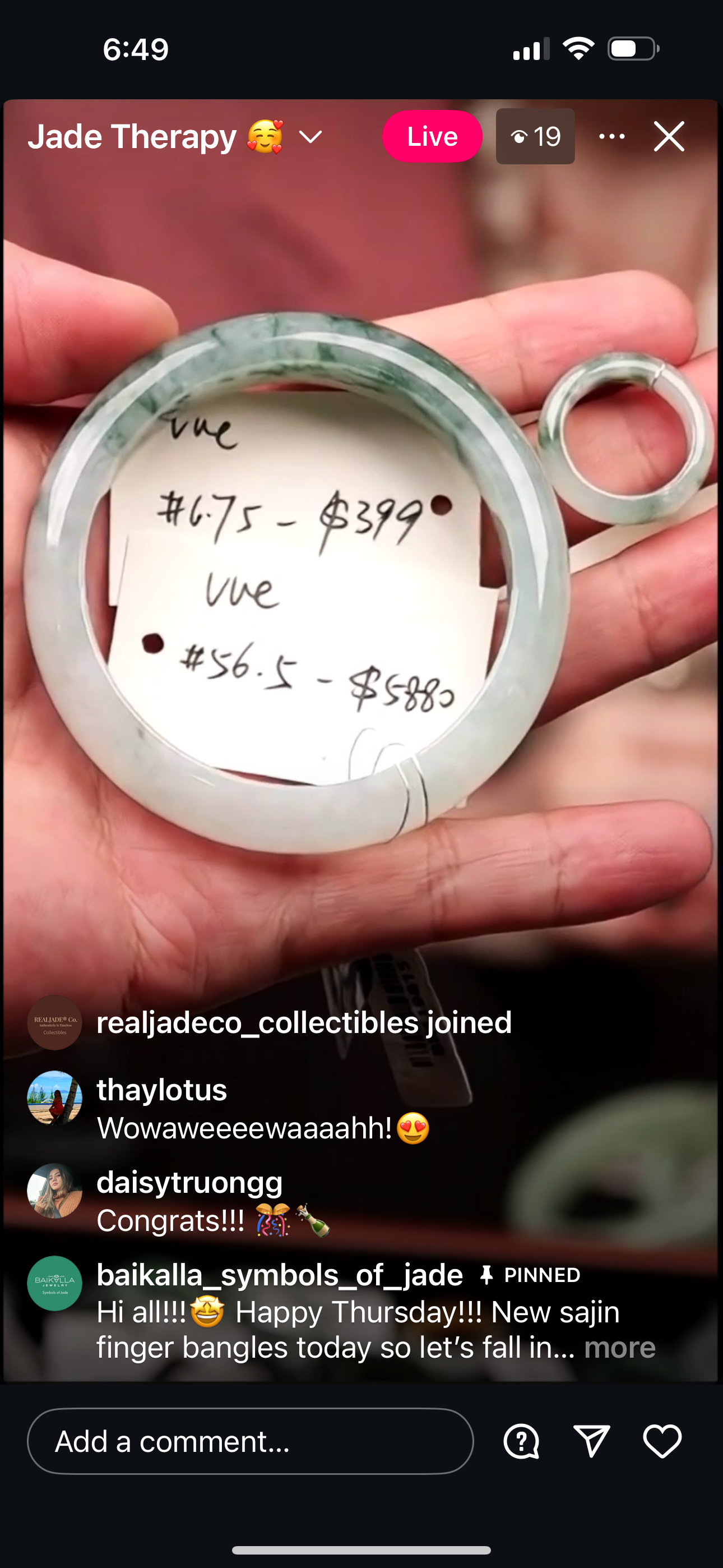 "Live" Natural High Icy Jadeite Jade Finger Bangle #4.75" (07/03/25)