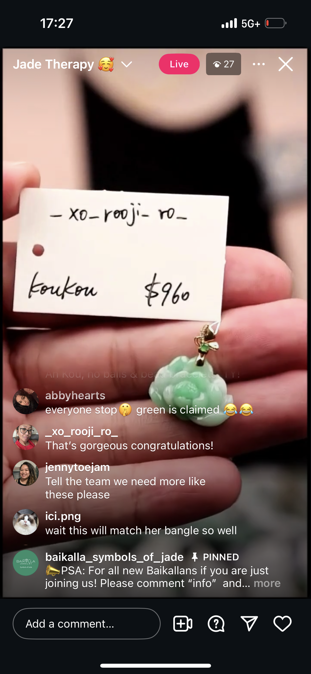 "Live" Natural Green Jadeite Jade Kou Kou Pendant (10/22/25)