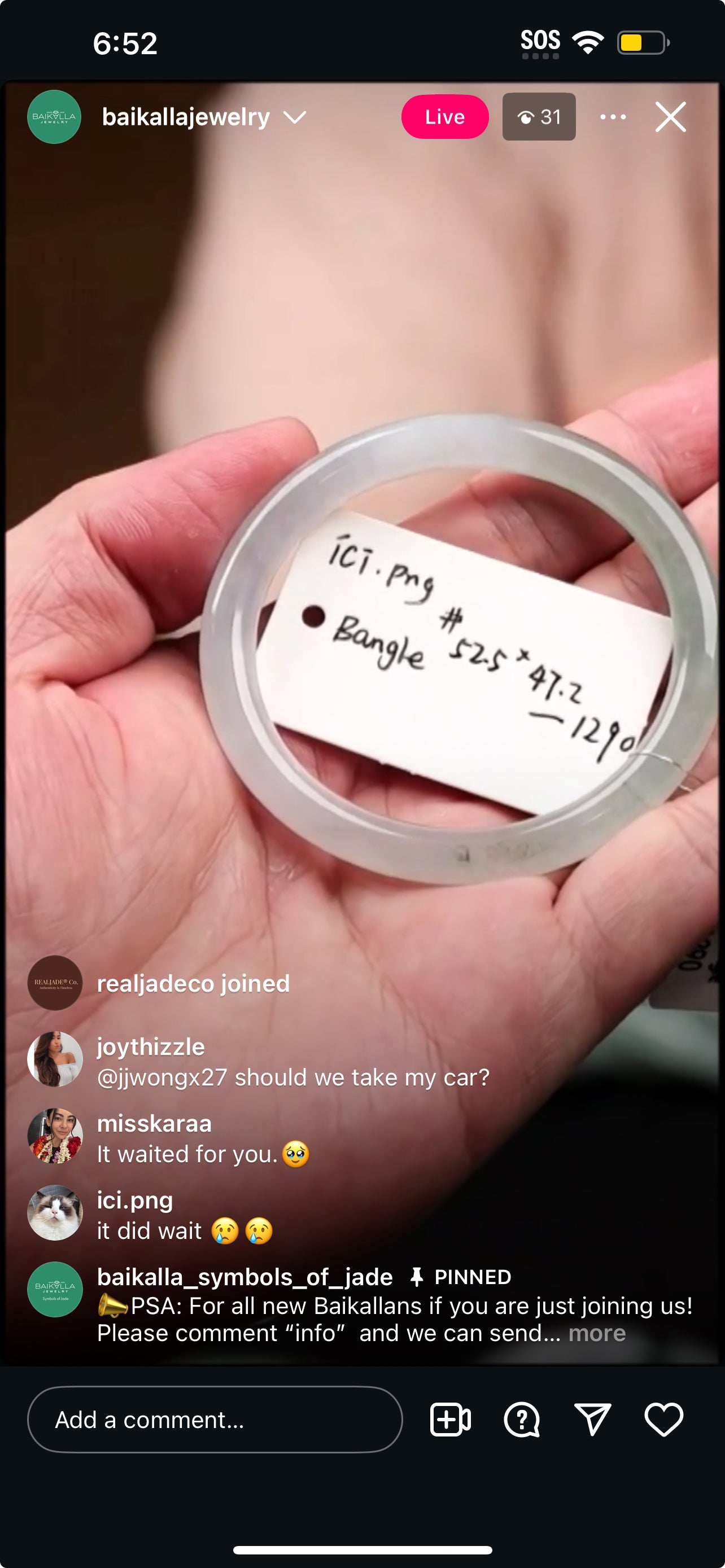 "Live" Natural High End Icy Lavender Jadeite Jade Bangle (07/16/25)