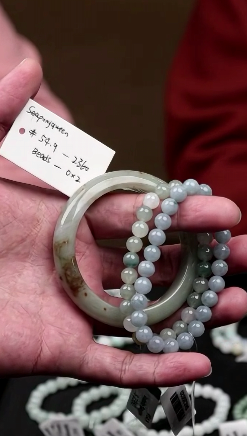 "Live" Natural icy & Green Jadeite Jade Bead Bracelet" (07/12/25)