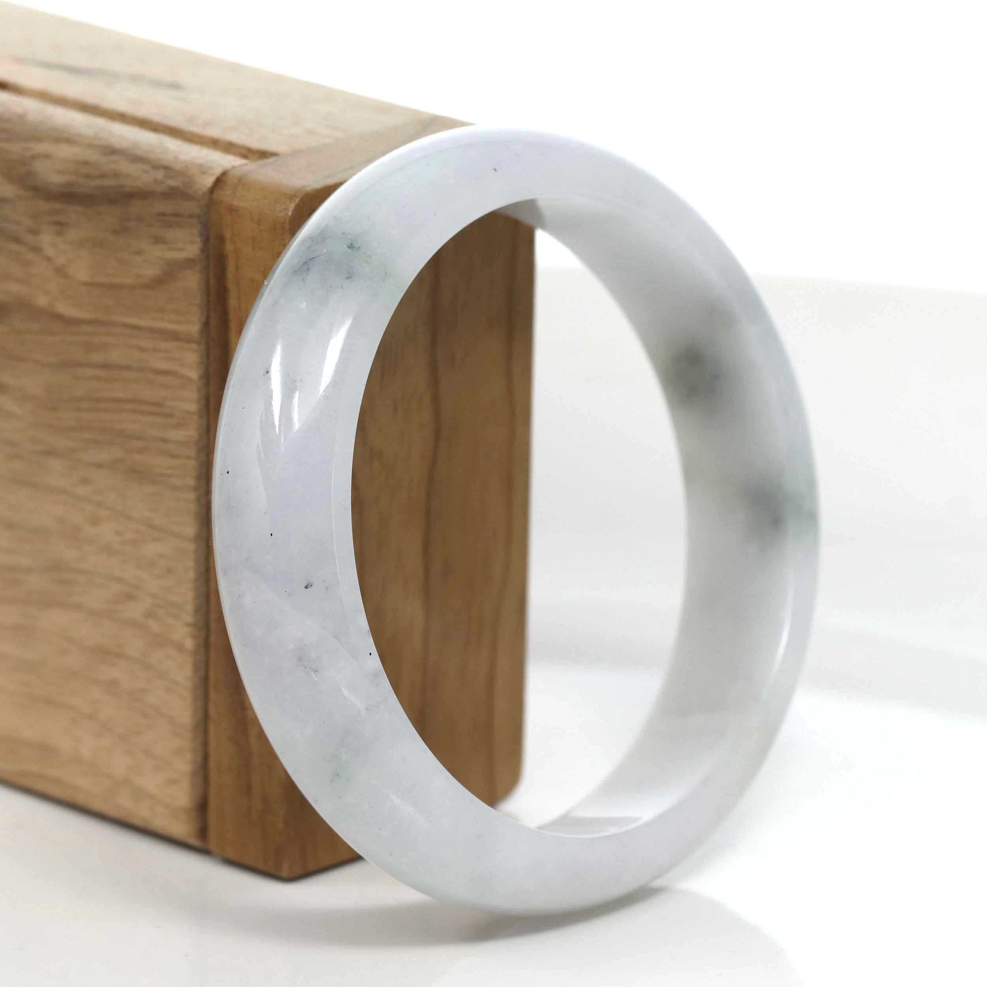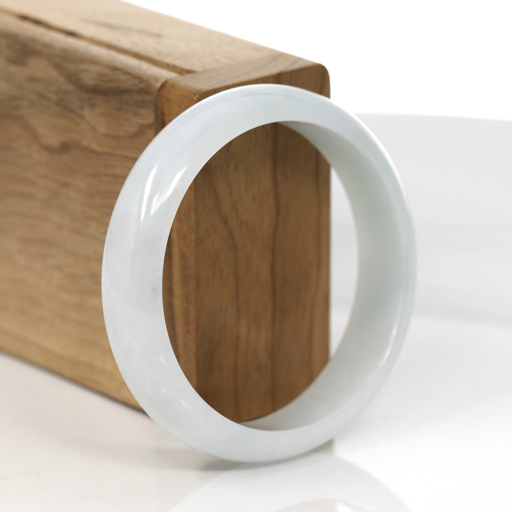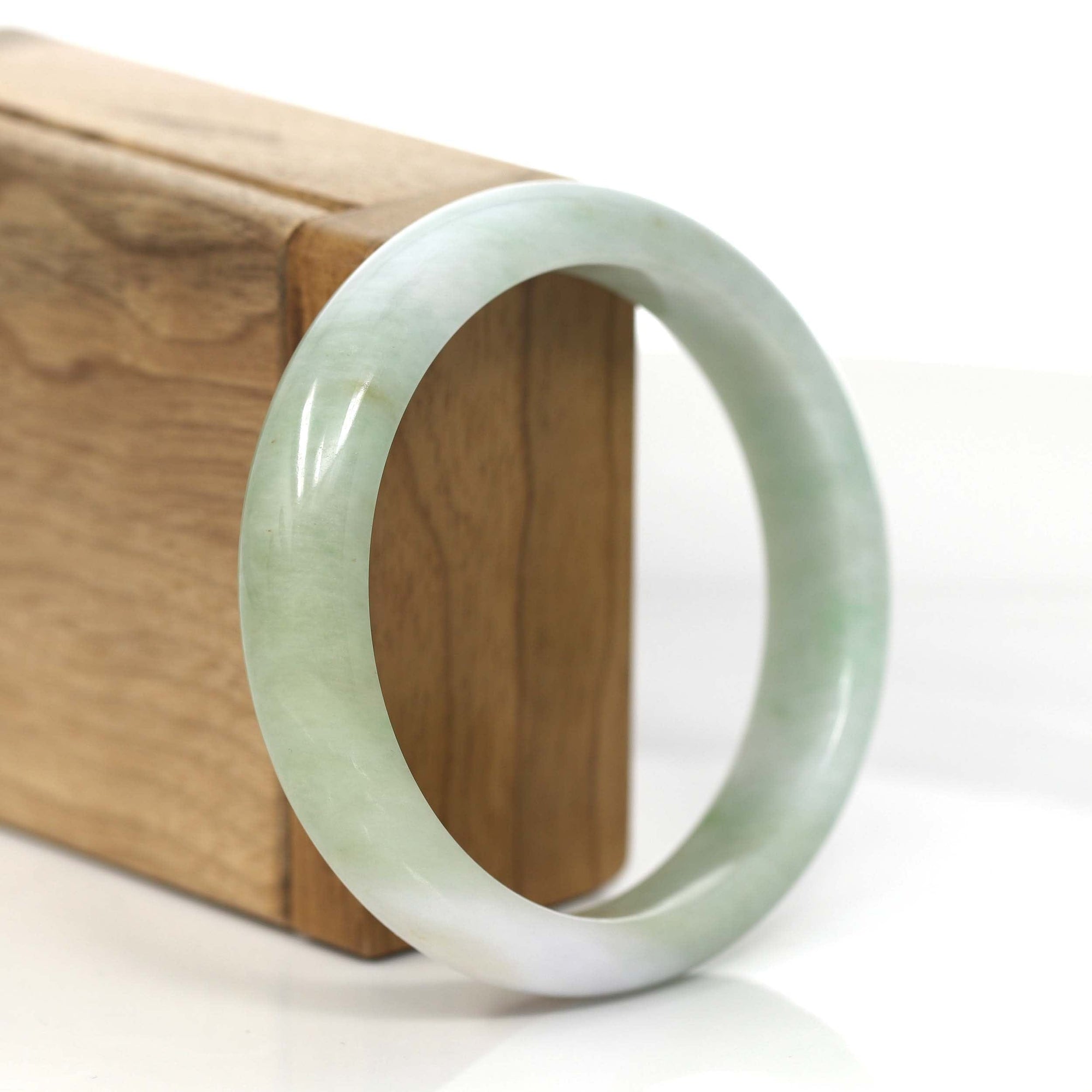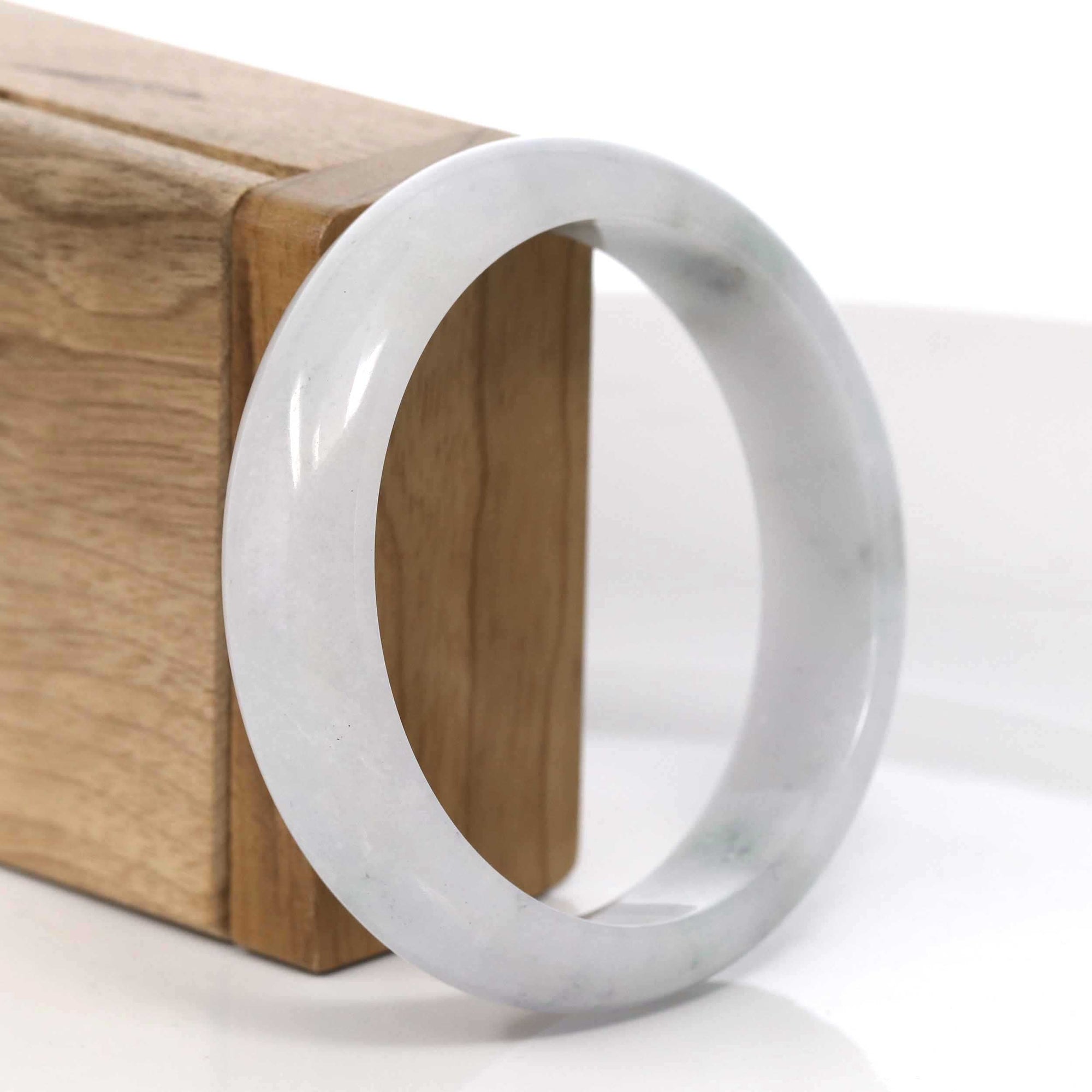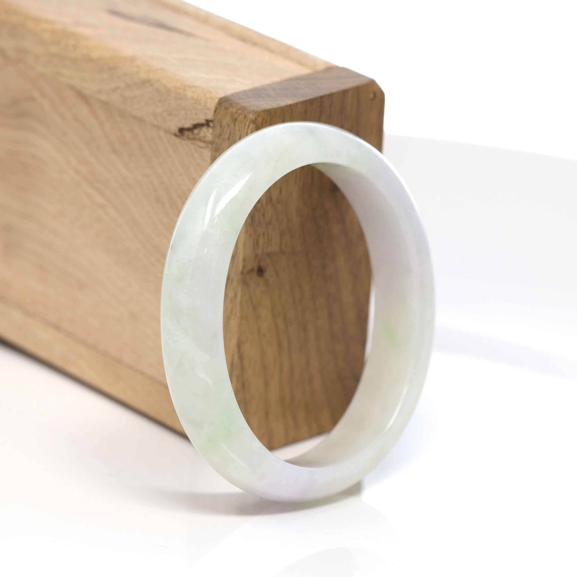 Baikalla™ "Classic" Genuine Jadeite Jade White-Green Bangle Bracelet (56.55mm) #T234