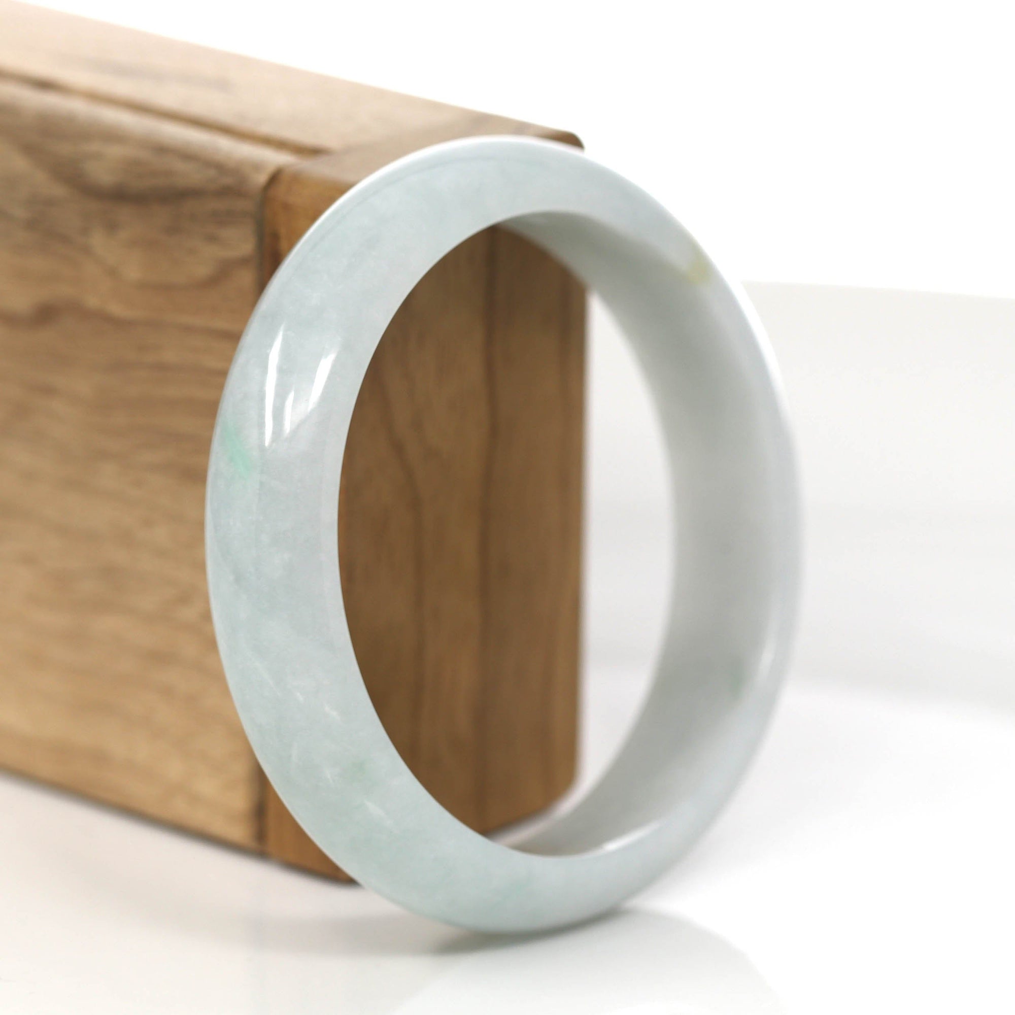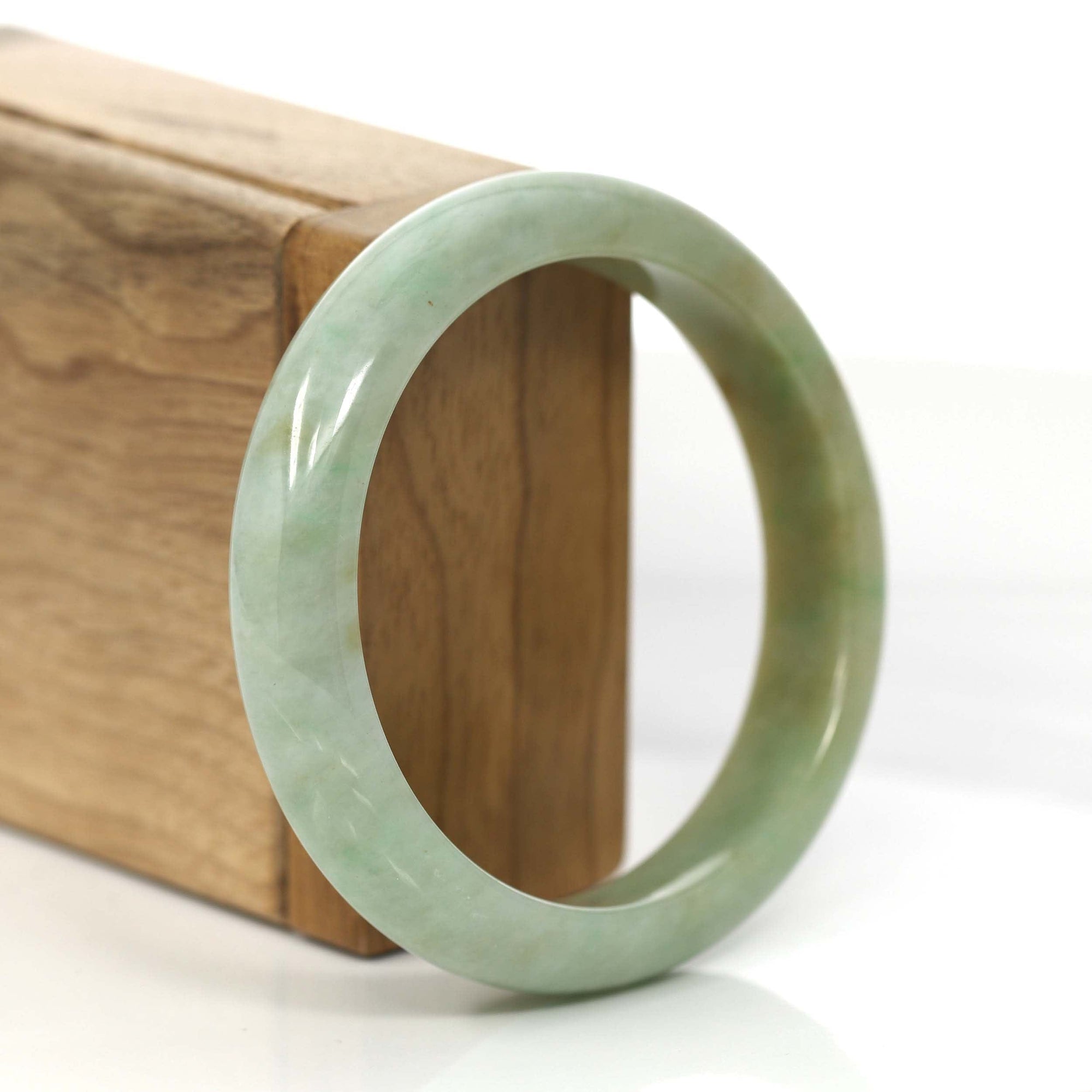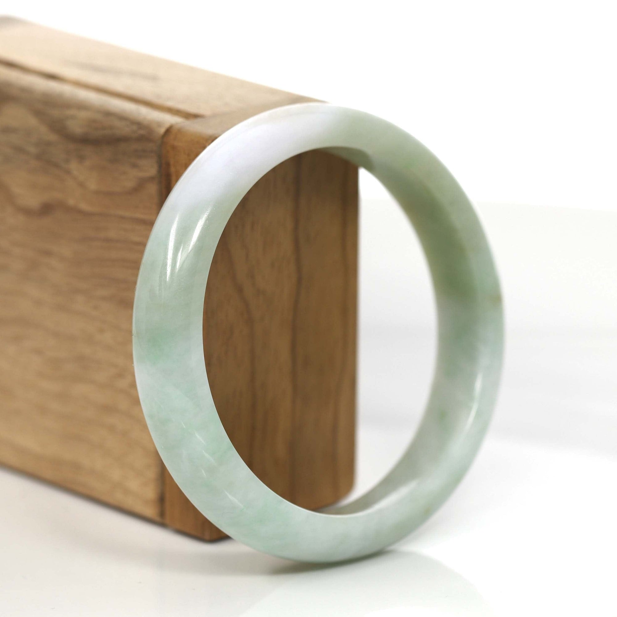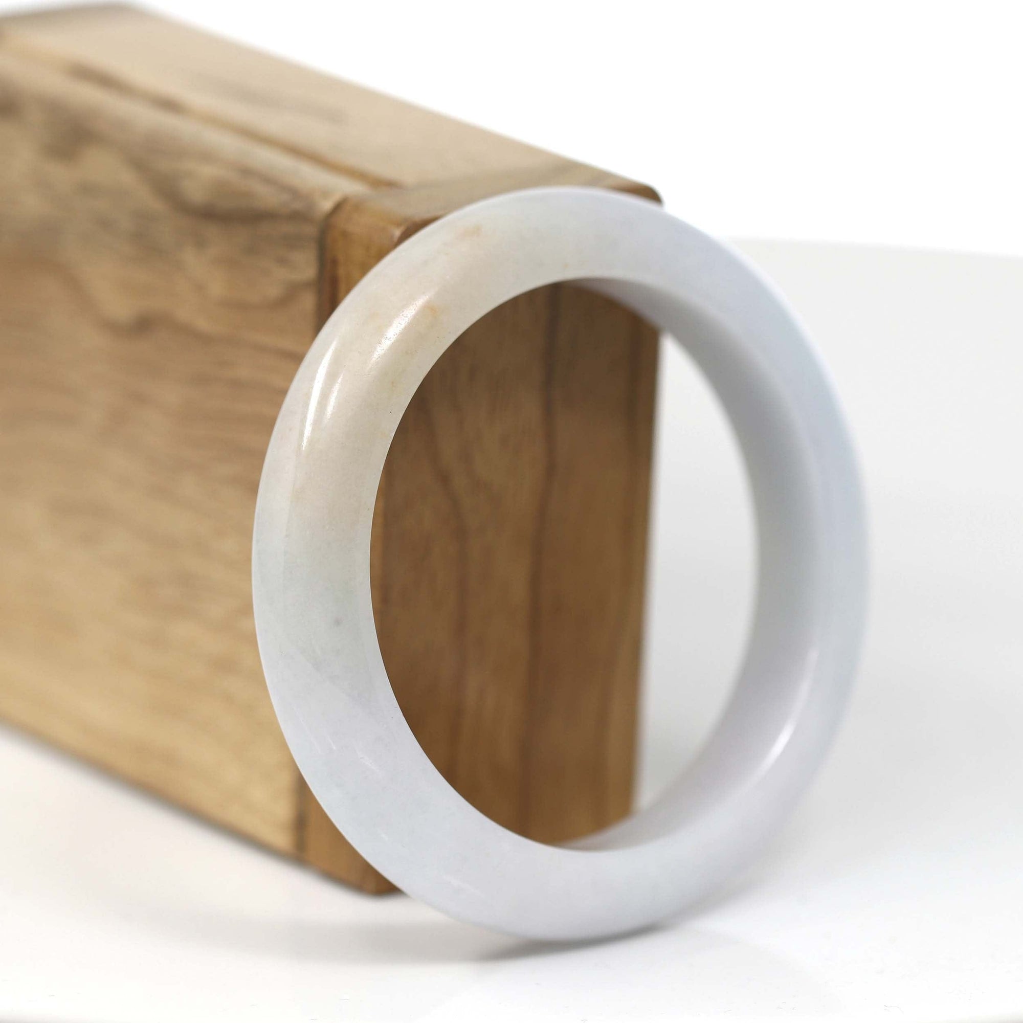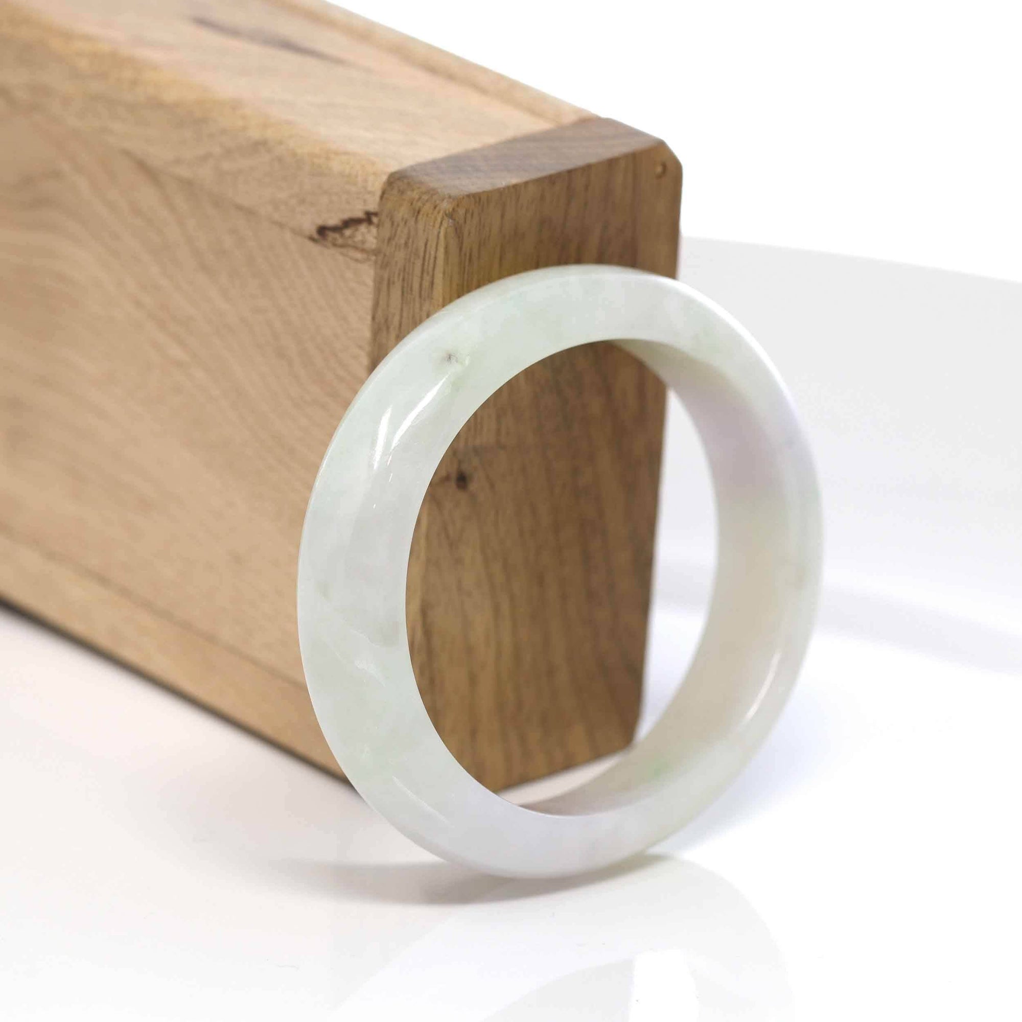 Baikalla™ "Classic" Genuine Jadeite Jade White-Green Bangle Bracelet (56.55mm) #T234