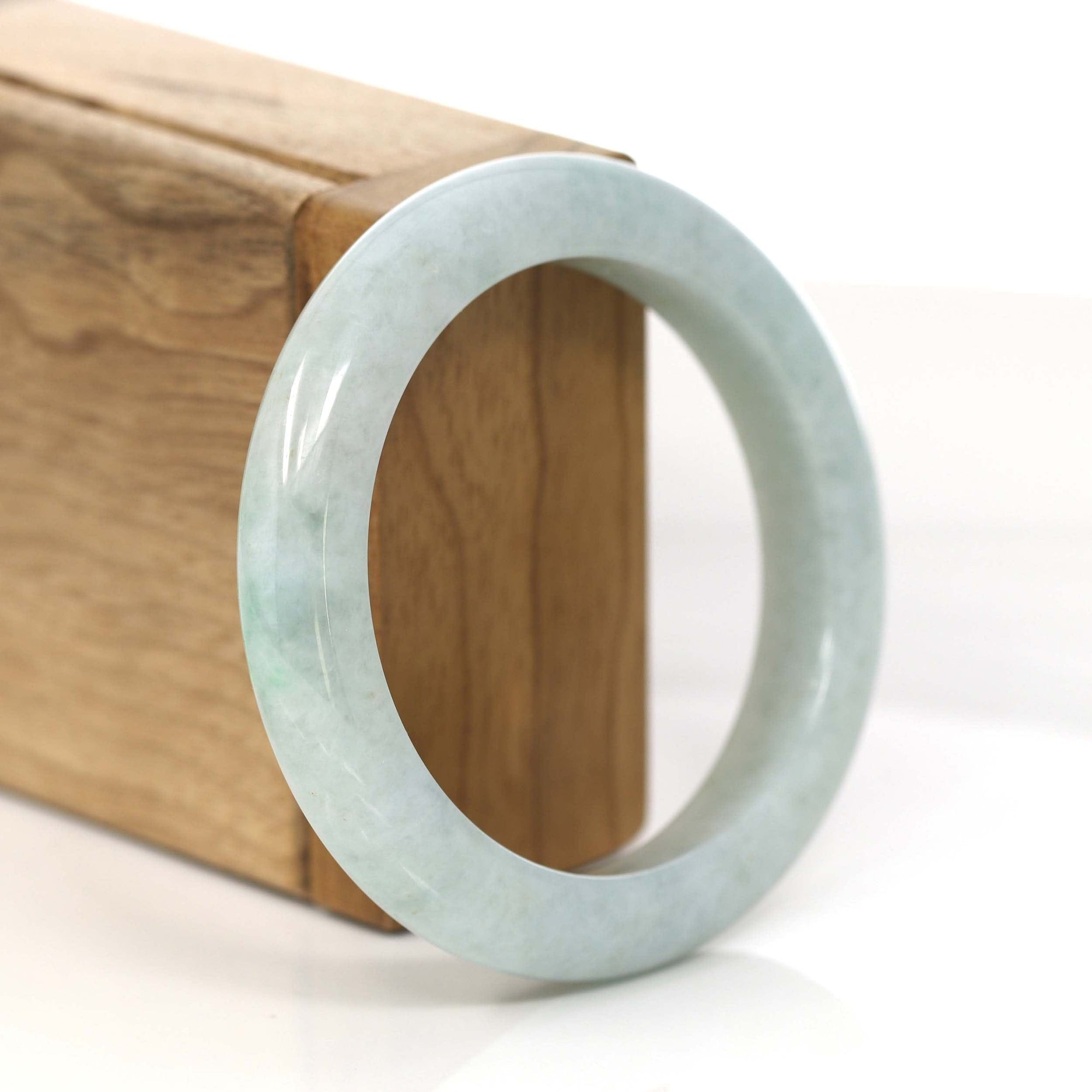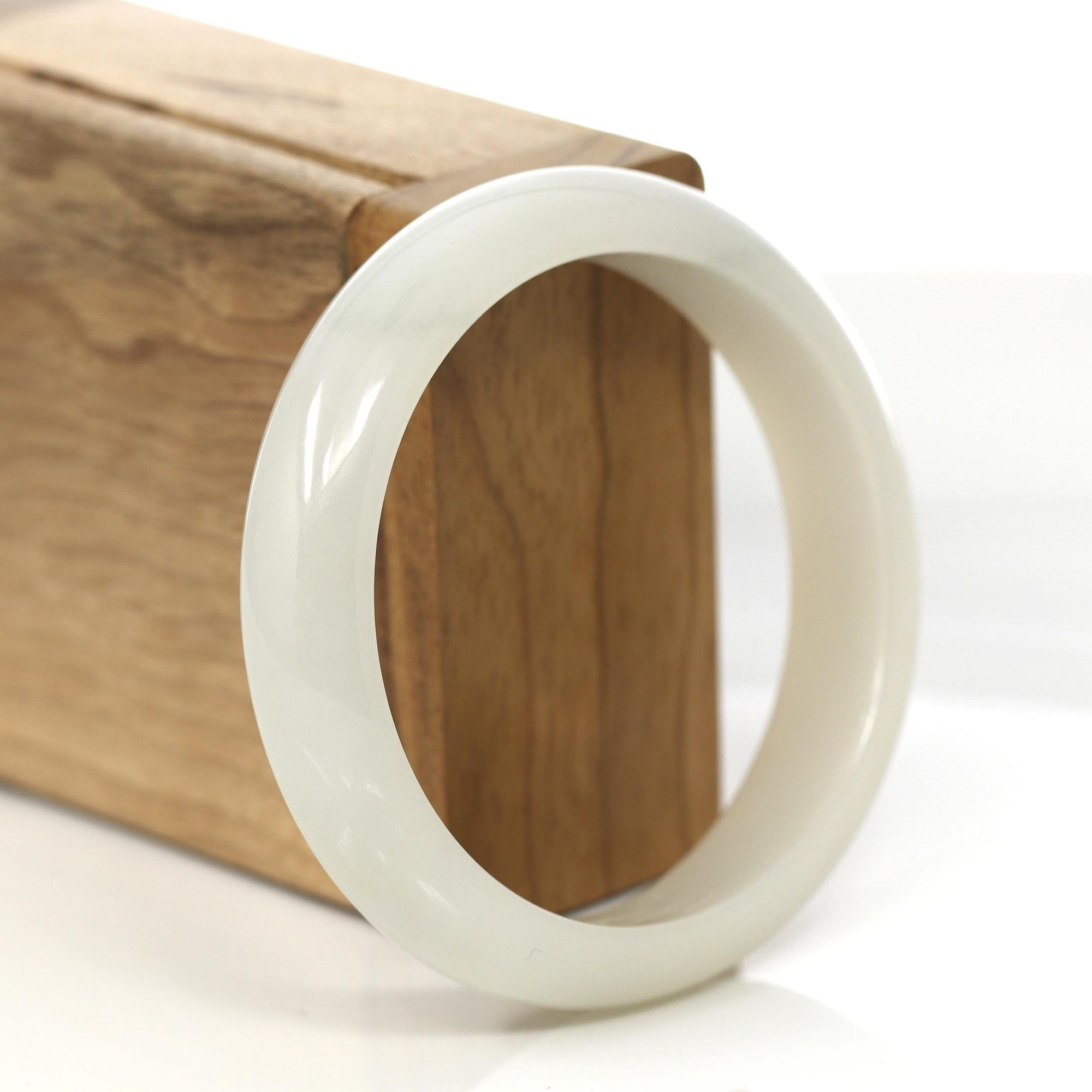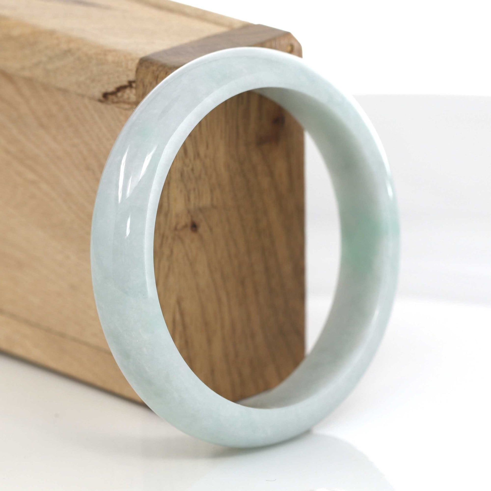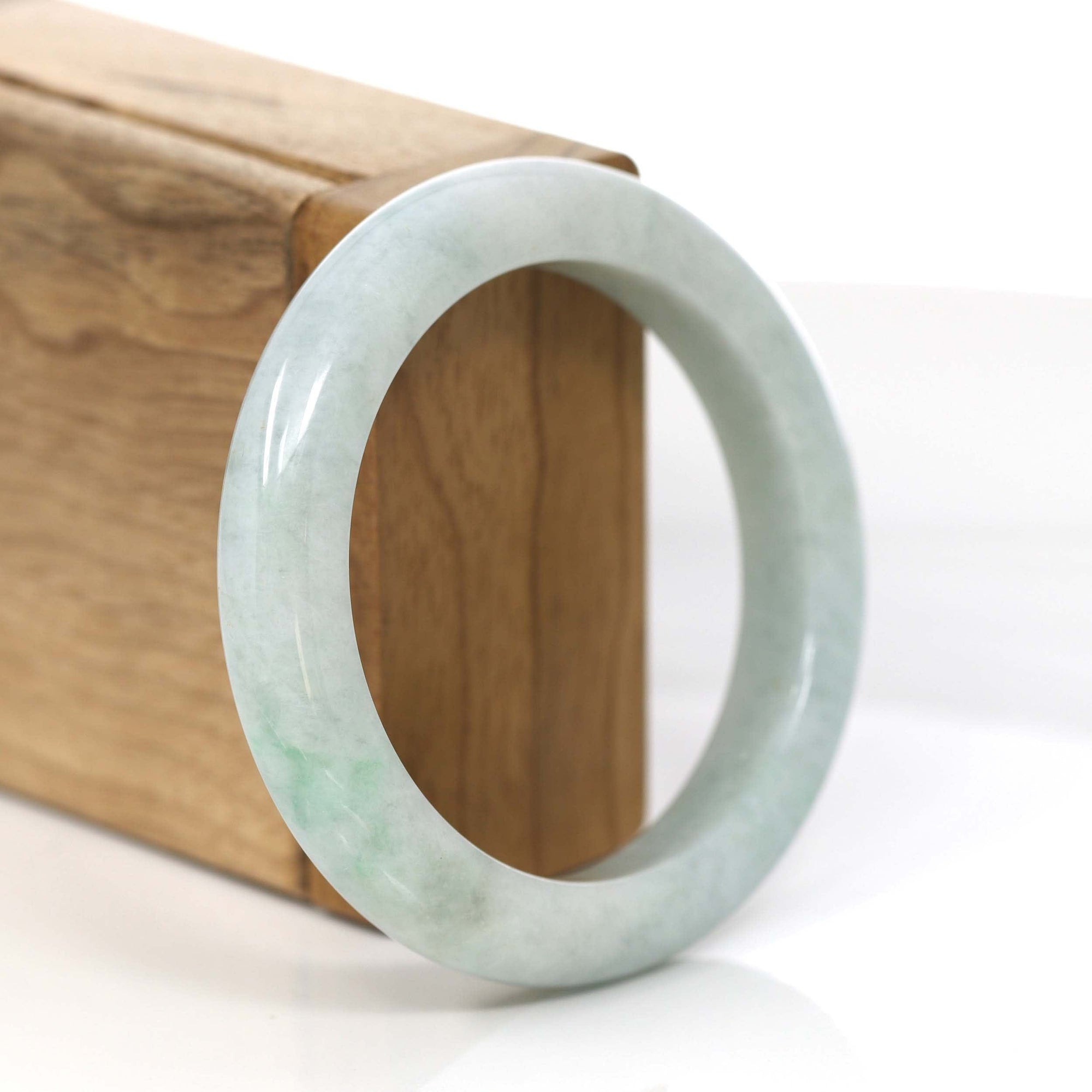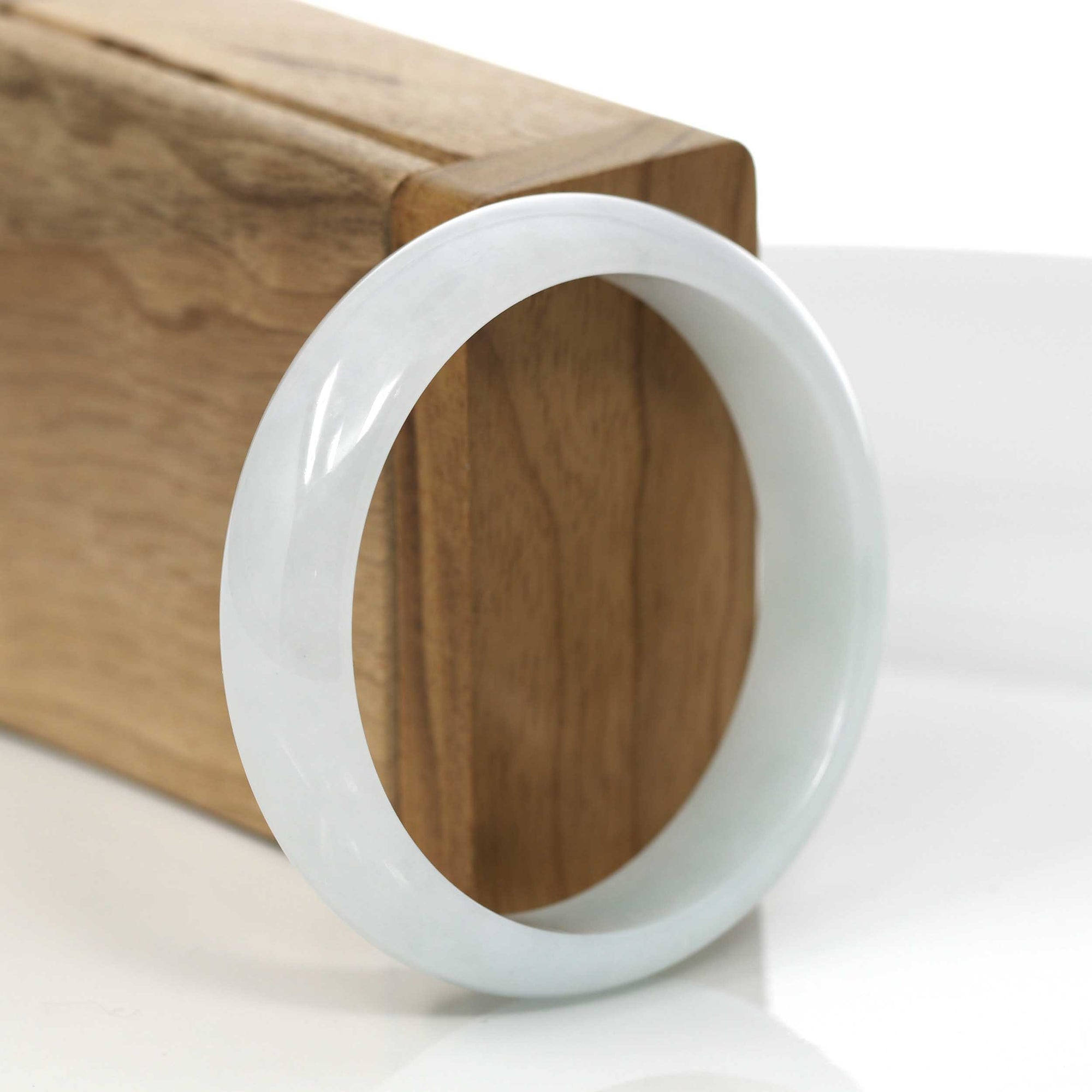 Baikalla™ "Classic" Genuine Jadeite Jade White-Green Bangle Bracelet (56.55mm) #T234