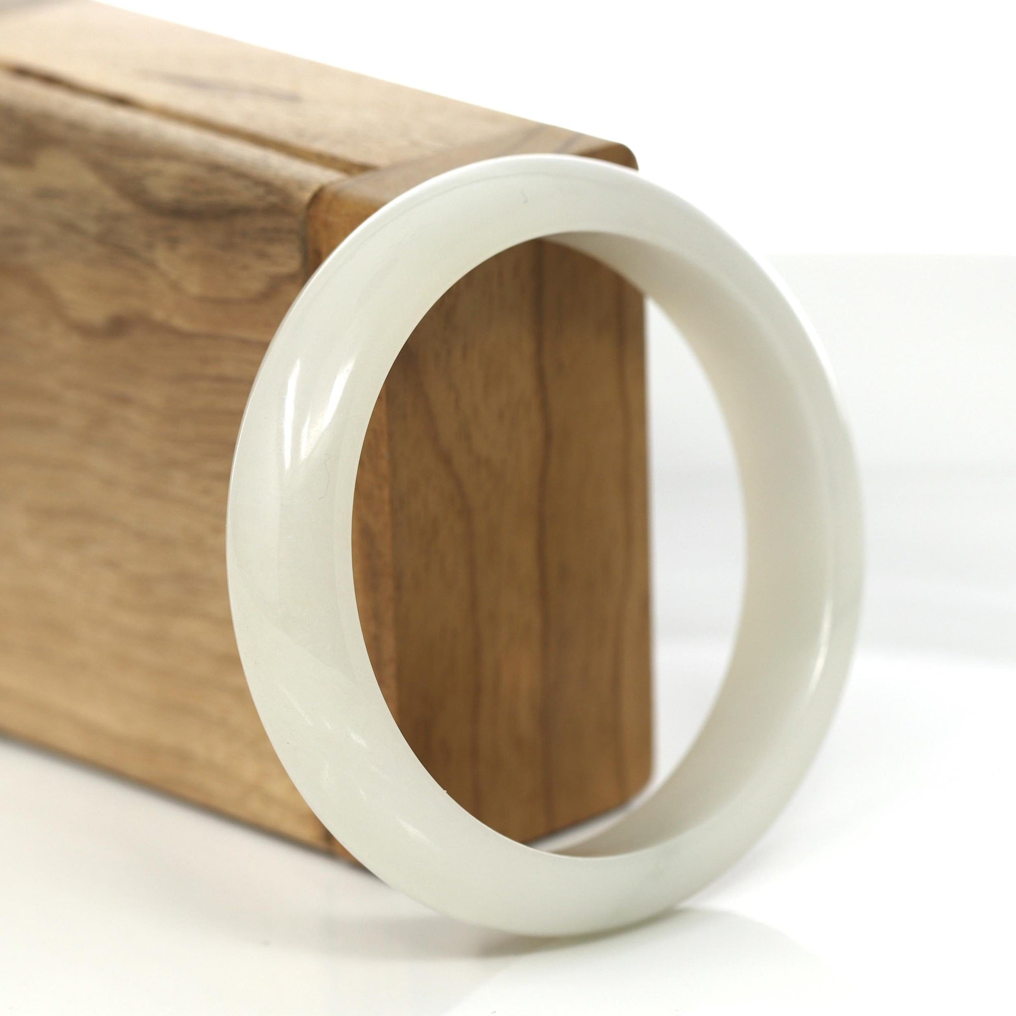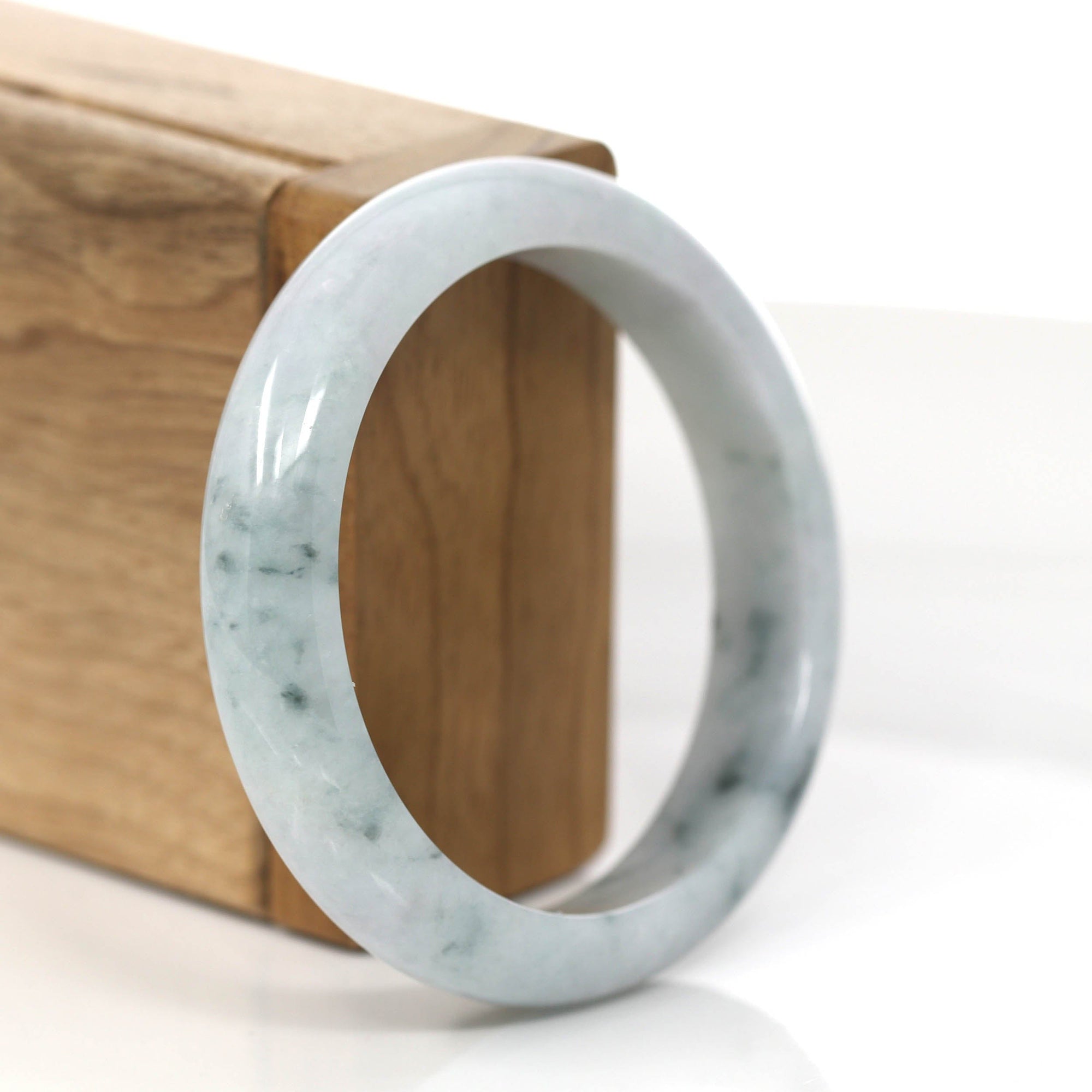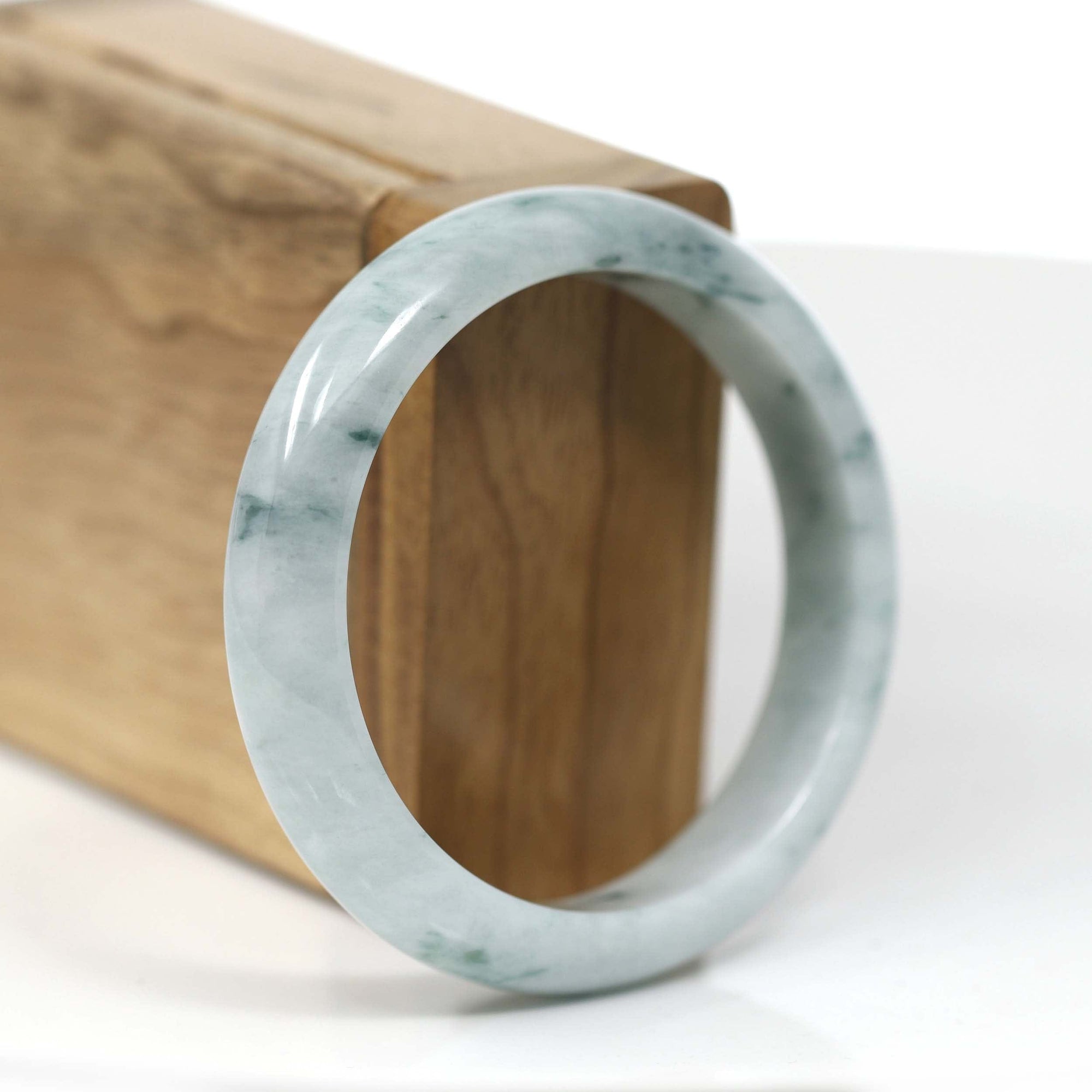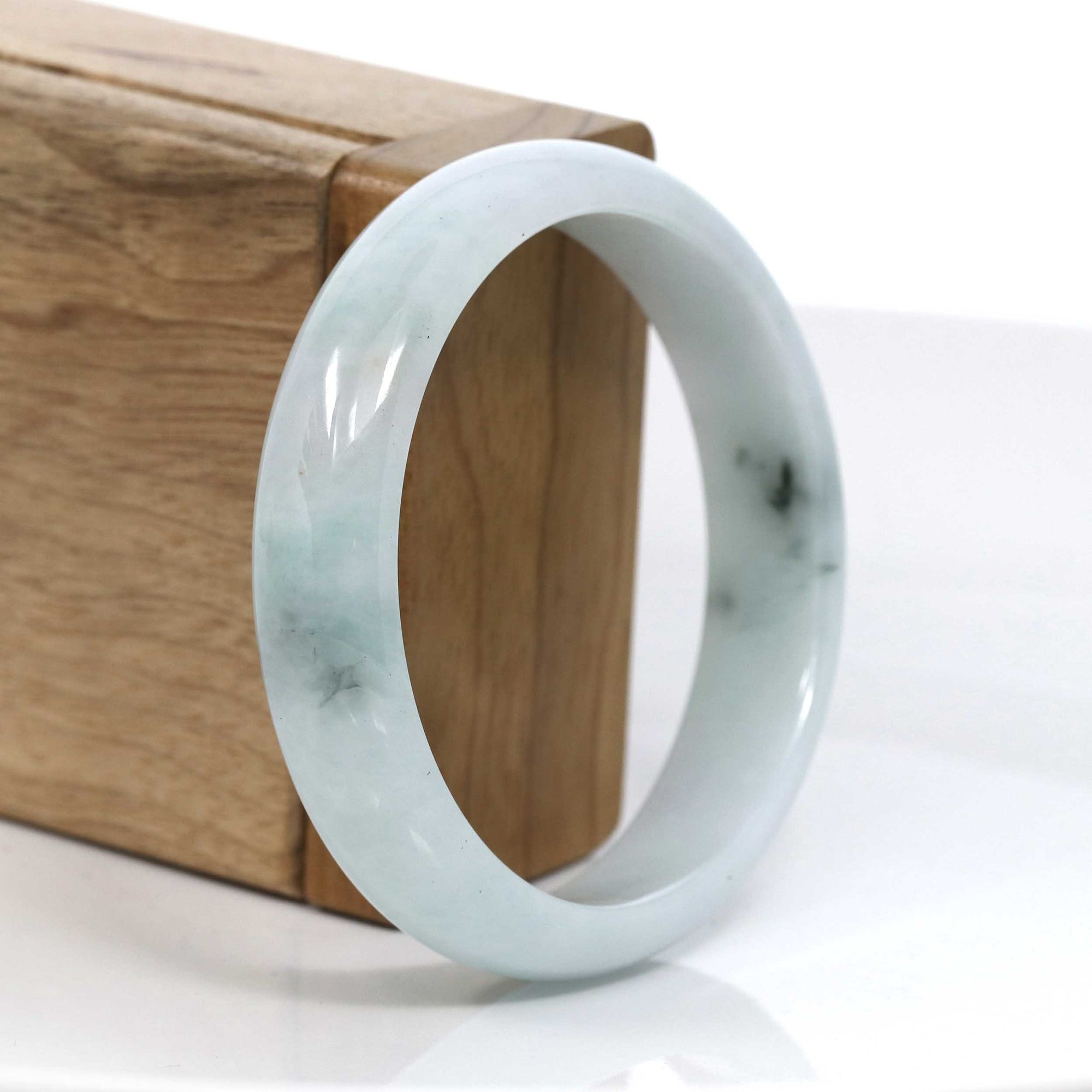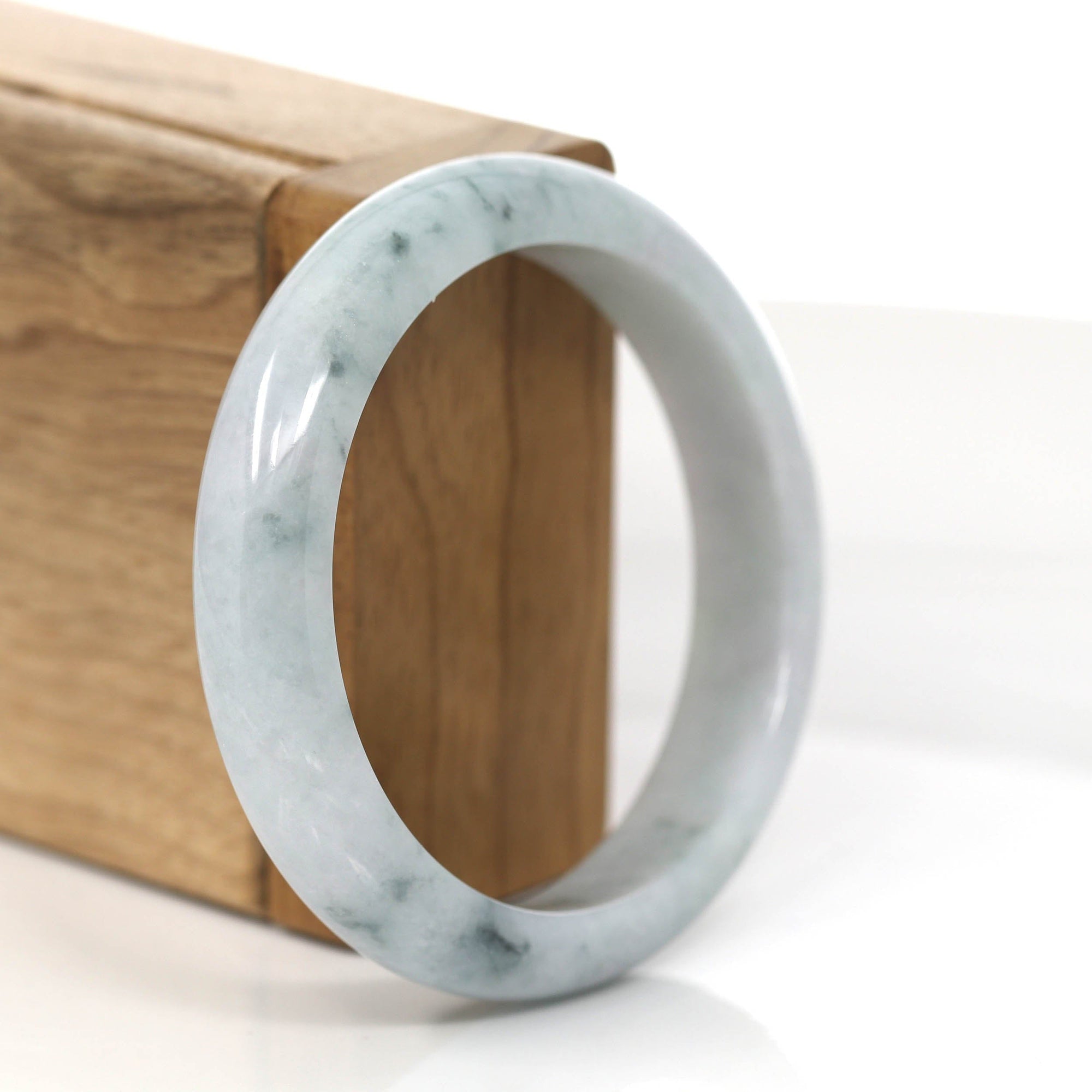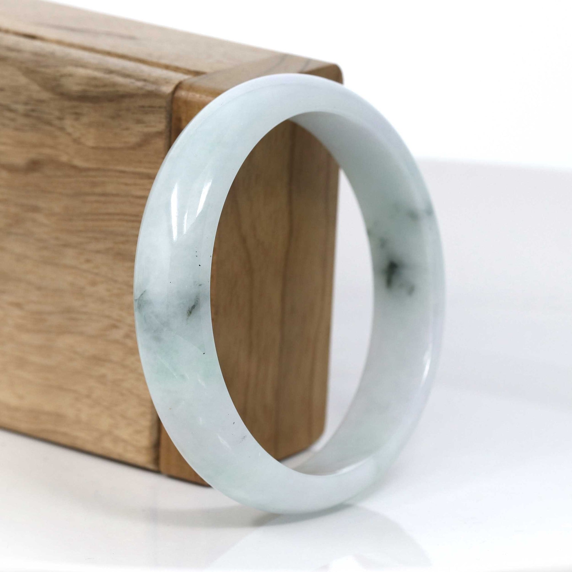 Baikalla™ "Classic" Genuine Jadeite Jade White-Green Bangle Bracelet (56.55mm) #T234