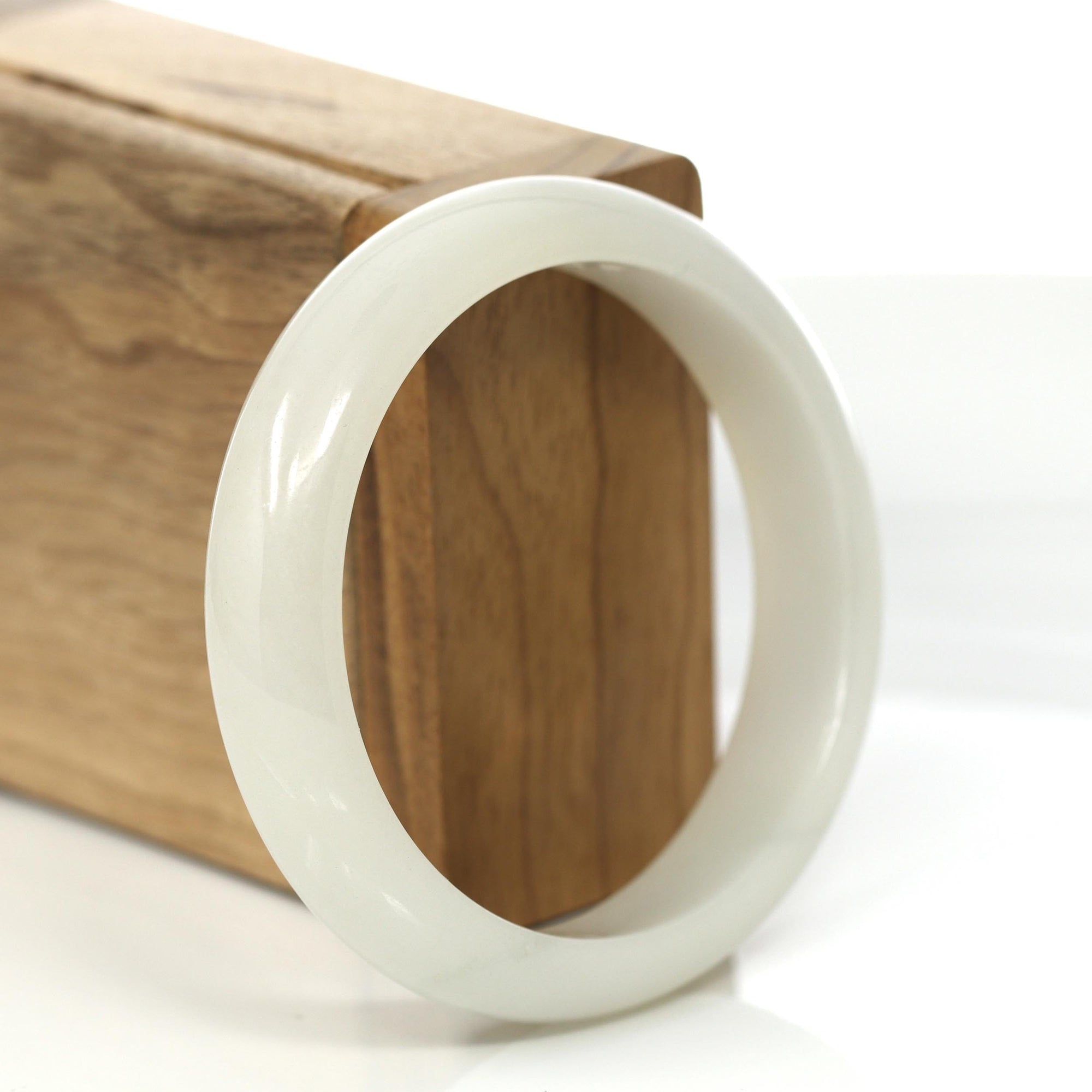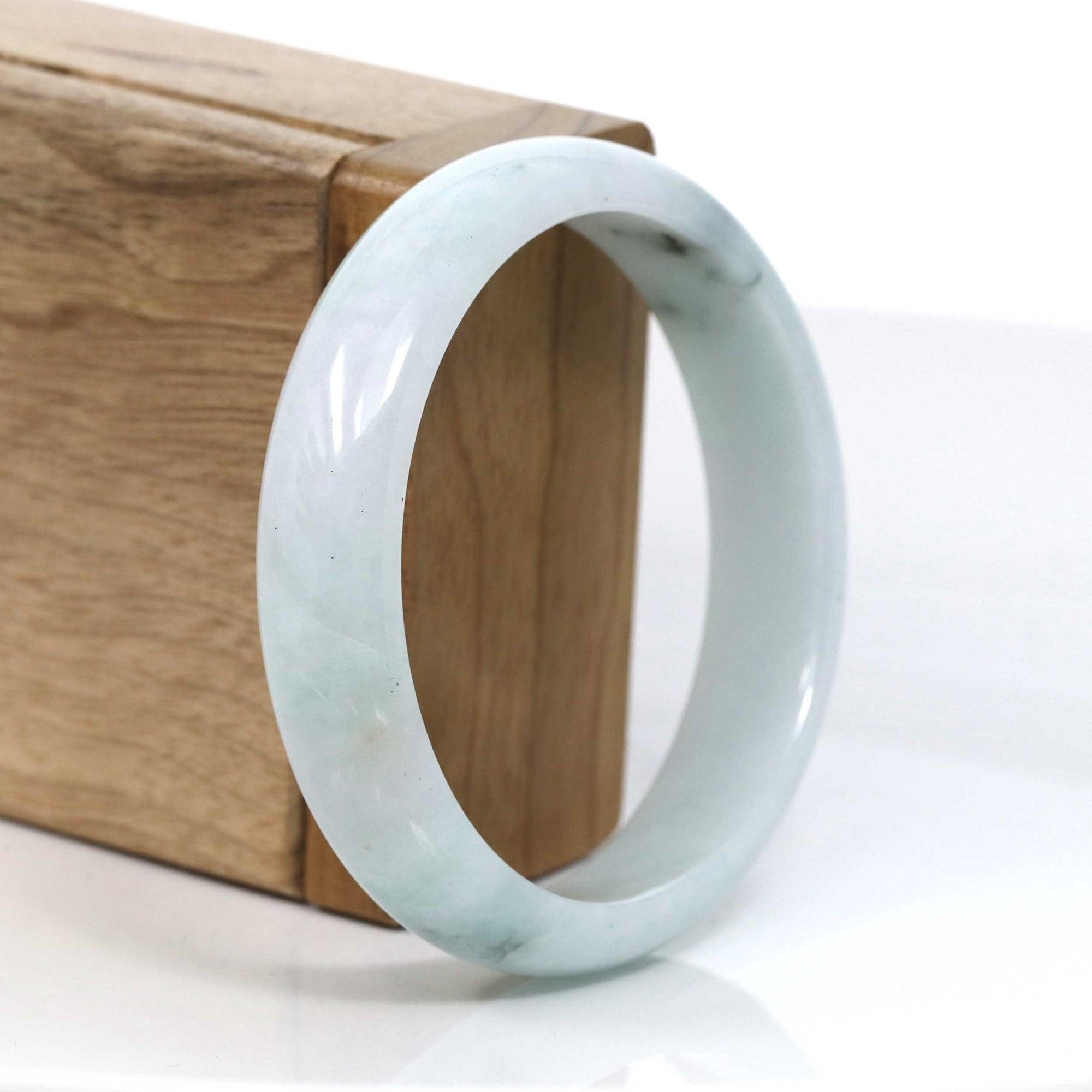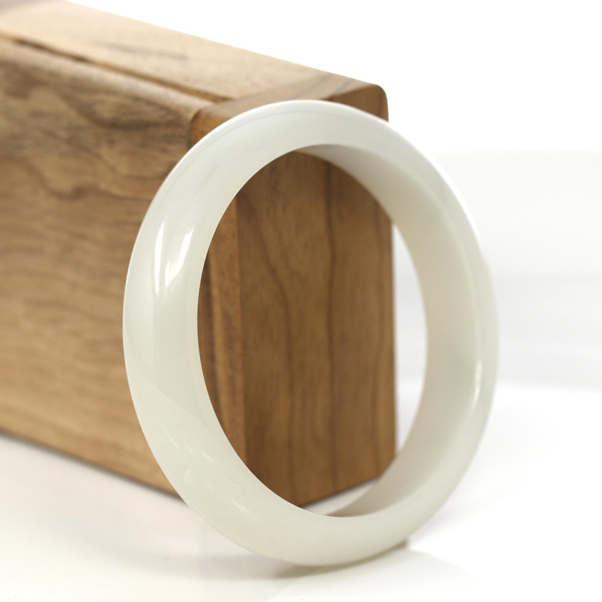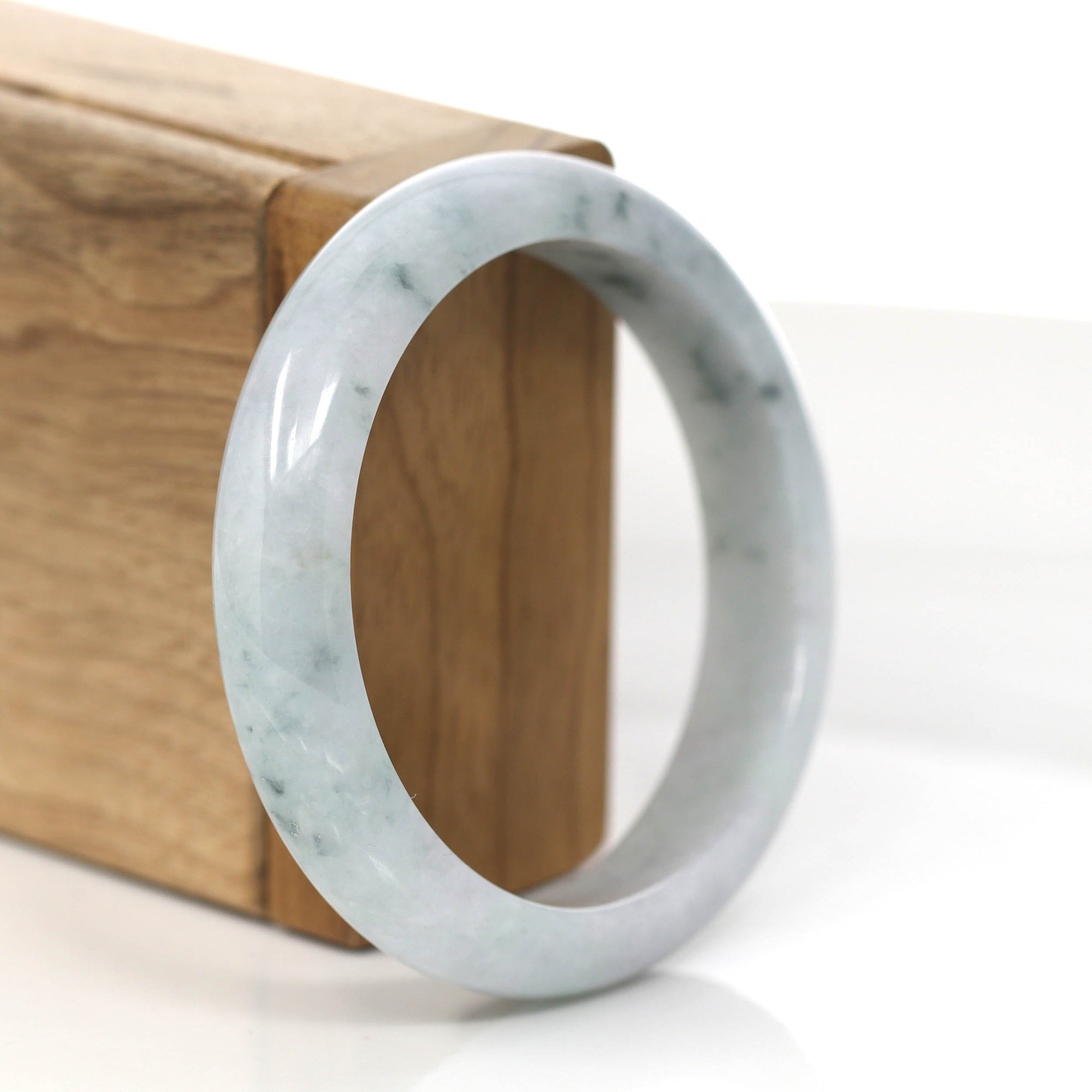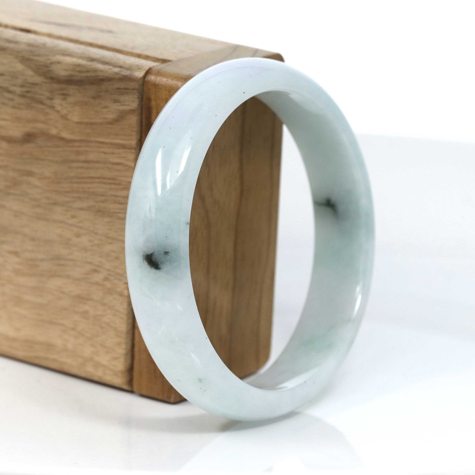 Baikalla™ "Classic" Genuine Jadeite Jade White-Green Bangle Bracelet (56.55mm) #T234