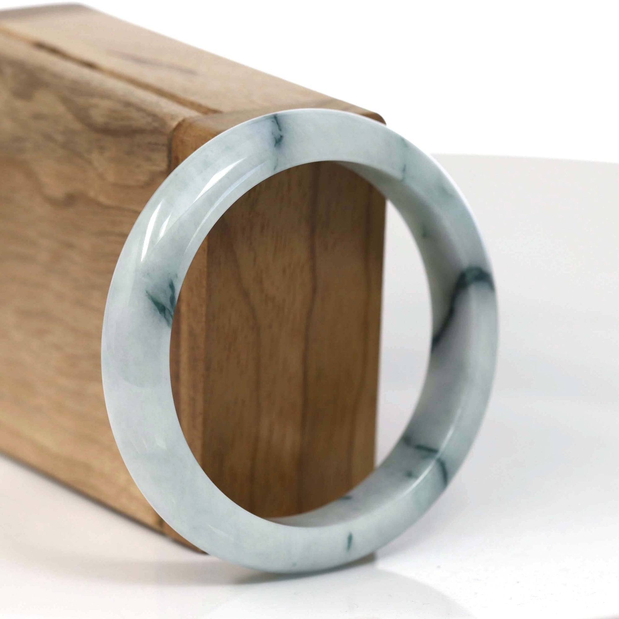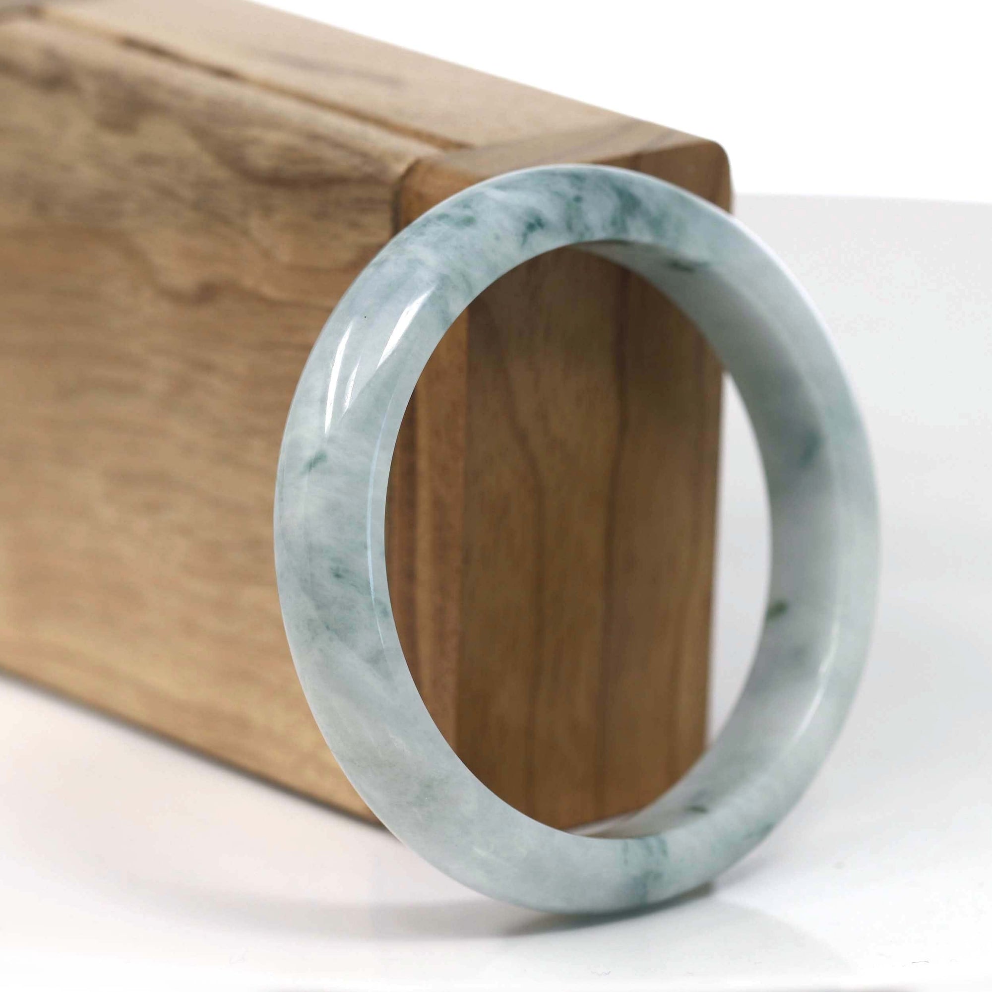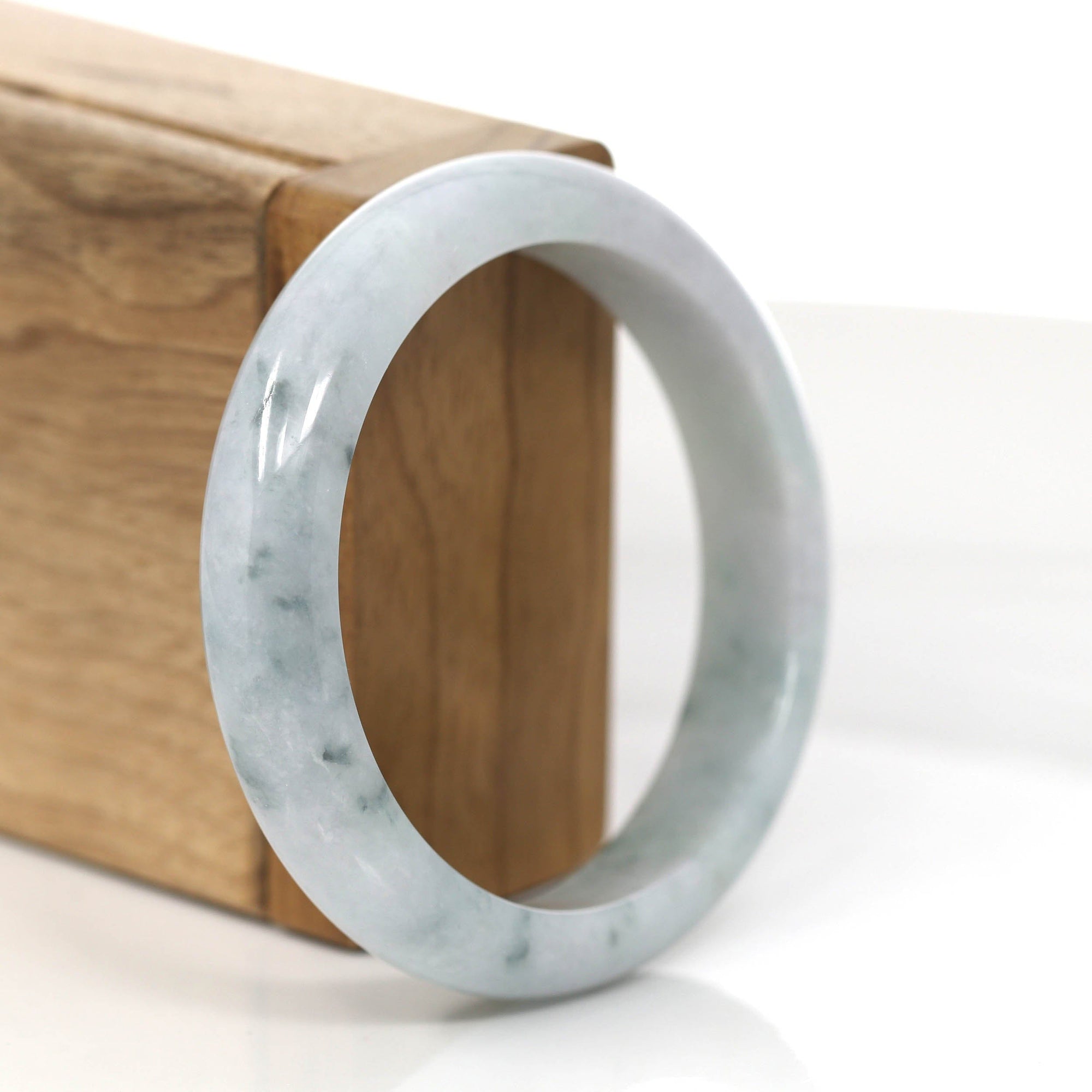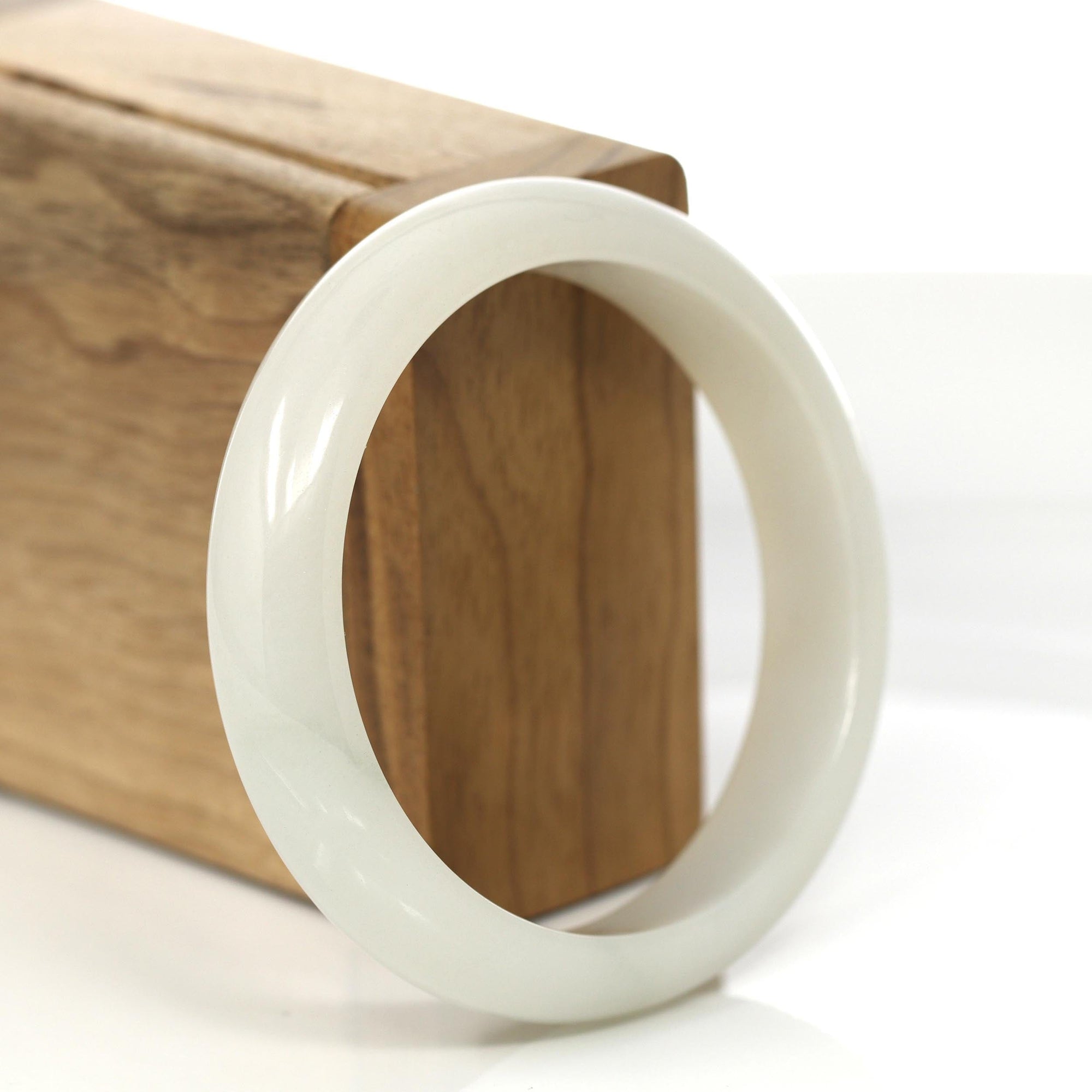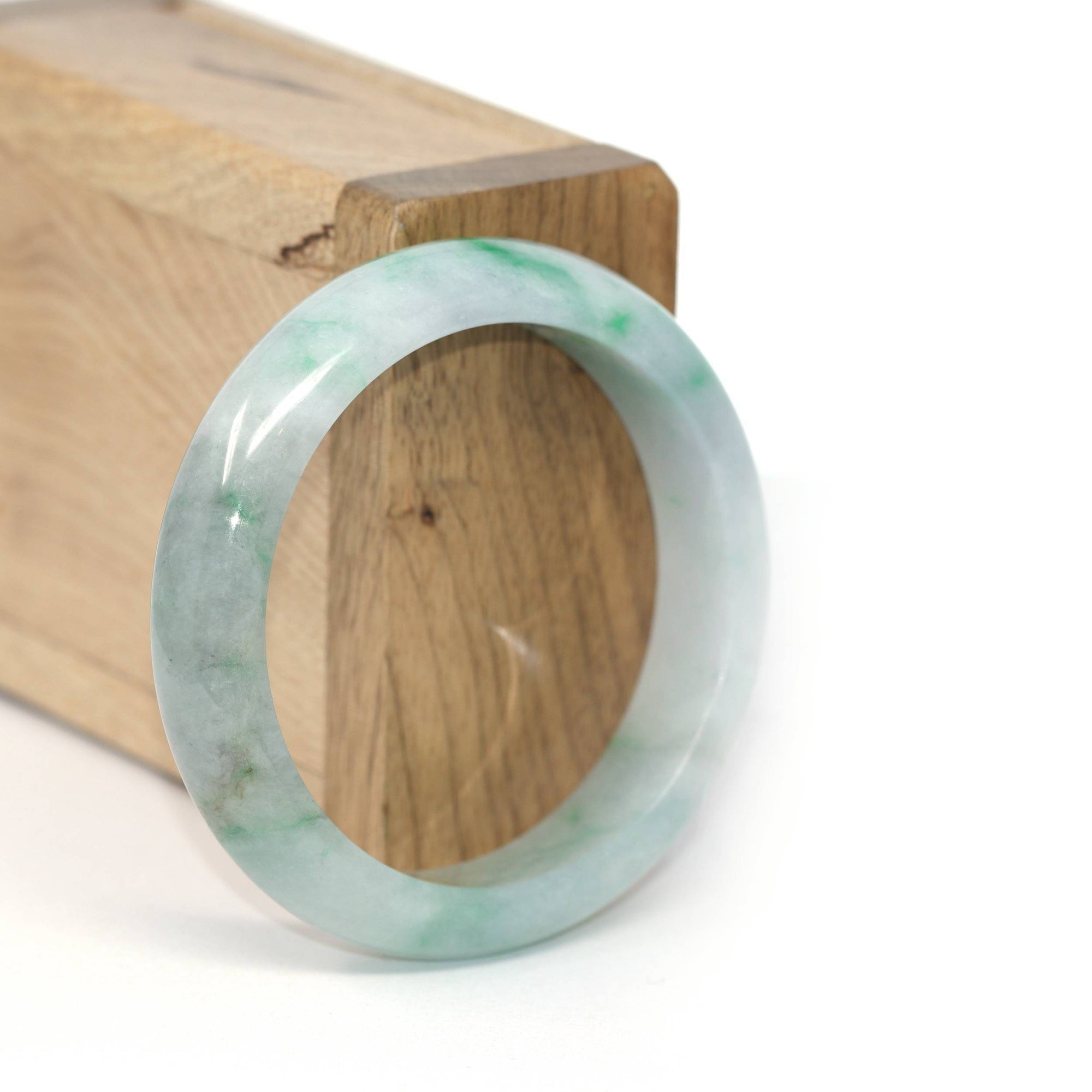 Baikalla™ "Classic" Genuine Jadeite Jade White-Green Bangle Bracelet (56.55mm) #T234