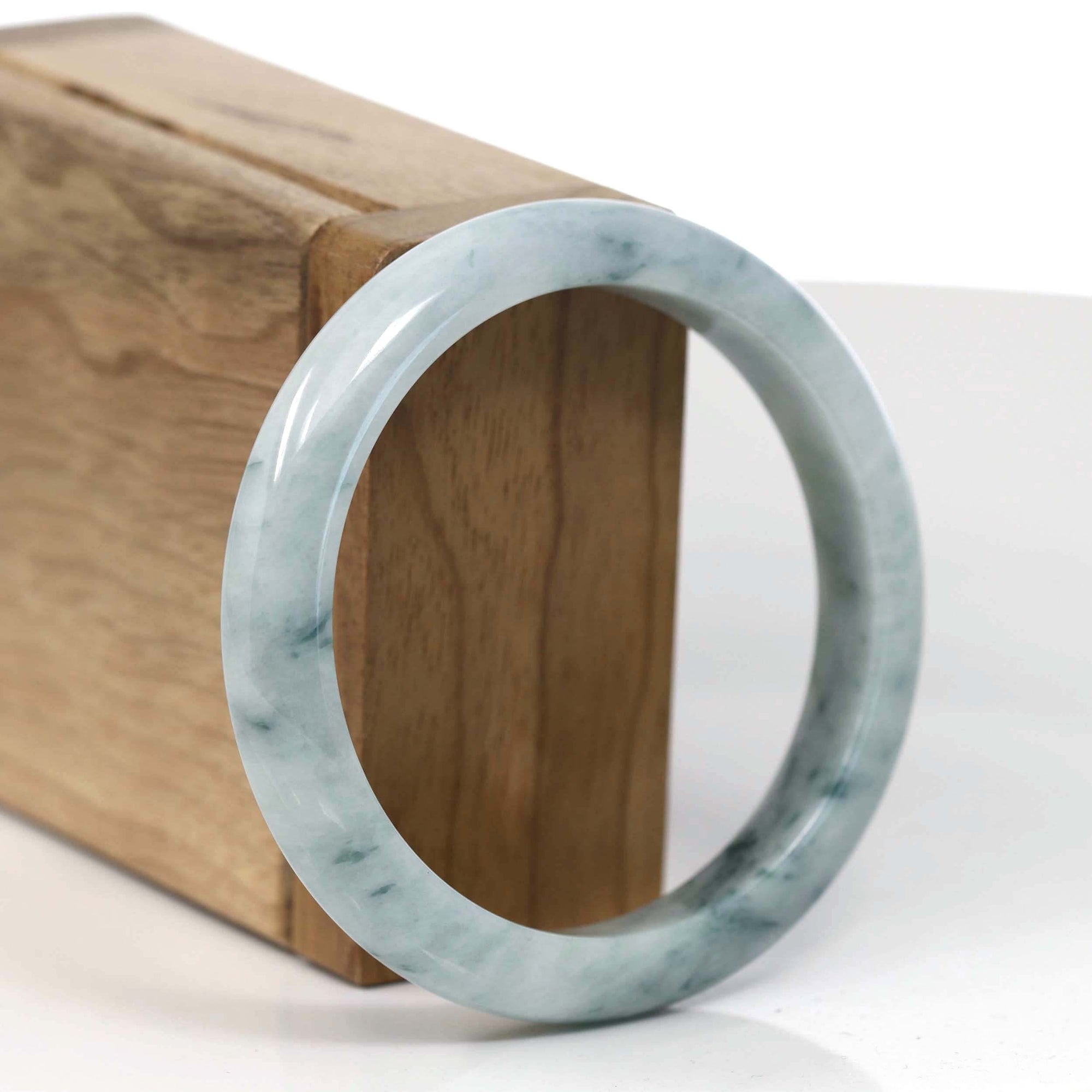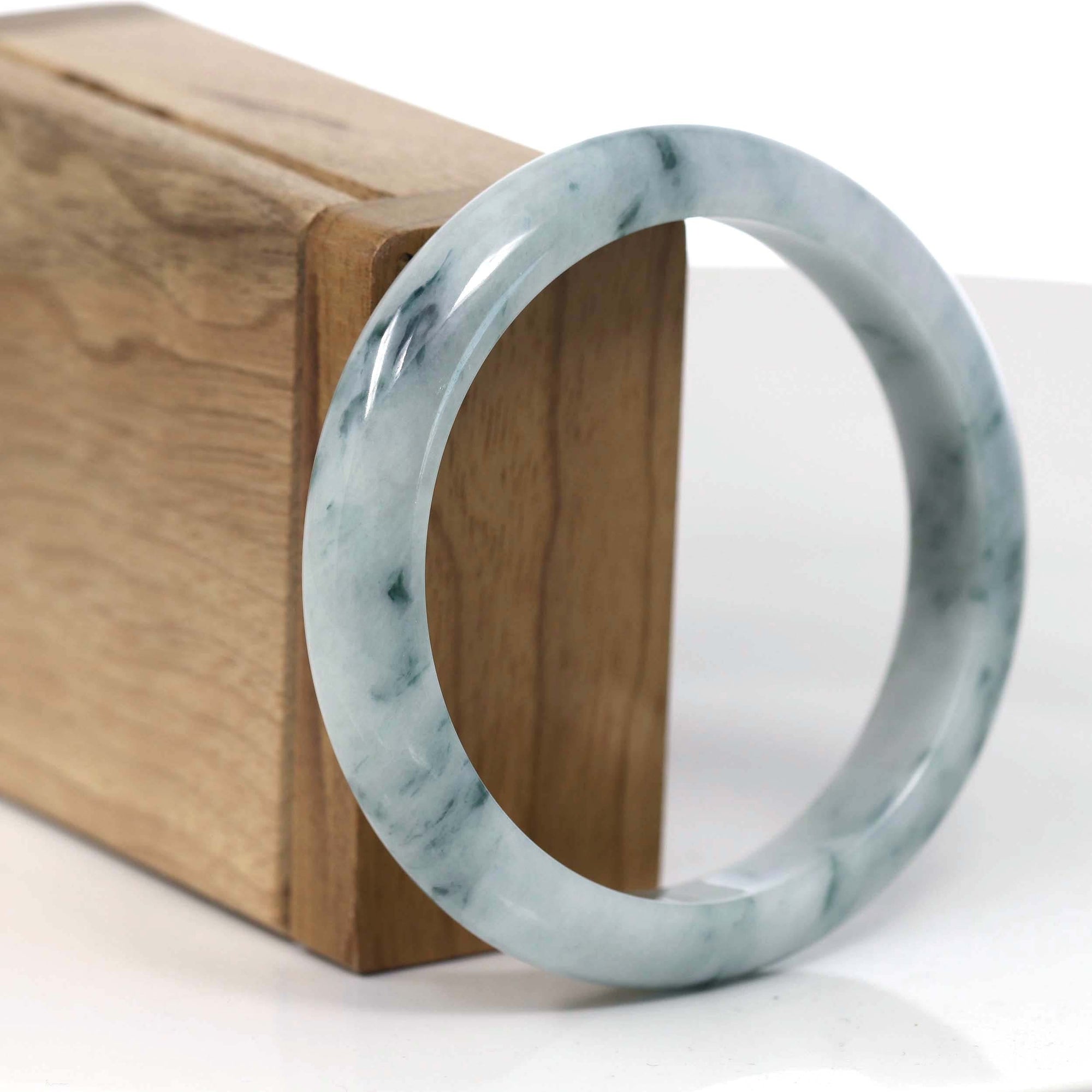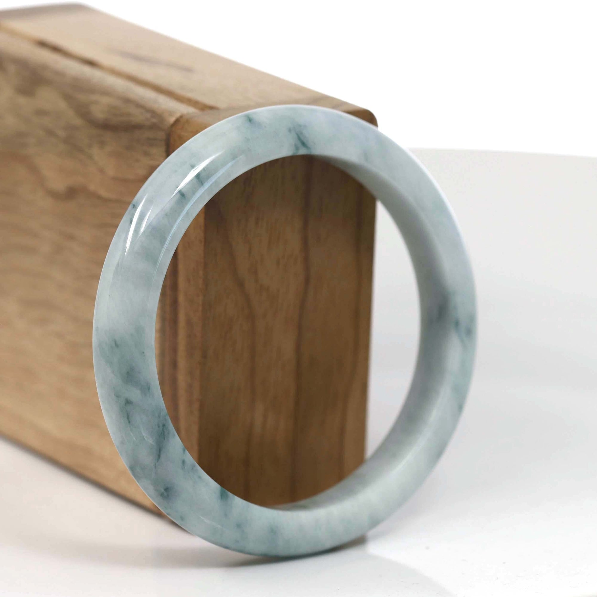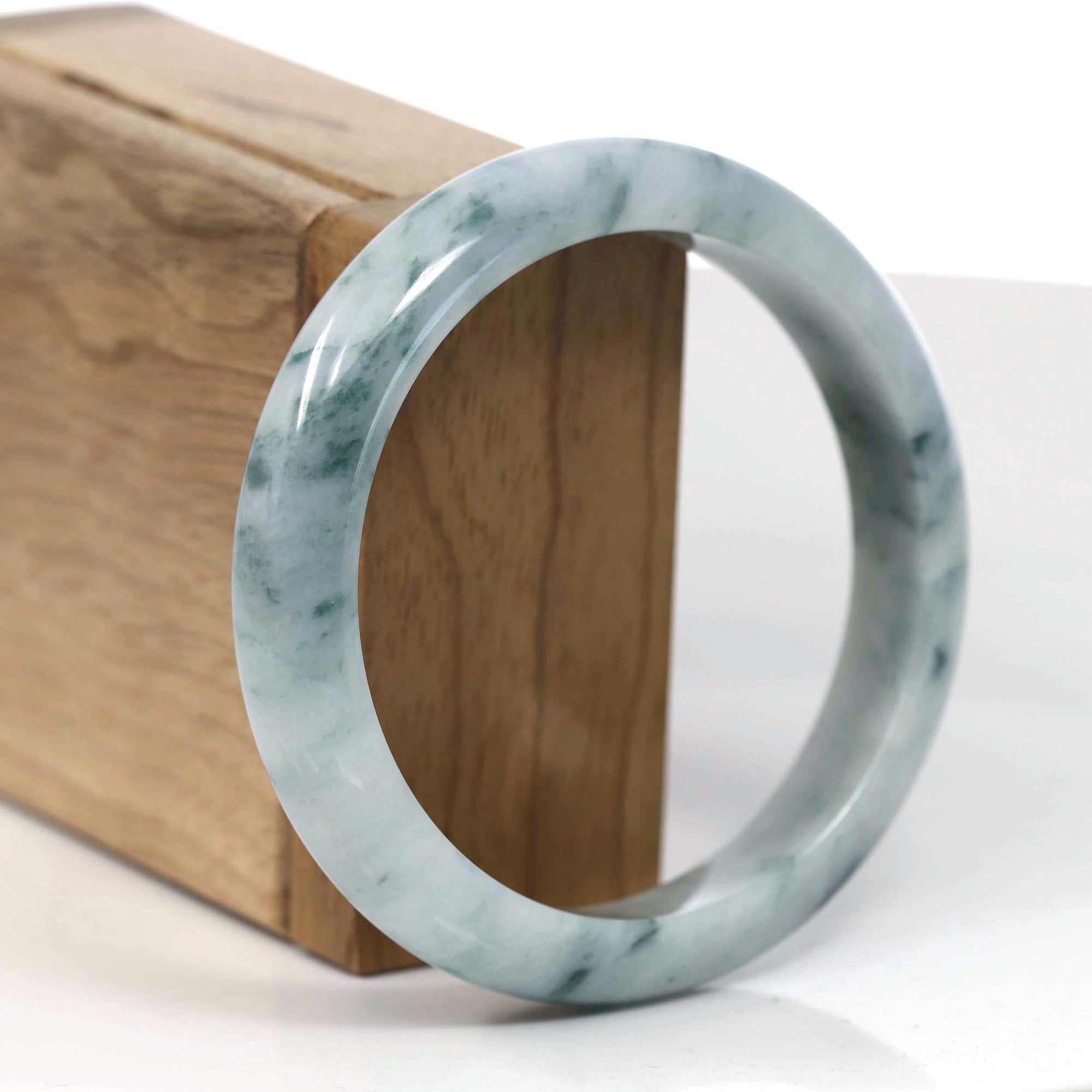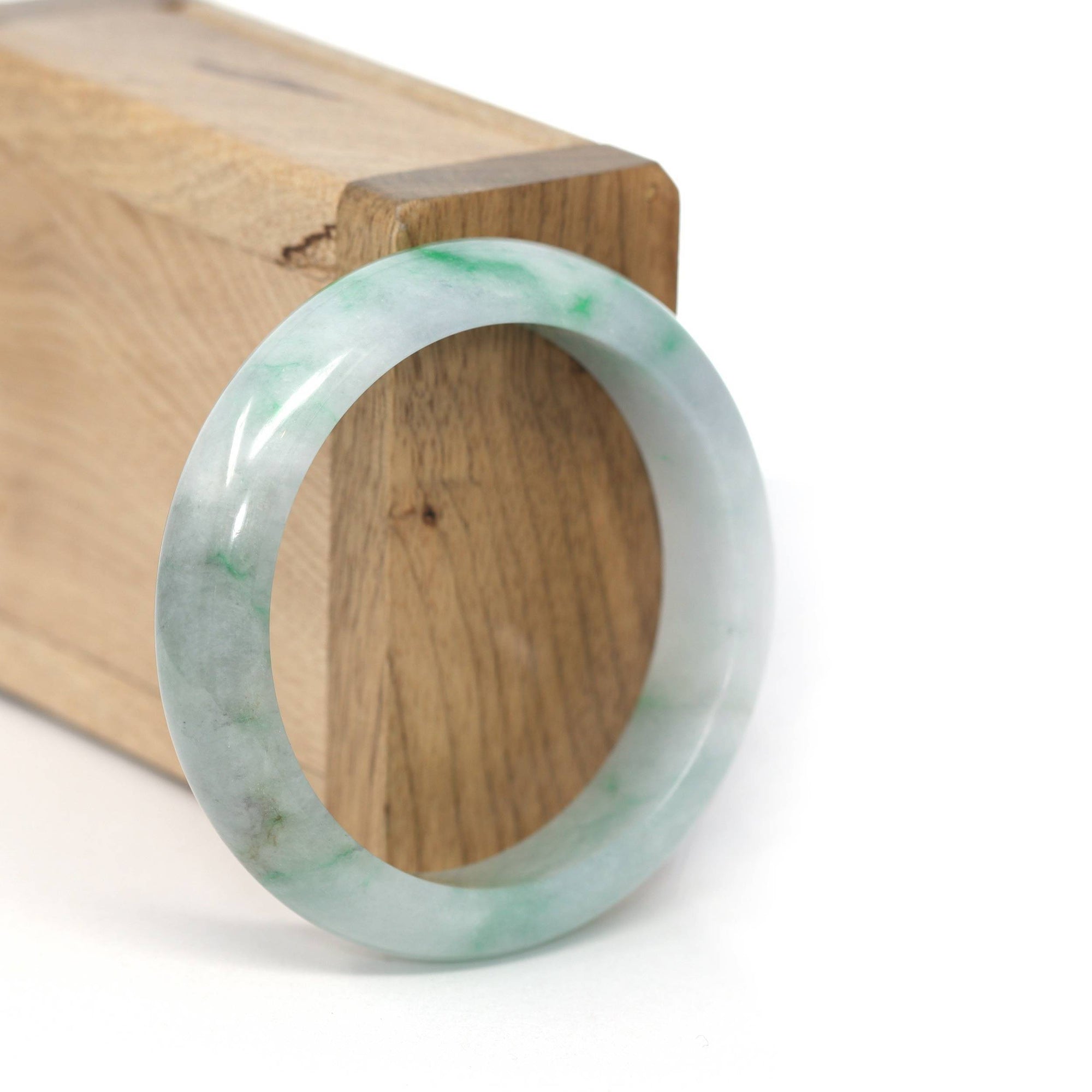 Baikalla™ "Classic" Genuine Jadeite Jade White-Green Bangle Bracelet (56.55mm) #T234