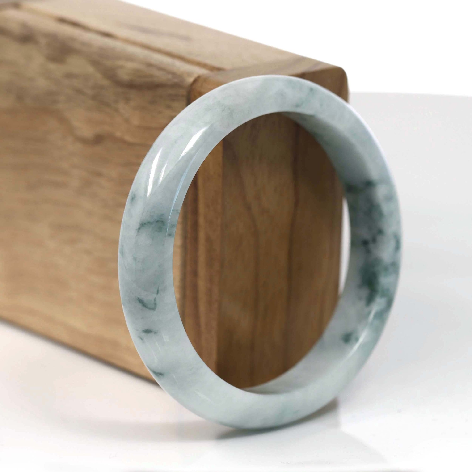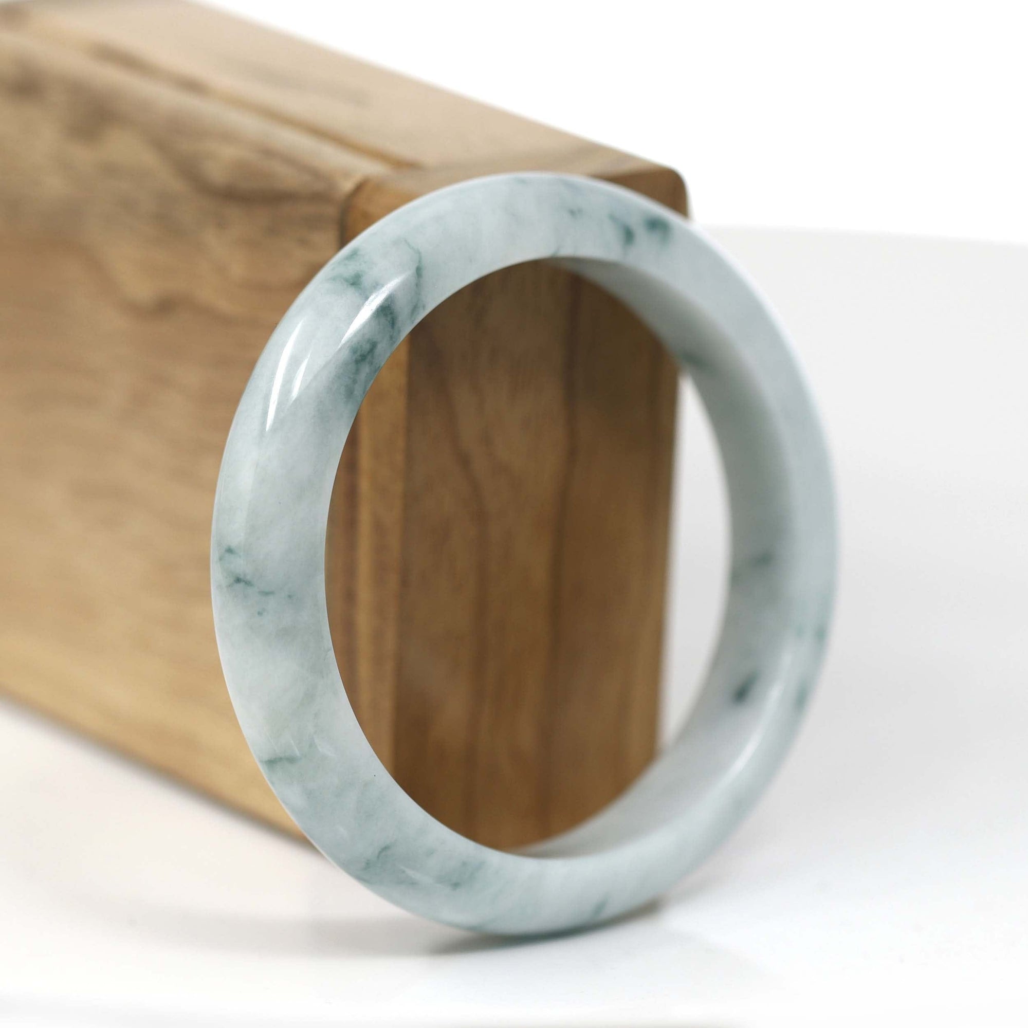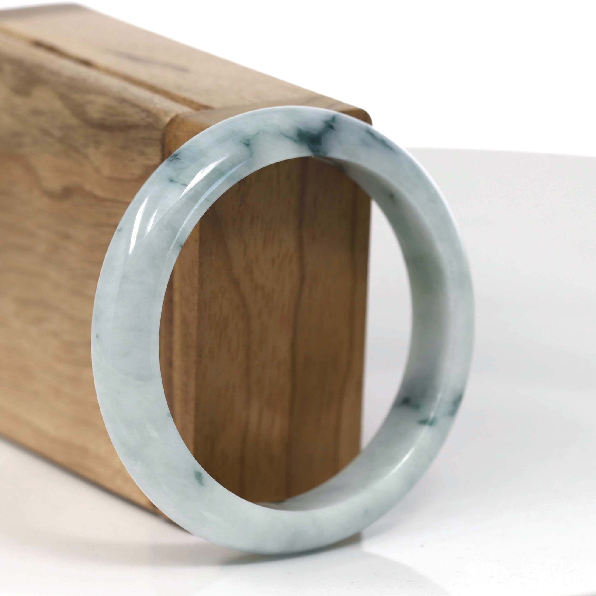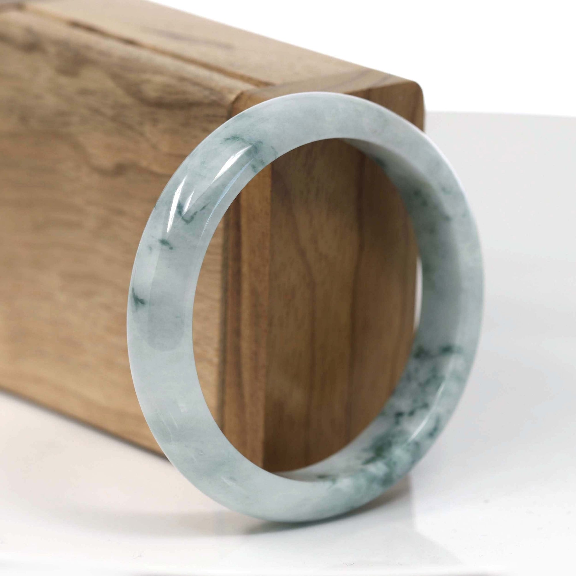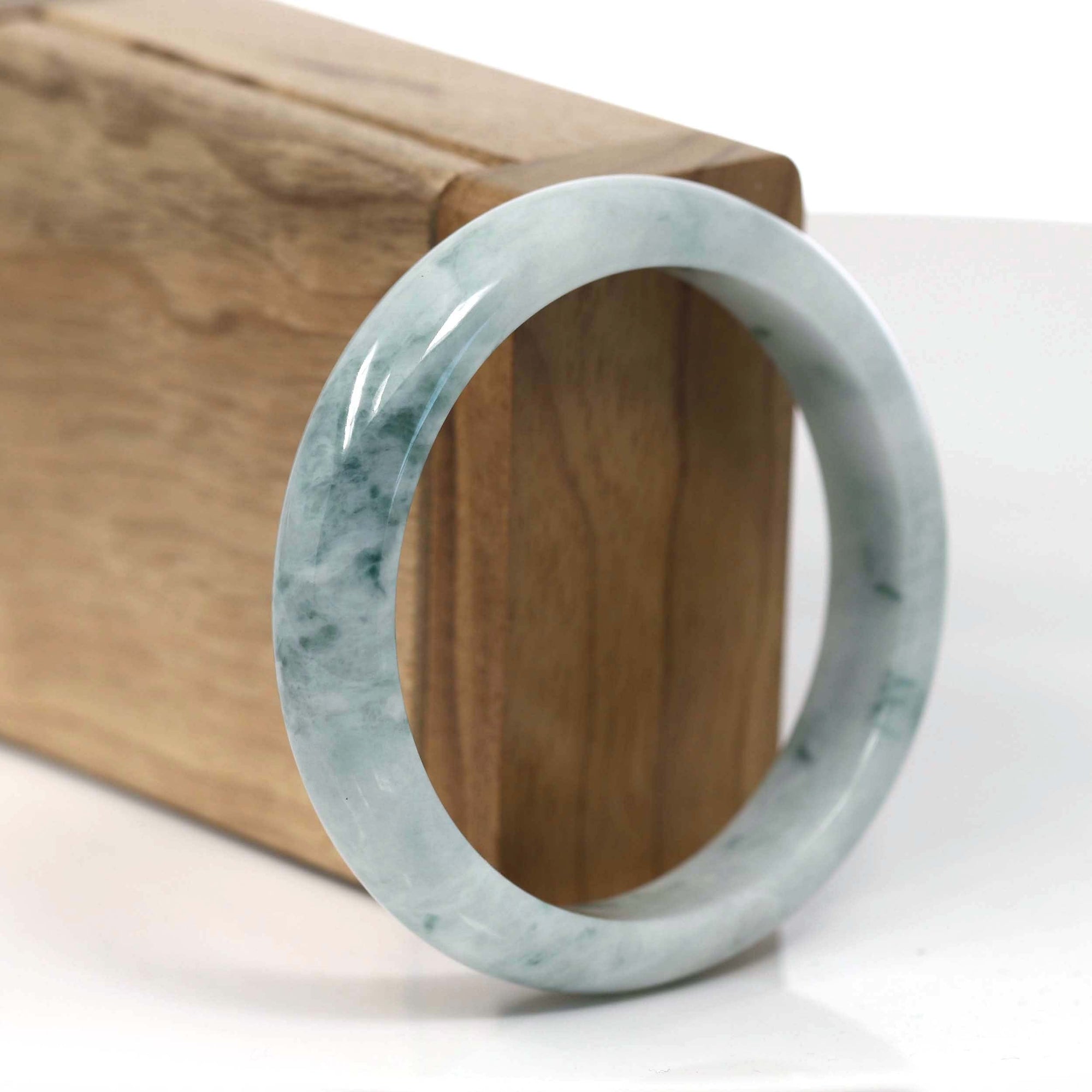 Baikalla™ "Classic" Genuine Jadeite Jade White-Green Bangle Bracelet (56.55mm) #T234