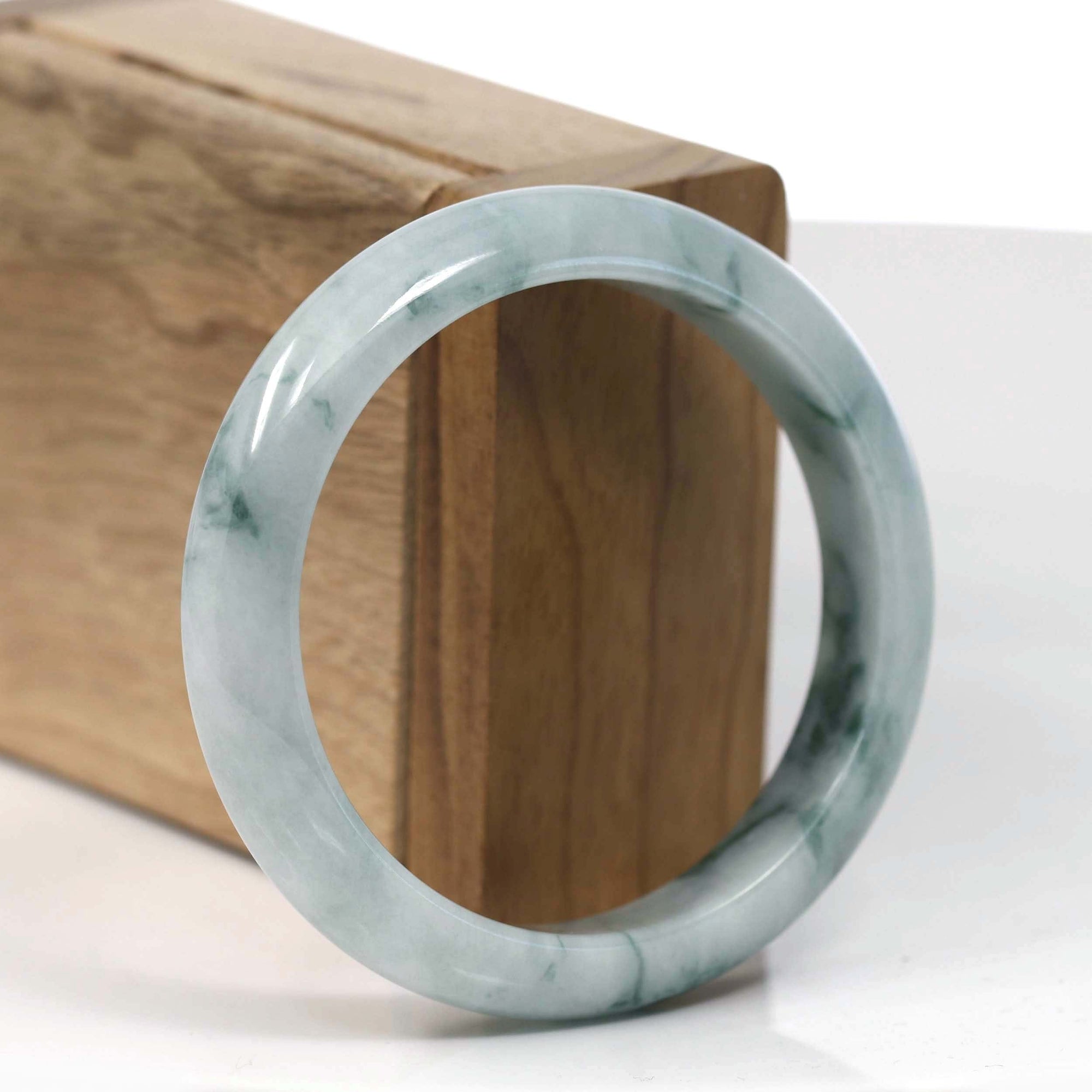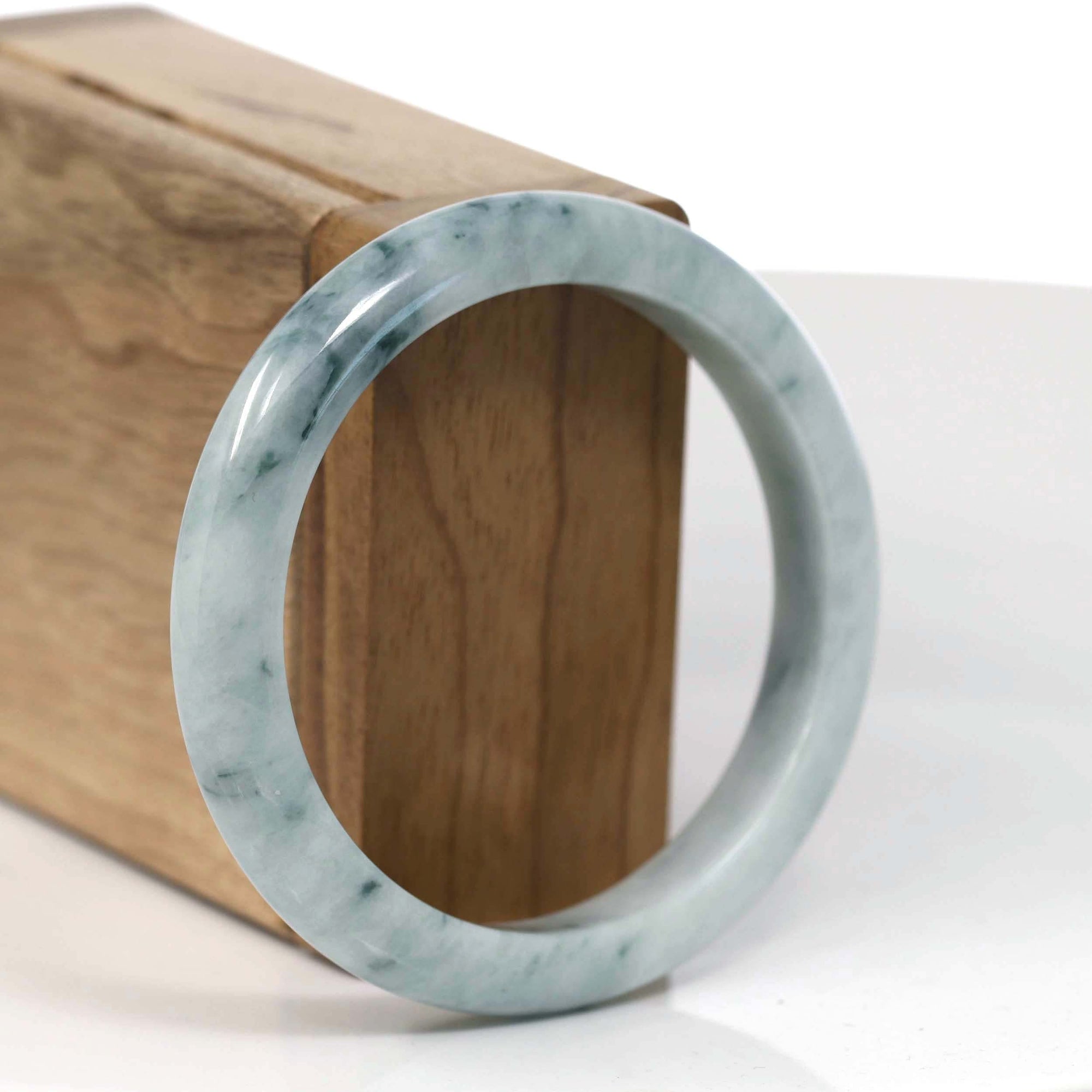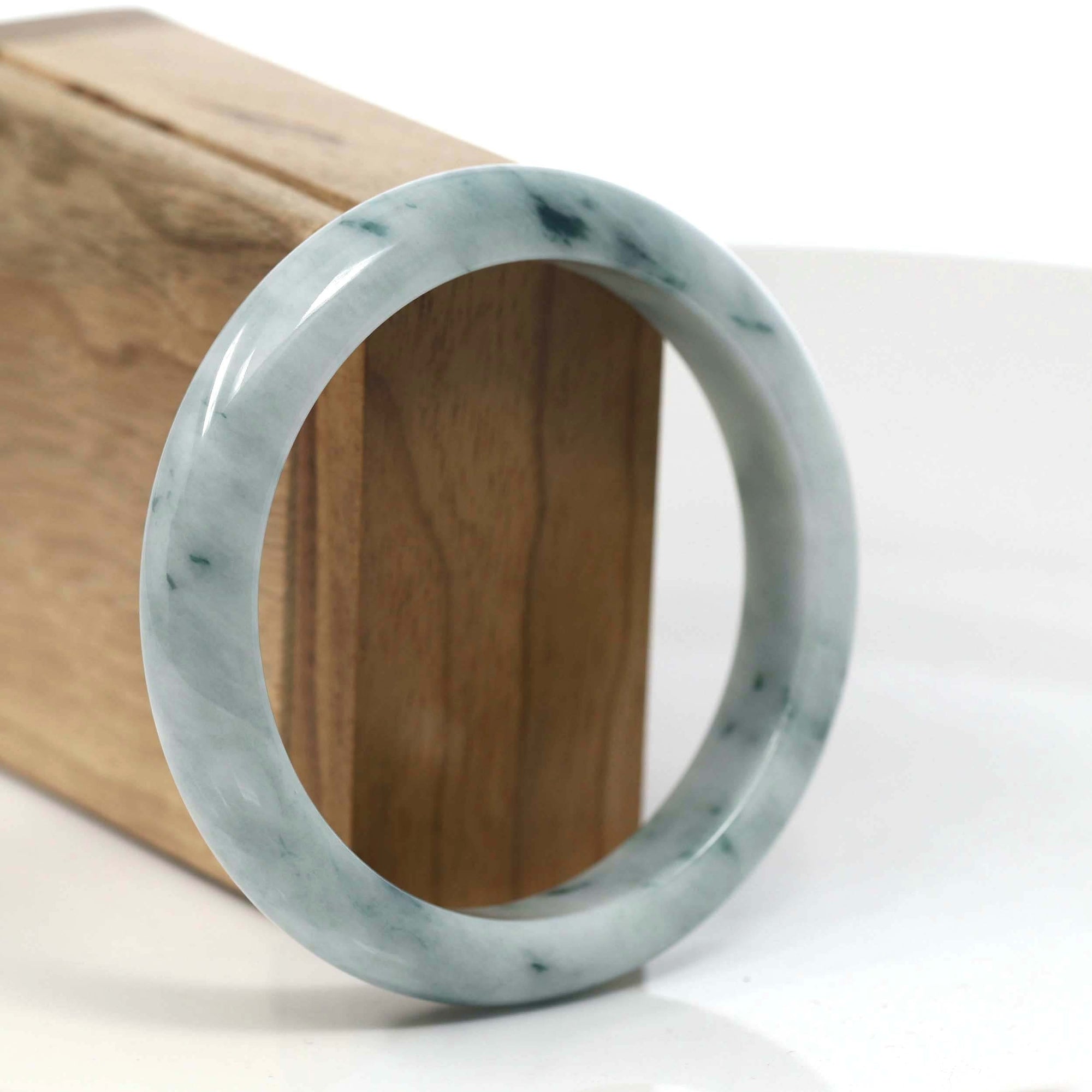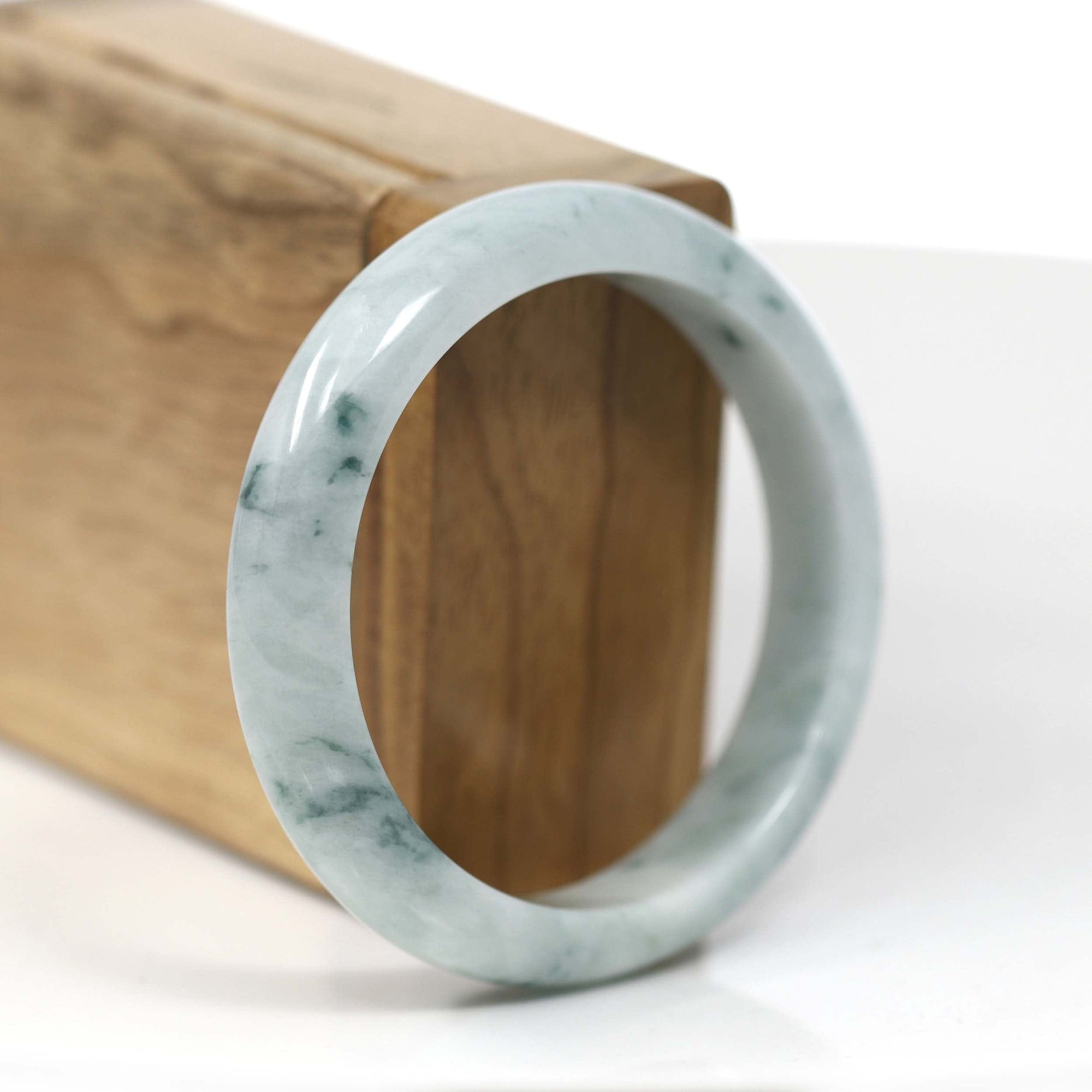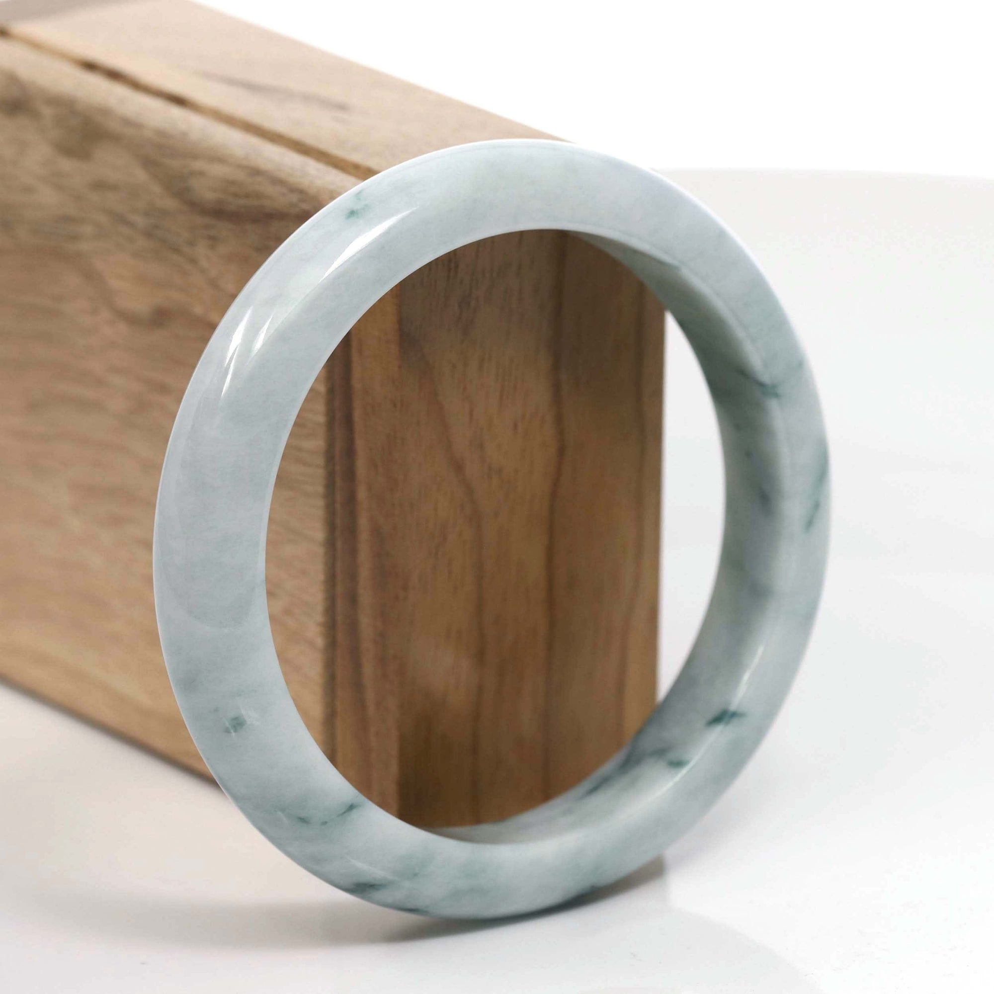 Baikalla™ "Classic" Genuine Jadeite Jade White-Green Bangle Bracelet (56.55mm) #T234